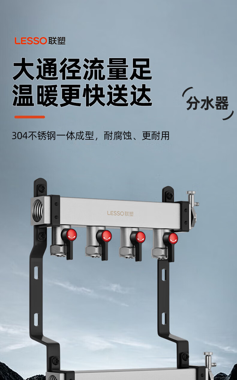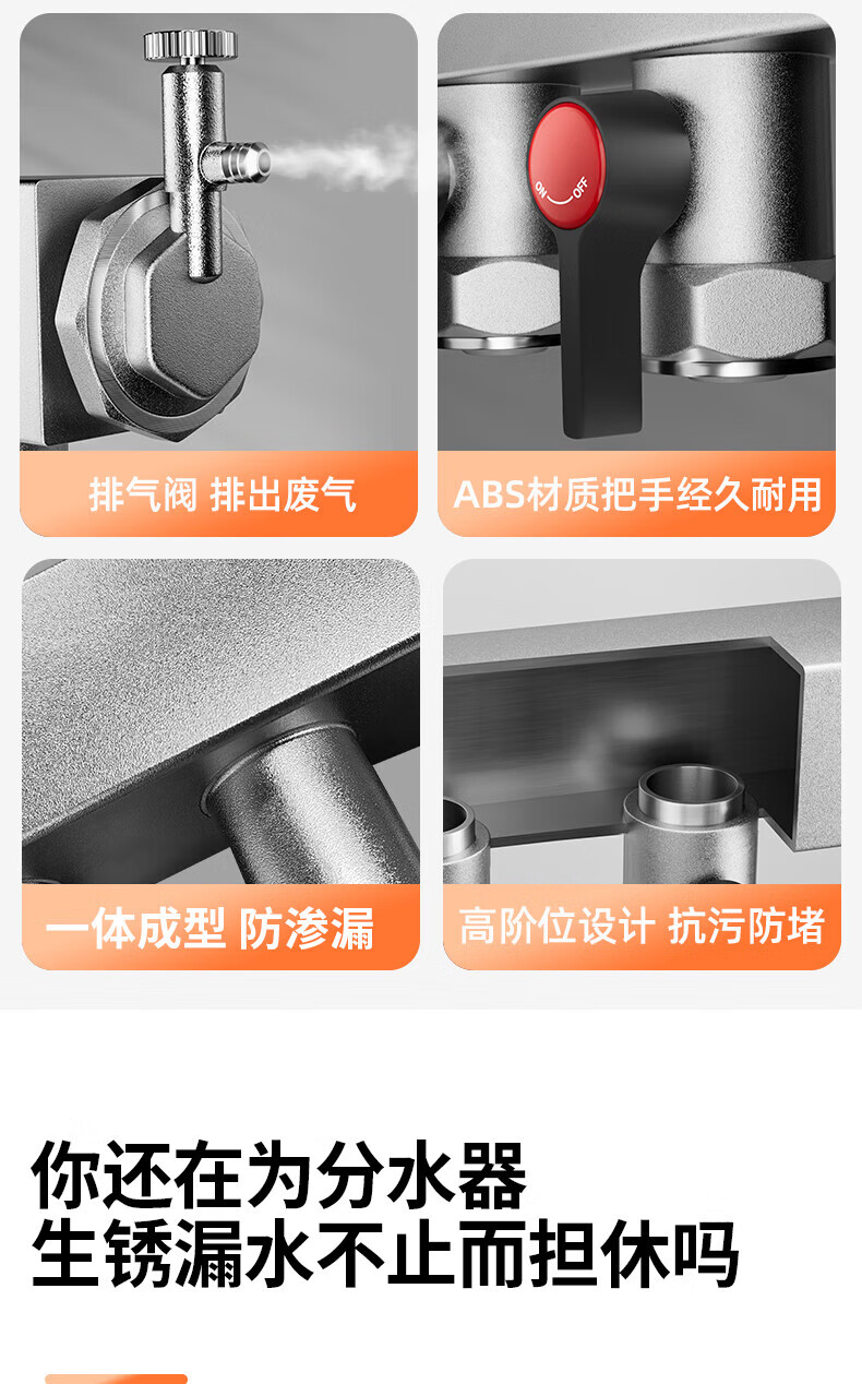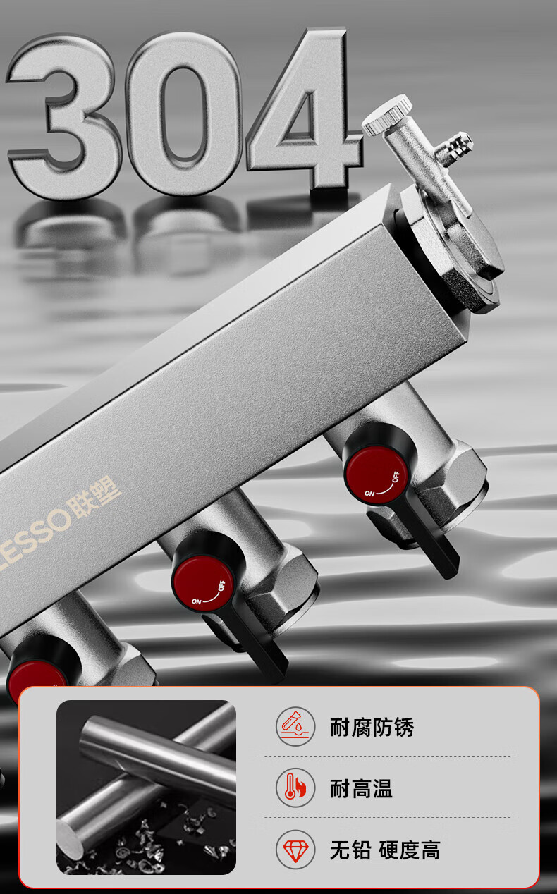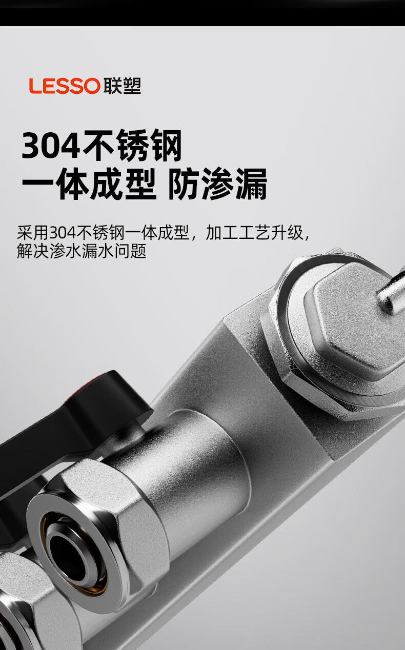Liansu 304 stainless steel water distributor, floor heating water distributor, floor heating water distributor, large flow water distributor, 3-way, 4-way, 4-way, 5-way water distributor, heating exhaust valve, drain valve sleeve valve, floor heating, super large flow five-piece set, 8-way 32/1-inch water inlet pipe, special shot