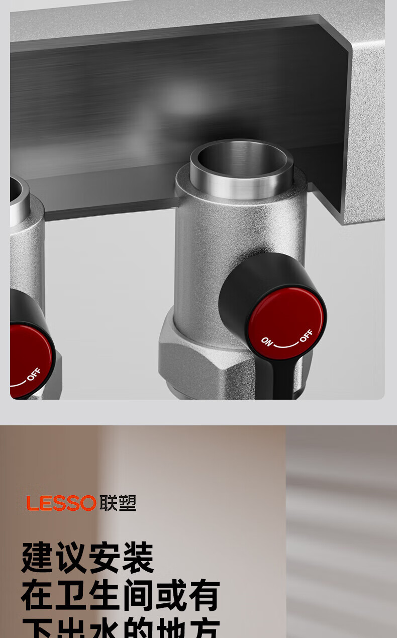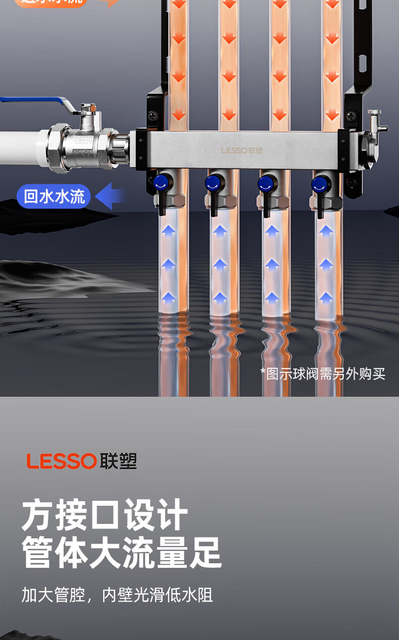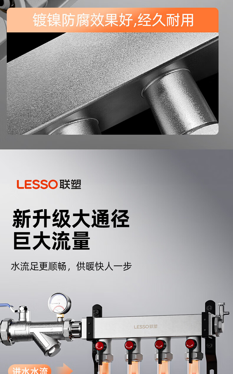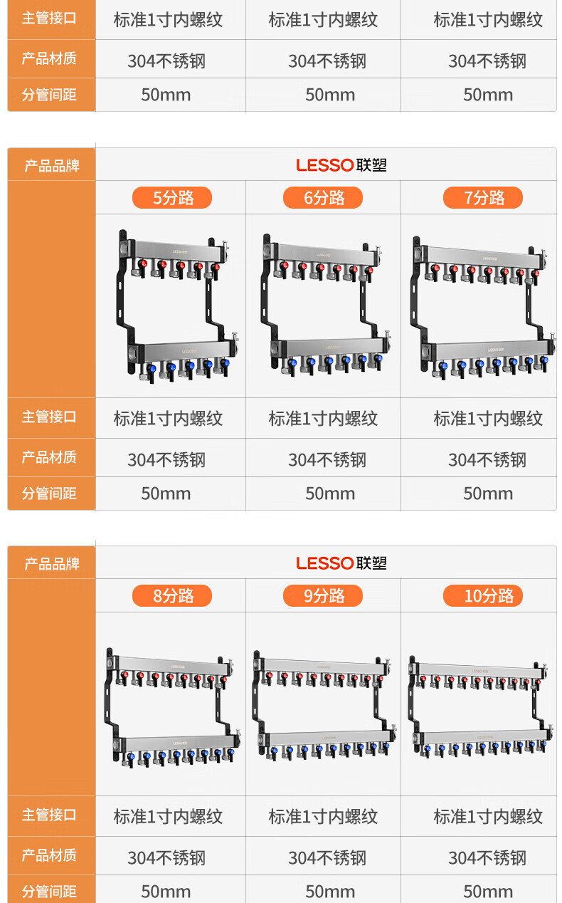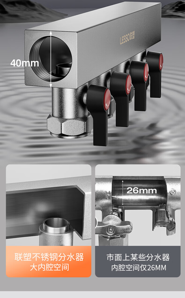 Liansu 304 stainless steel water distributor, floor heating water distributor, floor heating water distributor, large flow water distributor, 3-way, 4-way, 4-way, 5-way water distributor, heating exhaust valve, drain valve sleeve valve, floor heating, super large flow five-piece set, 8-way 32/1-inch water inlet pipe, special shot