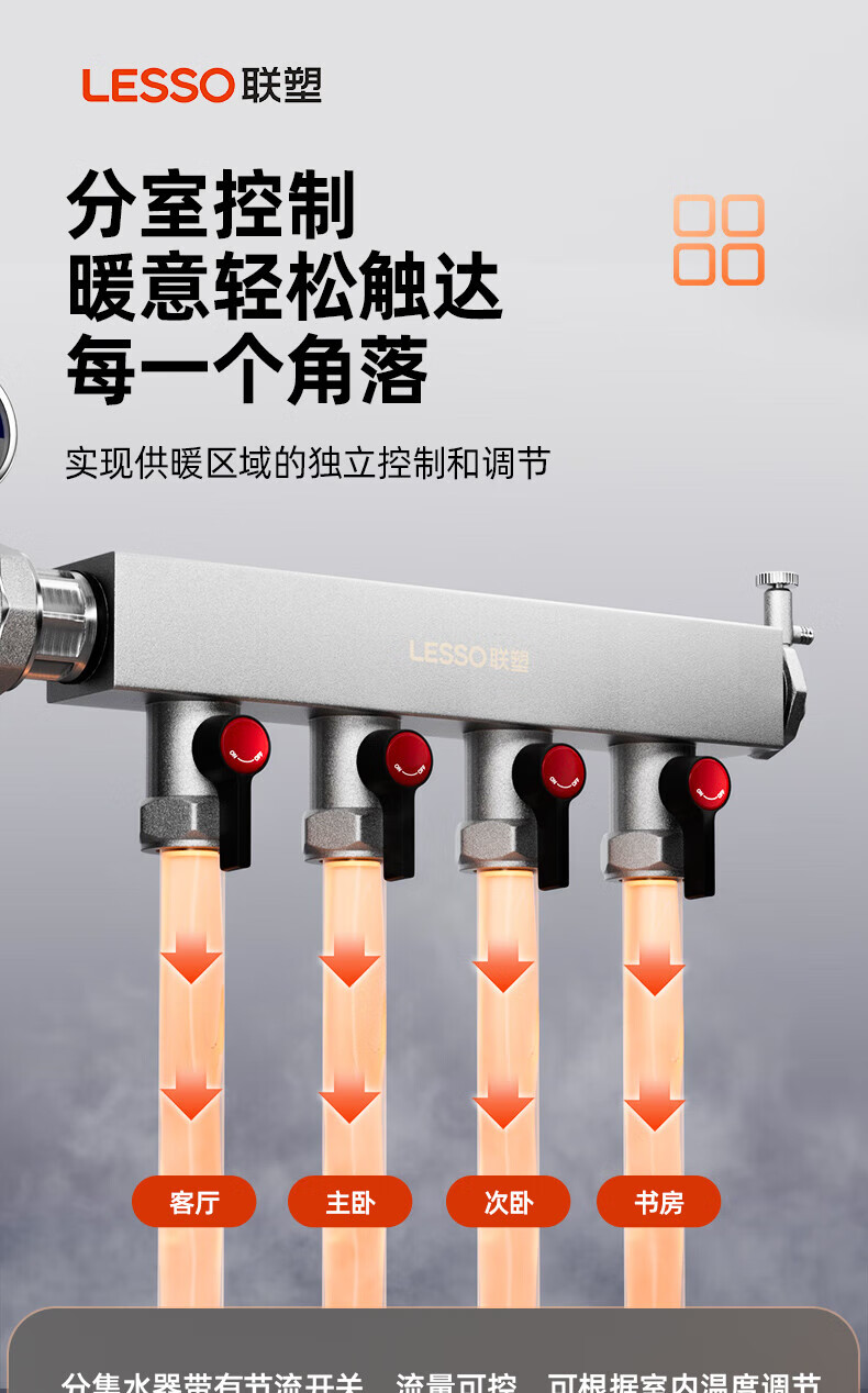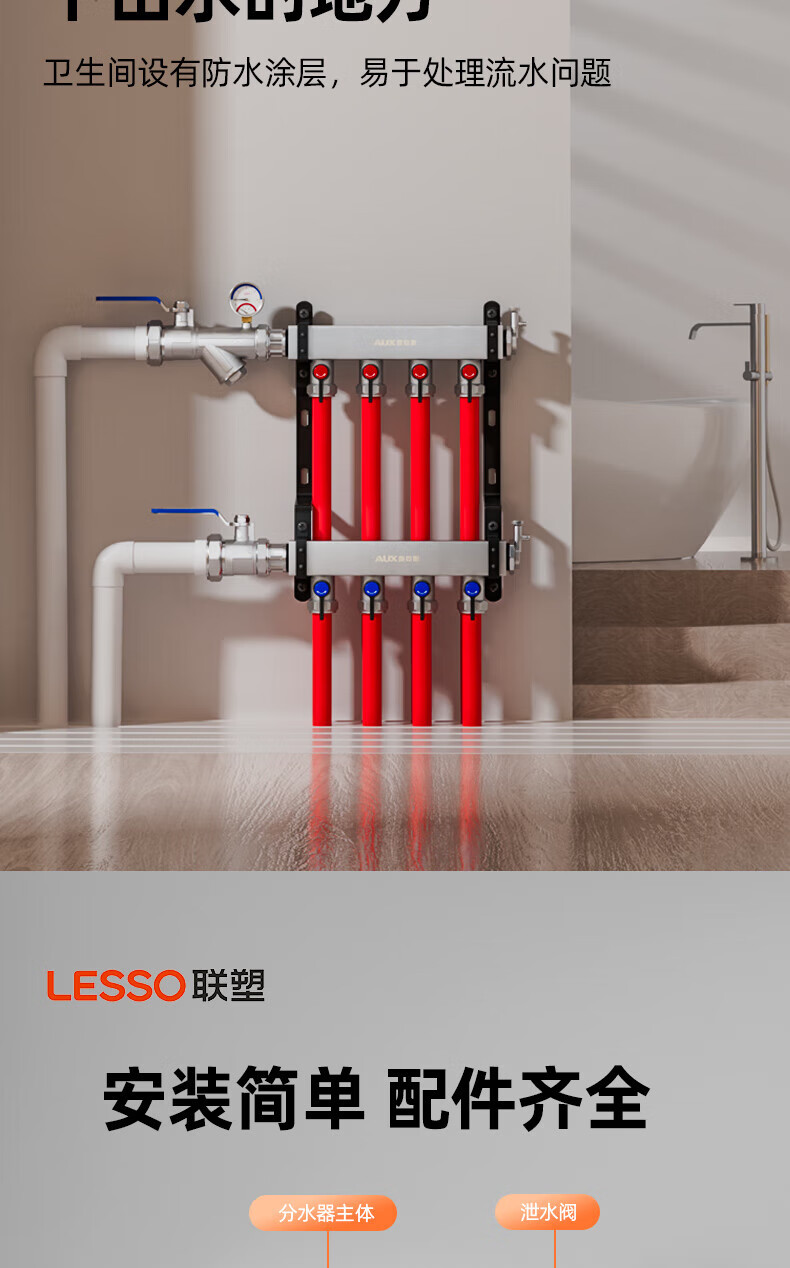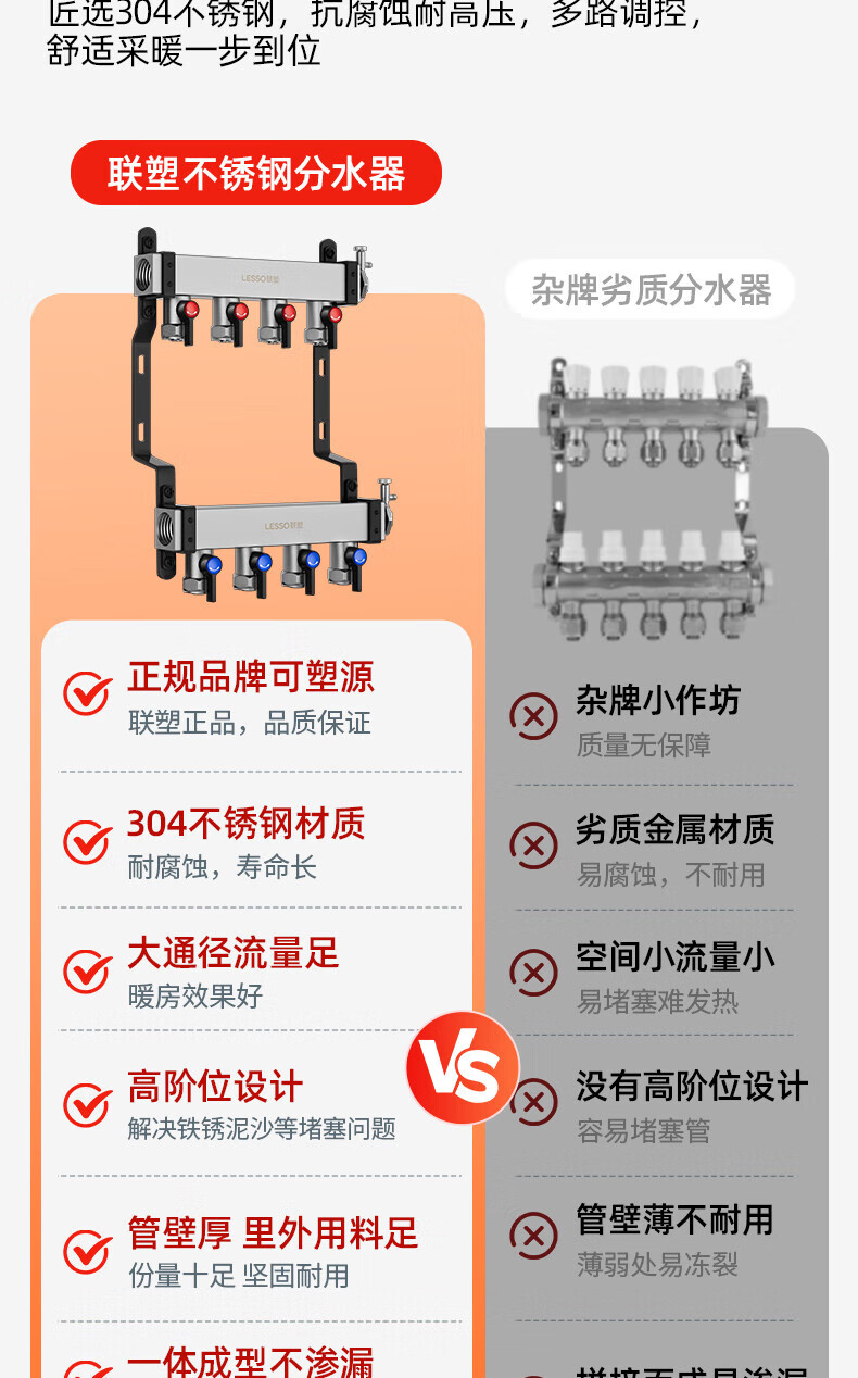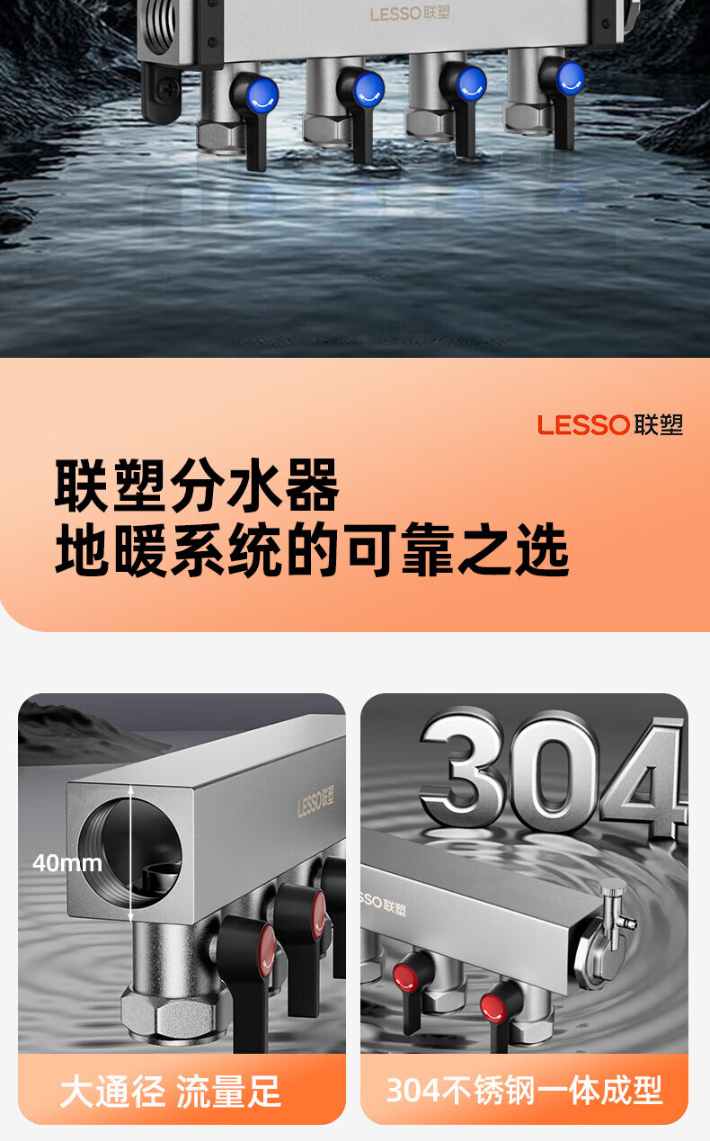 Liansu 304 stainless steel water distributor, floor heating water distributor, floor heating water distributor, large flow water distributor, 3-way, 4-way, 4-way, 5-way water distributor, heating exhaust valve, drain valve sleeve valve, floor heating, super large flow five-piece set, 8-way 32/1-inch water inlet pipe, special shot