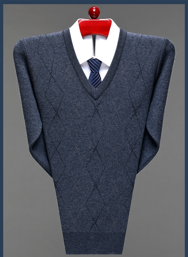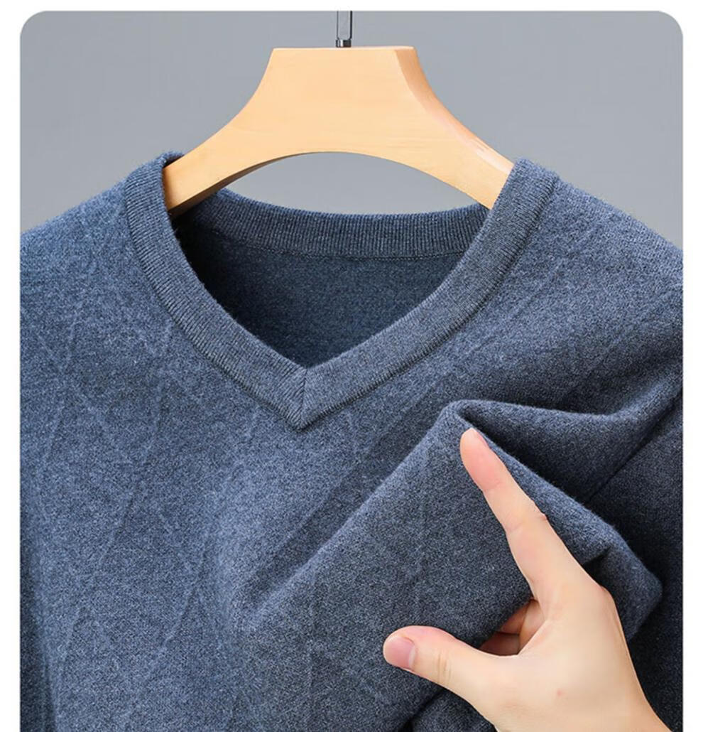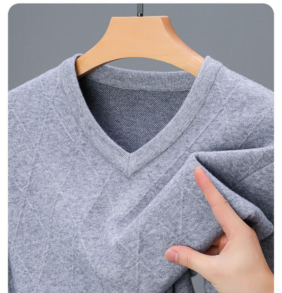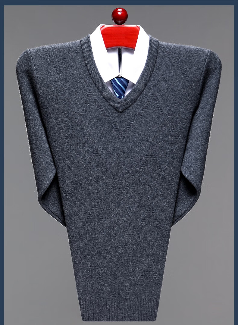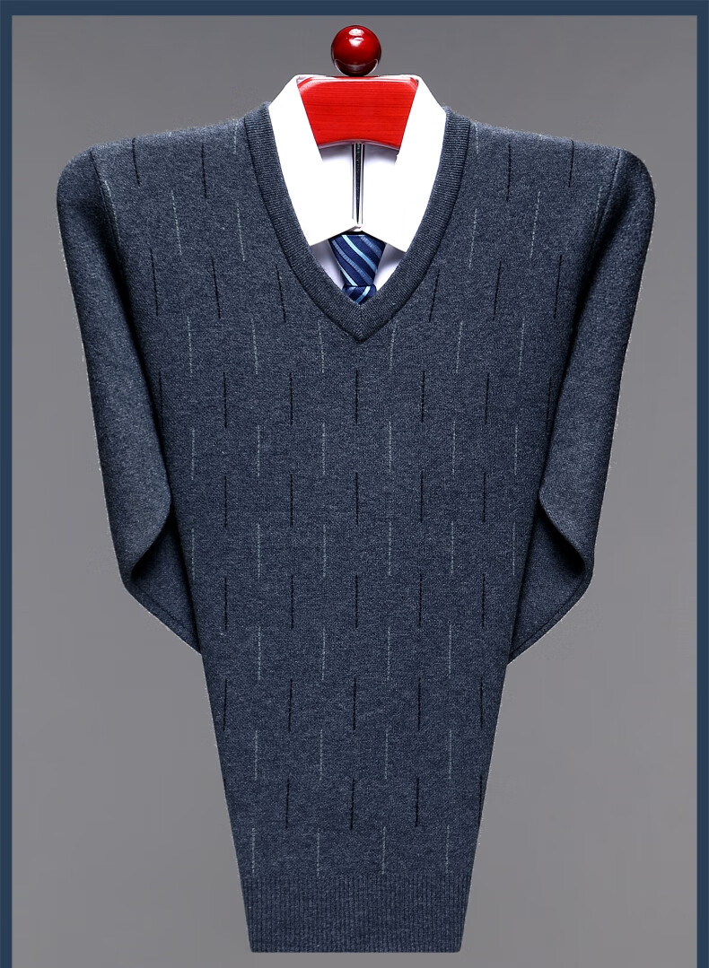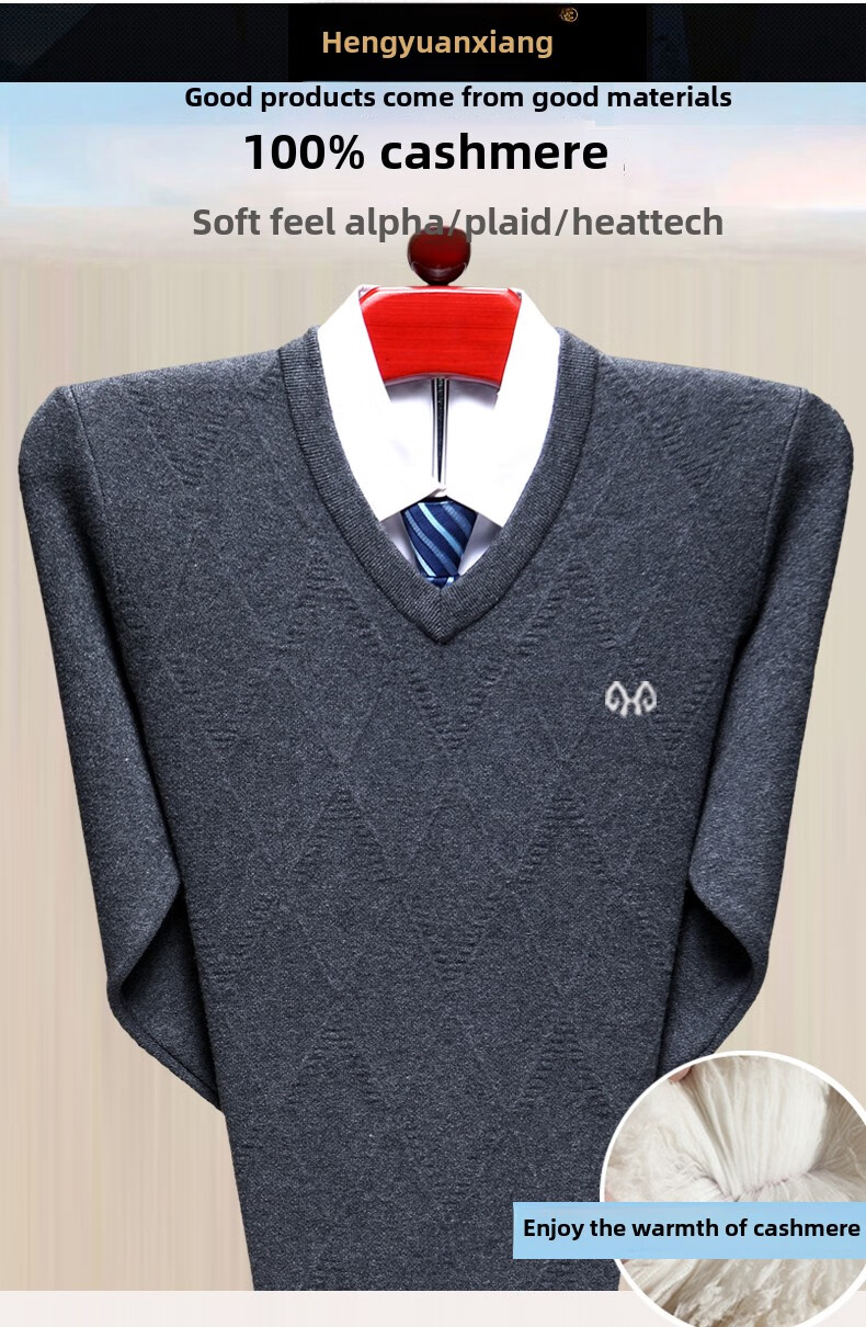 Hengyuanxiang Men's V-neck Wool Sweater Thickened Sweetheart Neck Middle-aged and Elderly Wool Sweater Dad's Casual Warm Wool Bottoming Sweater V-neck Dark Gray Thickened