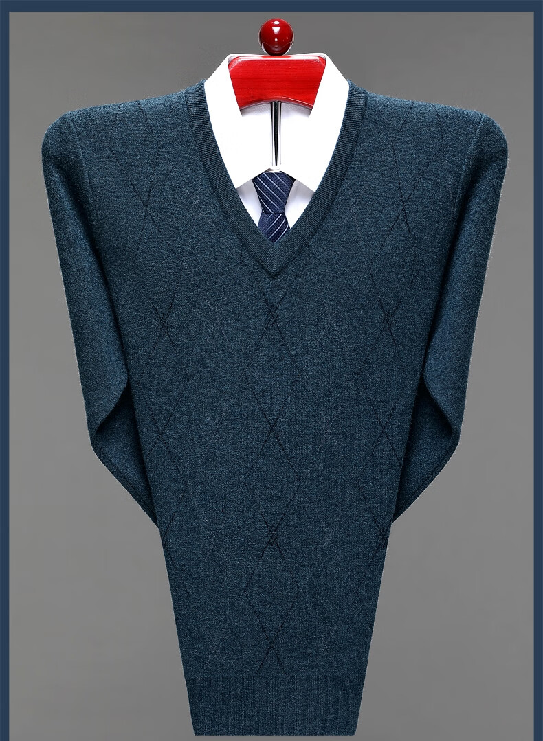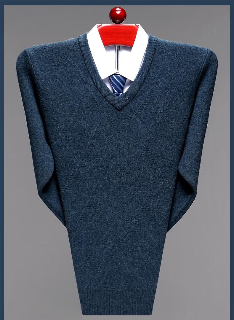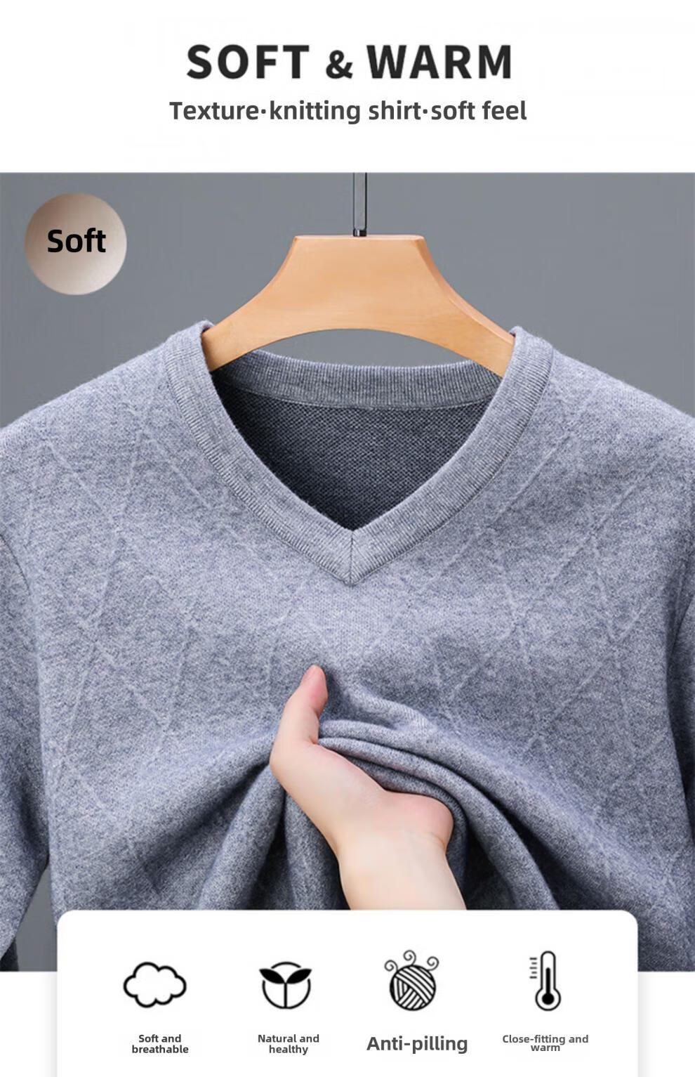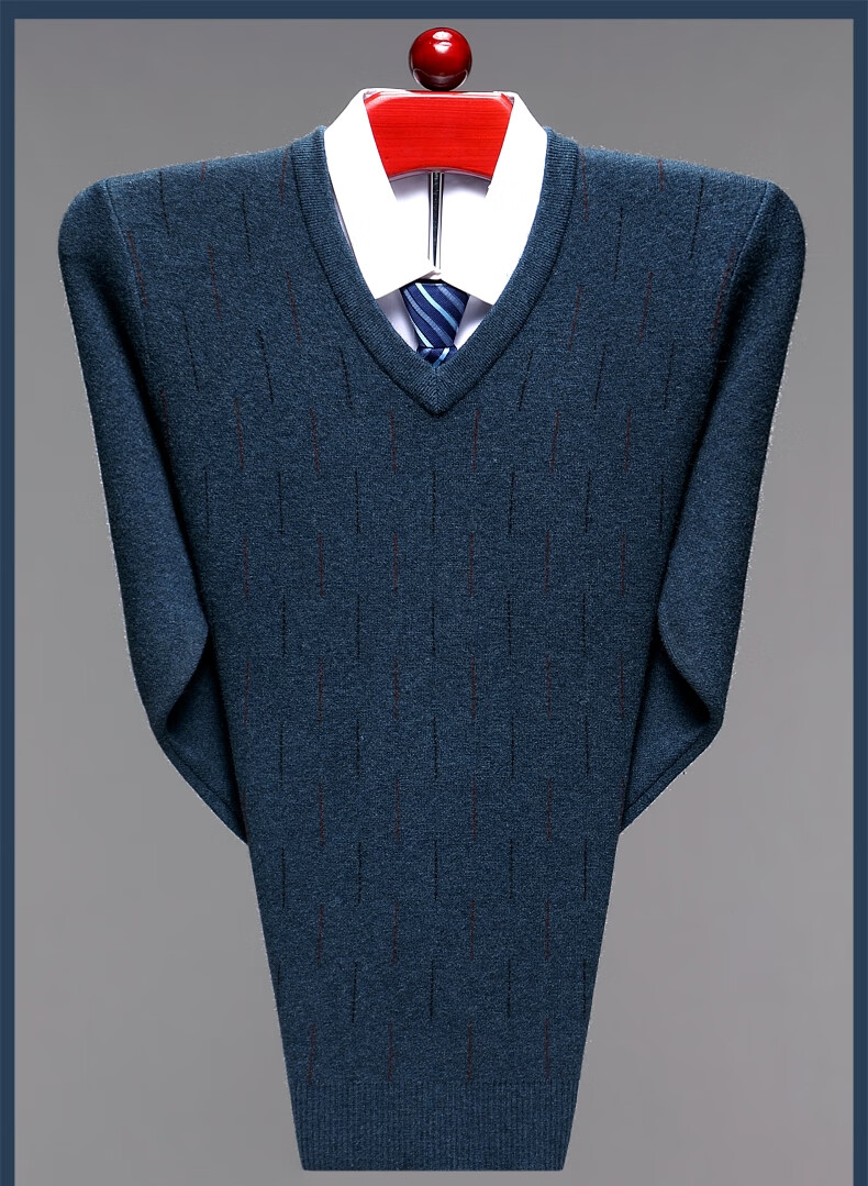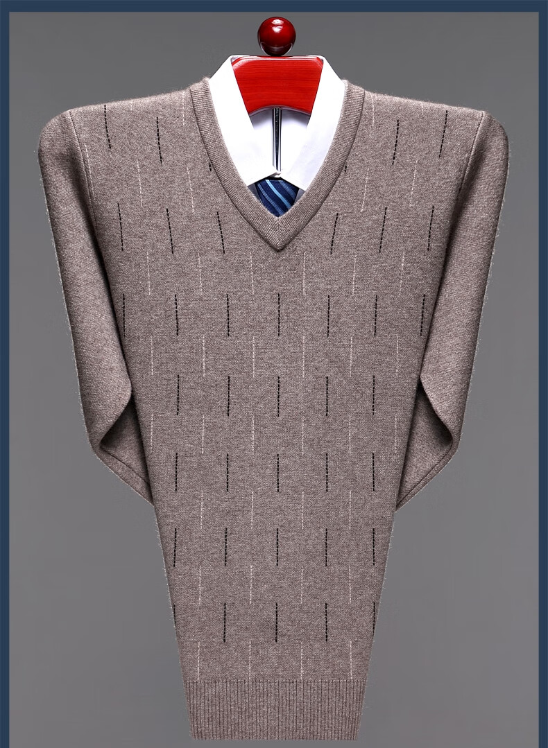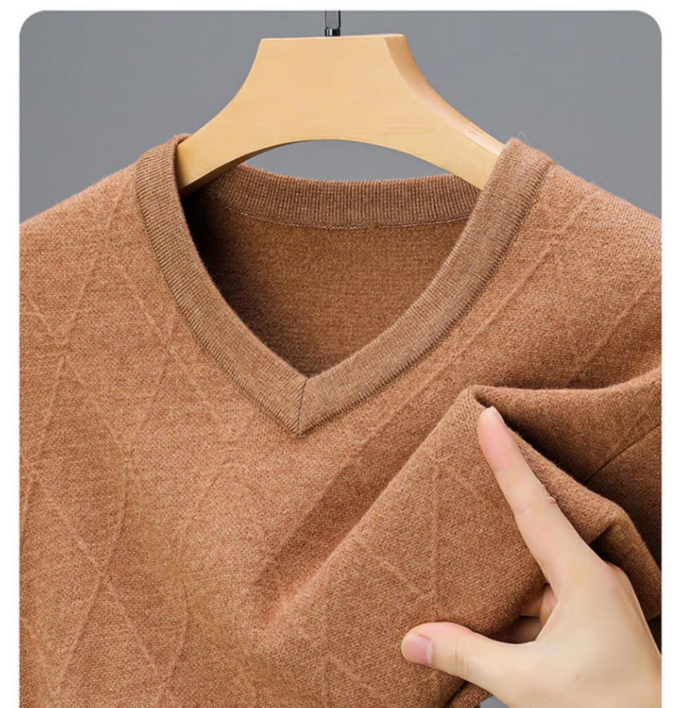 Hengyuanxiang Men's V-neck Wool Sweater Thickened Sweetheart Neck Middle-aged and Elderly Wool Sweater Dad's Casual Warm Wool Bottoming Sweater V-neck Dark Gray Thickened