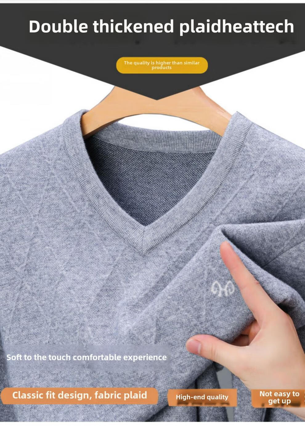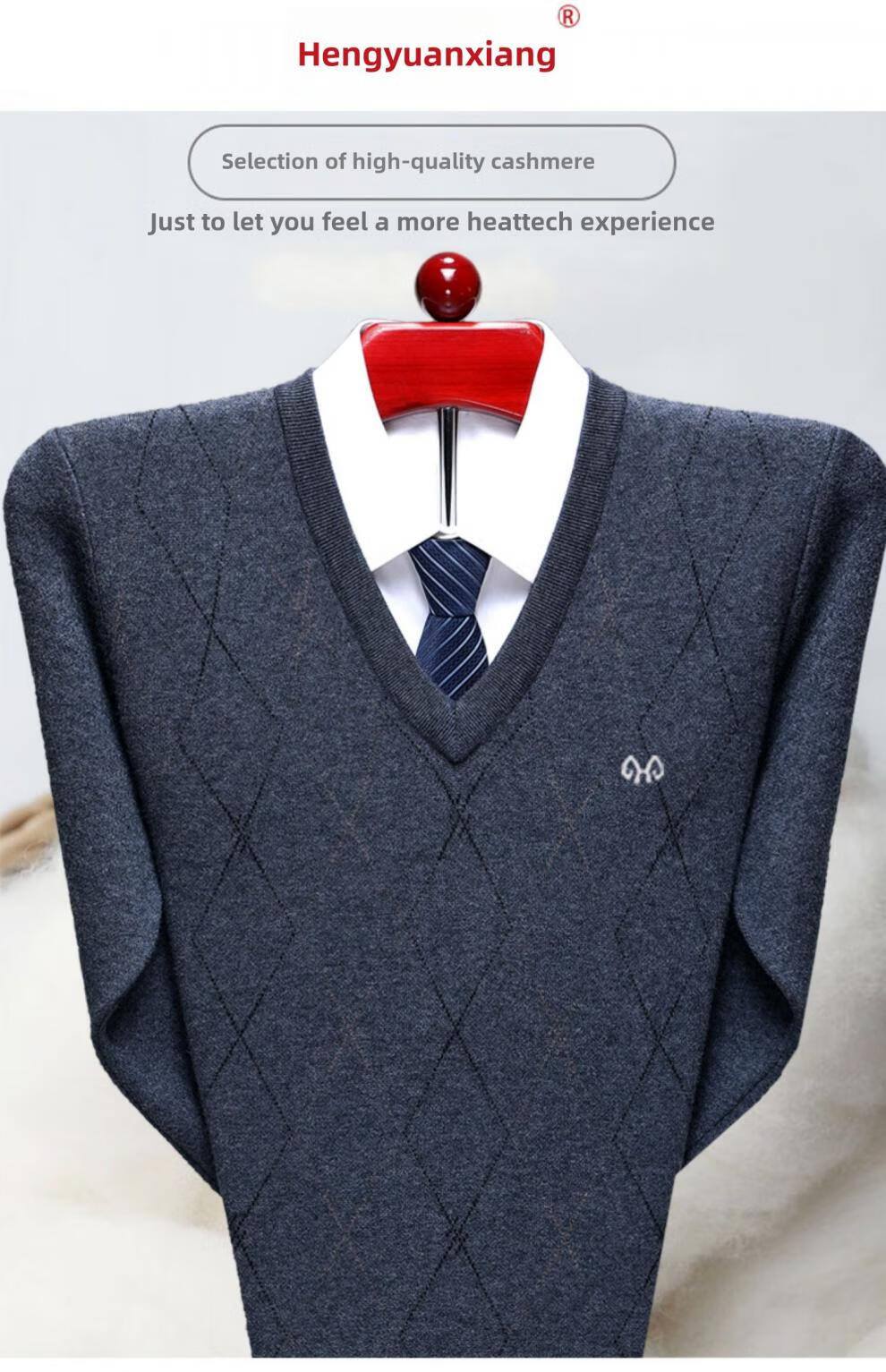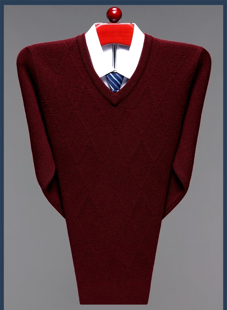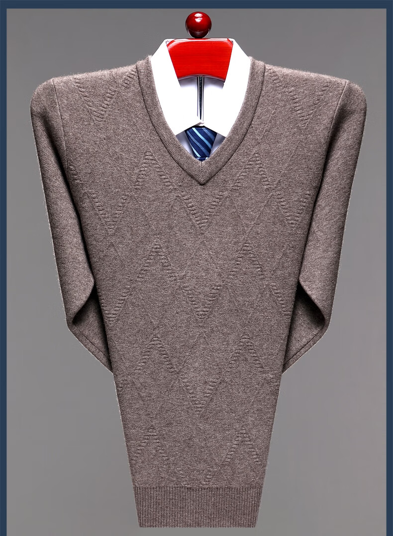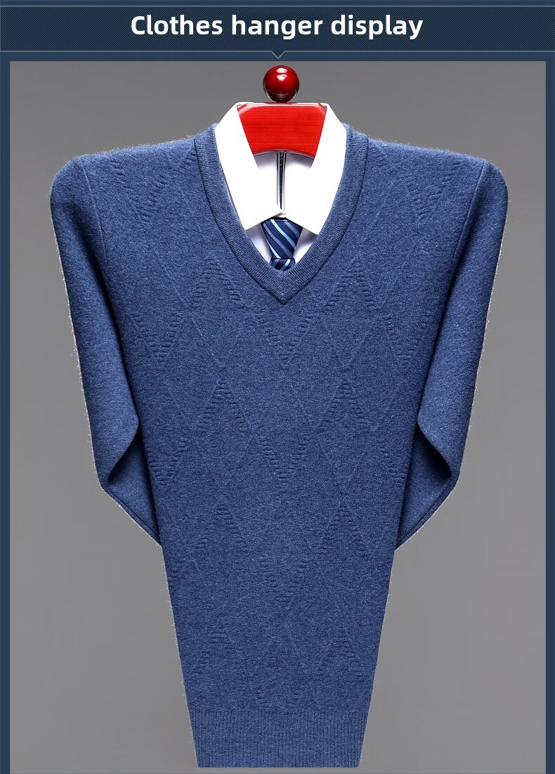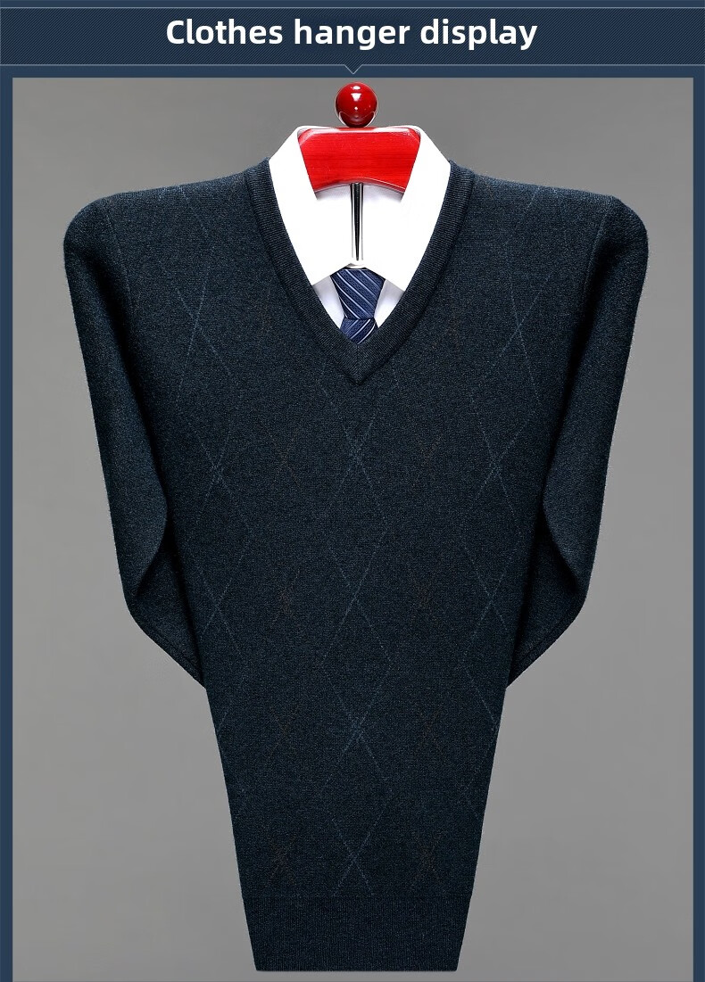 Hengyuanxiang Men's V-neck Wool Sweater Thickened Sweetheart Neck Middle-aged and Elderly Wool Sweater Dad's Casual Warm Wool Bottoming Sweater V-neck Dark Gray Thickened