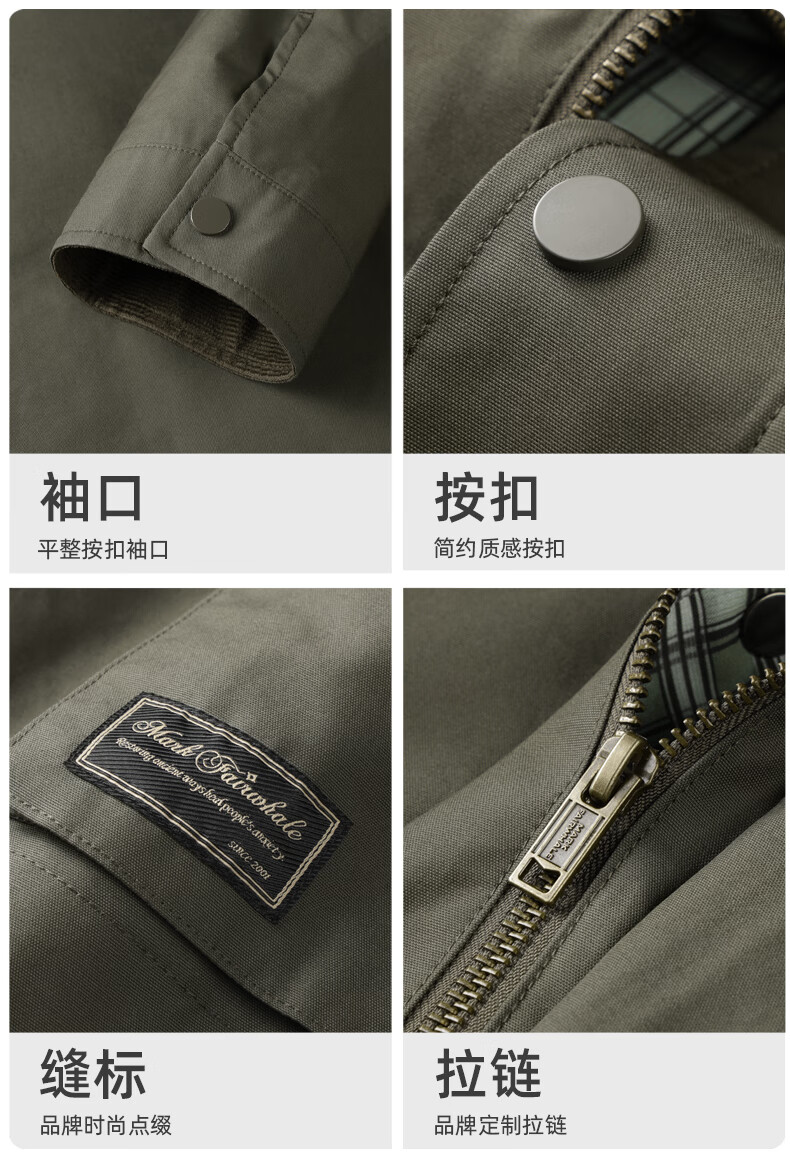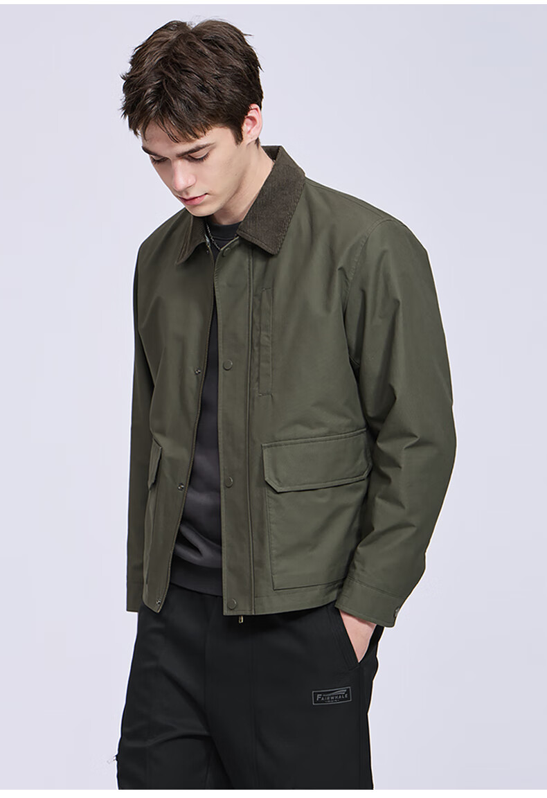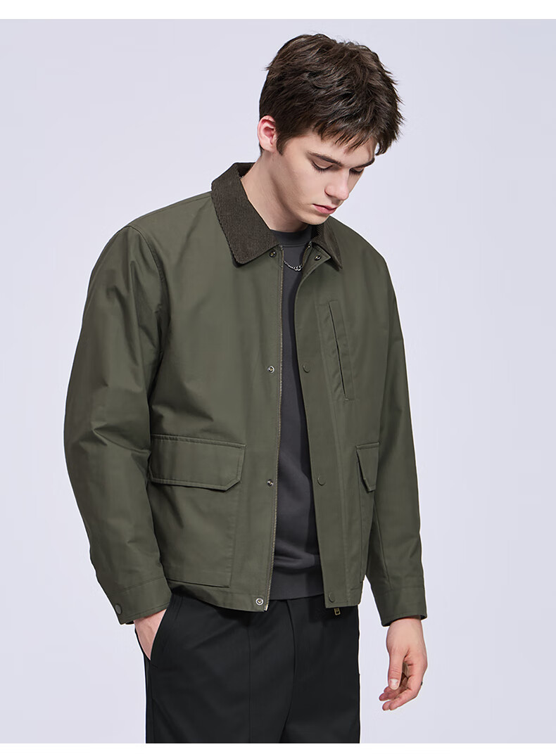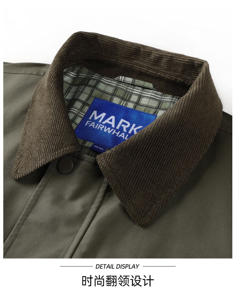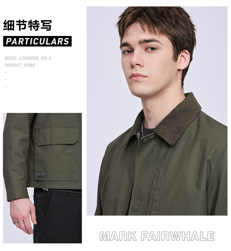 Mark Huafei Retro Detroit Jacket Men's 2025 Autumn New Contrast Color Workwear Lapel Casual Top 1537 Army Green 203 L 175