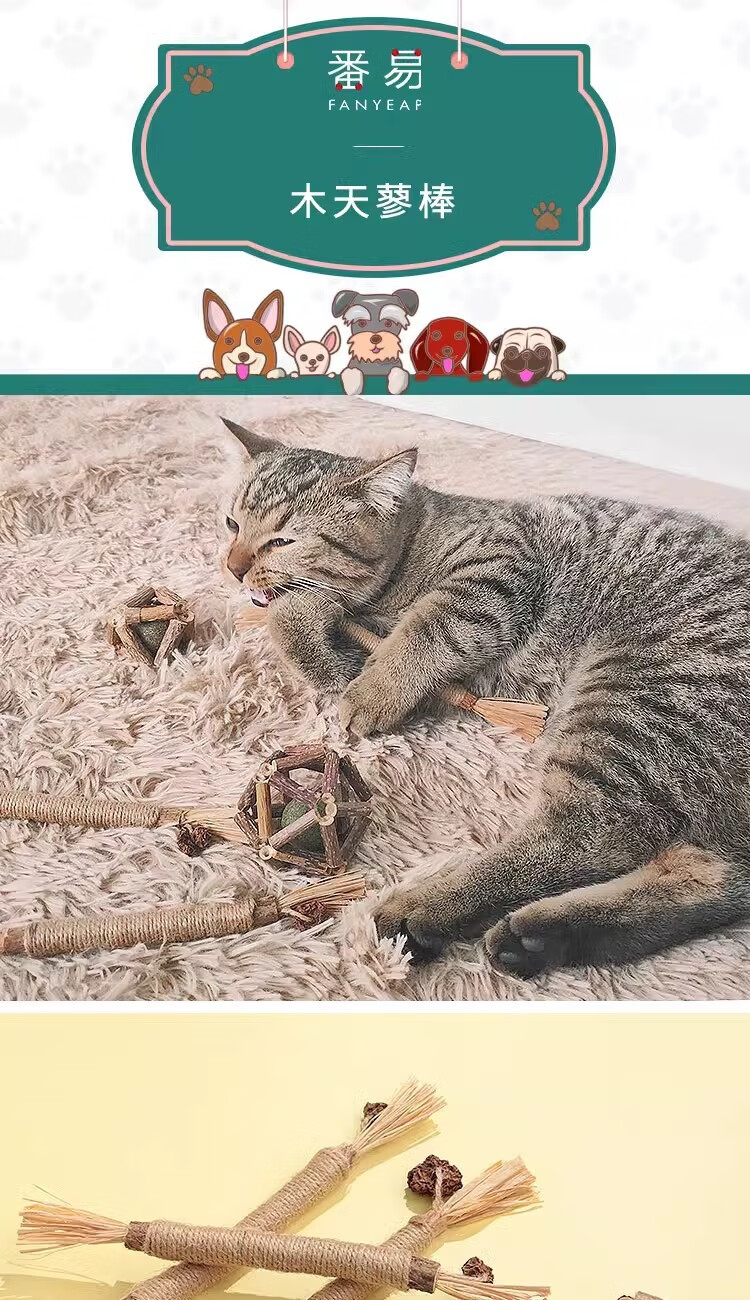 Mutian Polygonum/Stick A1P50-Cat teeth grinding, adult cat teeth cleaning, self-pleasure and boredom relief toy, pet mint Ling, thin sticks 8 pieces/pack 1 pack default