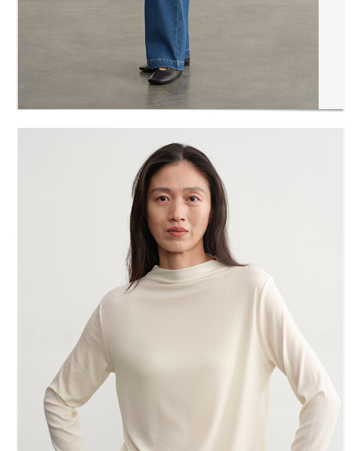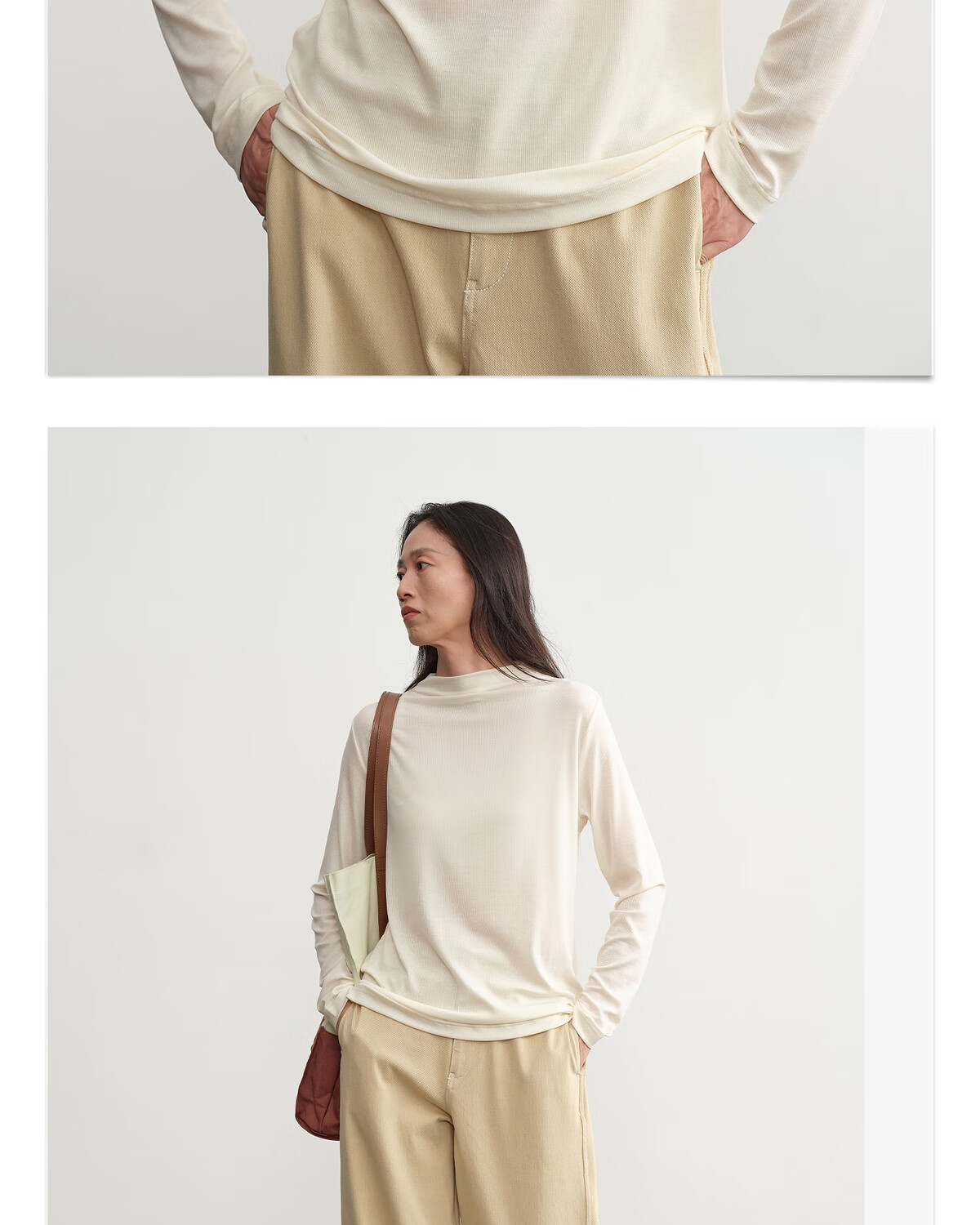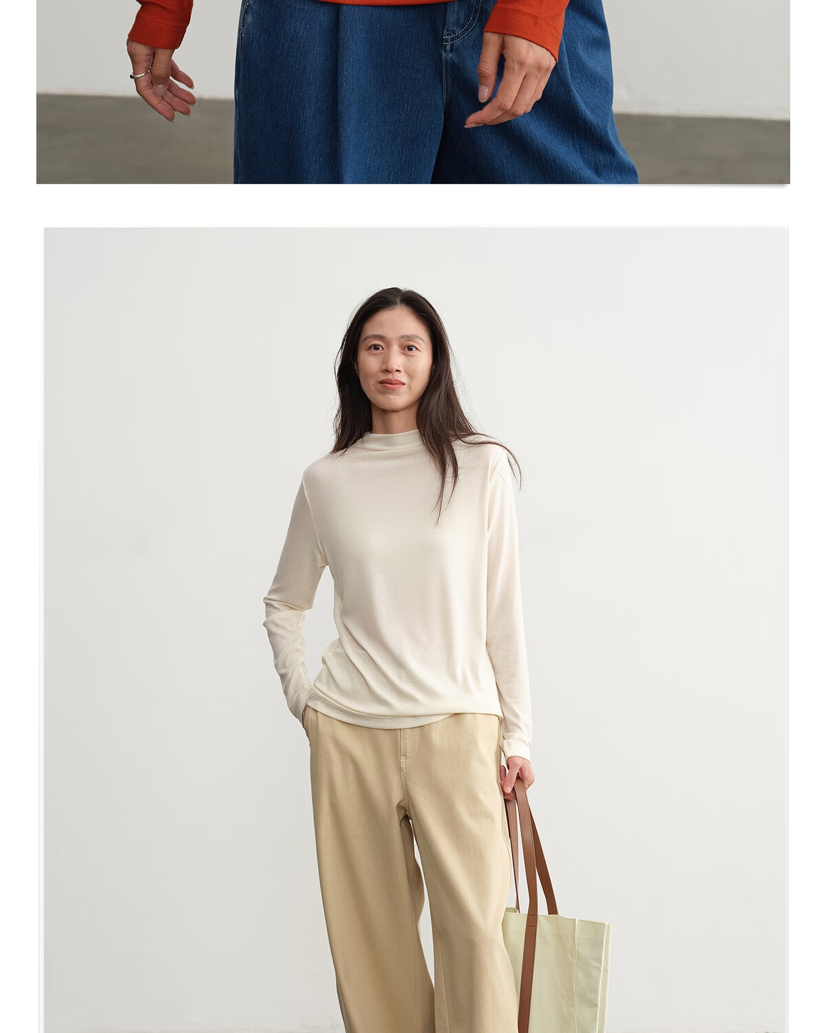 ALLBLU Parent-child Eucalyptus 100 Breathable skin-feeling base returns Pile collar bottoming shirt Shell white 170