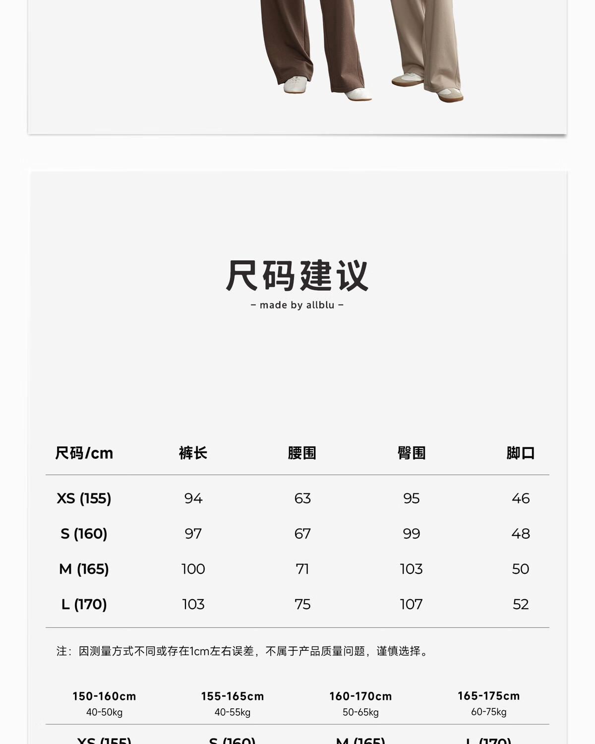 China (cm) 160-165/84-86 165-170 / 88-90 167-172 / 92-96 168-173 / 98-102 170-176 / 106-110