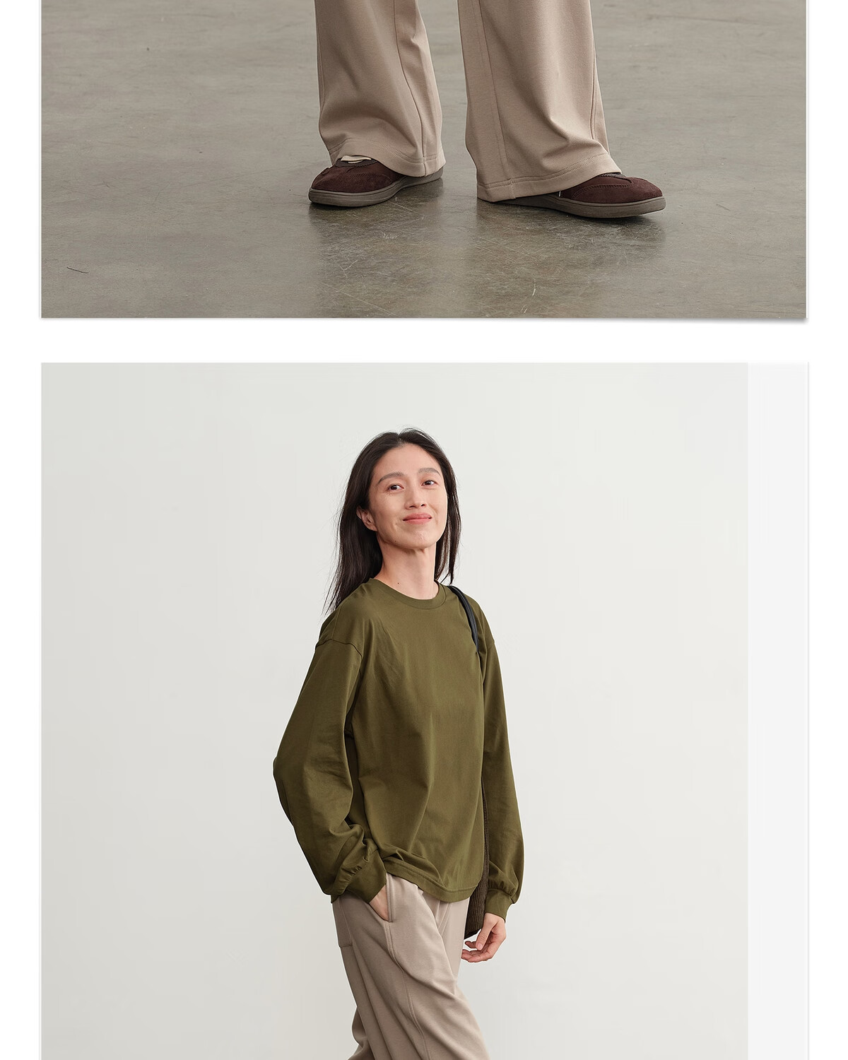 Youlan parent-child clothing, Eucalyptus Q, highly recommended for stunning body feel, straight-leg pants, moisture-absorbent and breathable, gray-green khaki 170