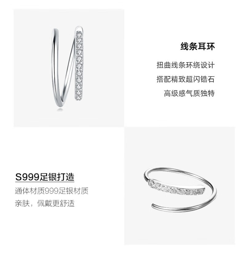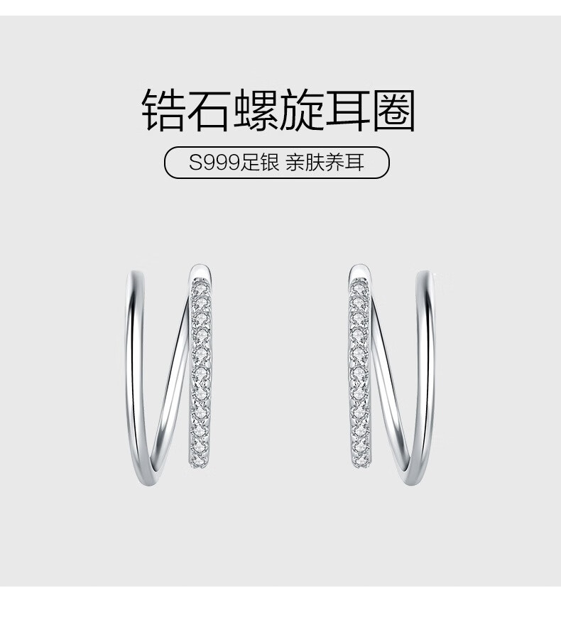 Holycat Cat in Arms 999 pure silver zircon spiral earrings for women niche high-end earrings cold style earrings jewelry birthday gift 999 silver zircon rotating earrings pair