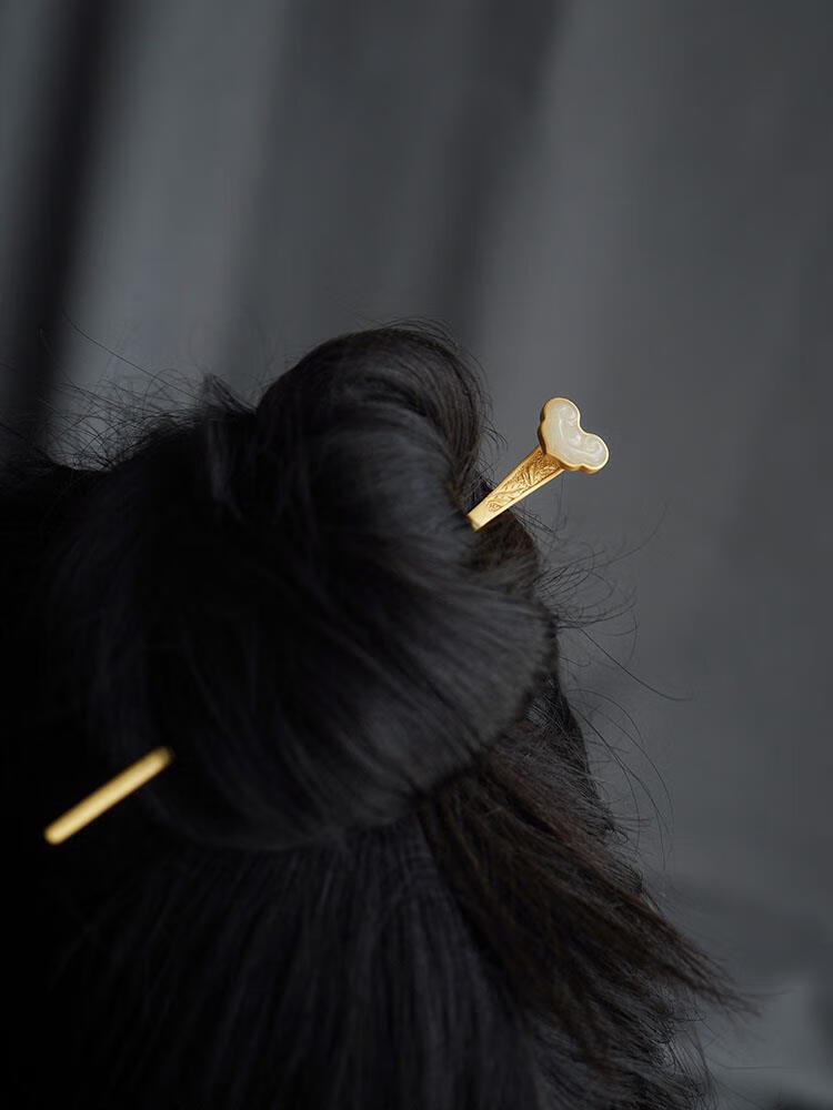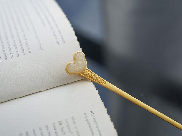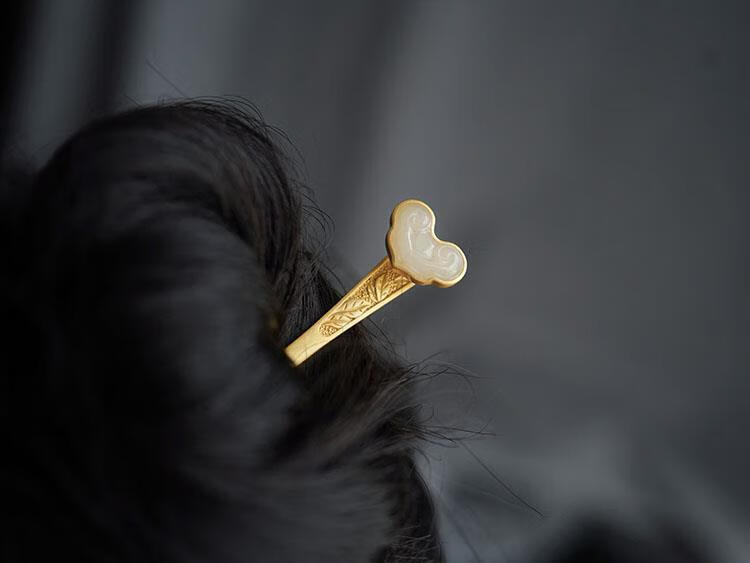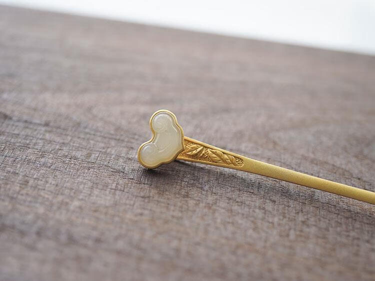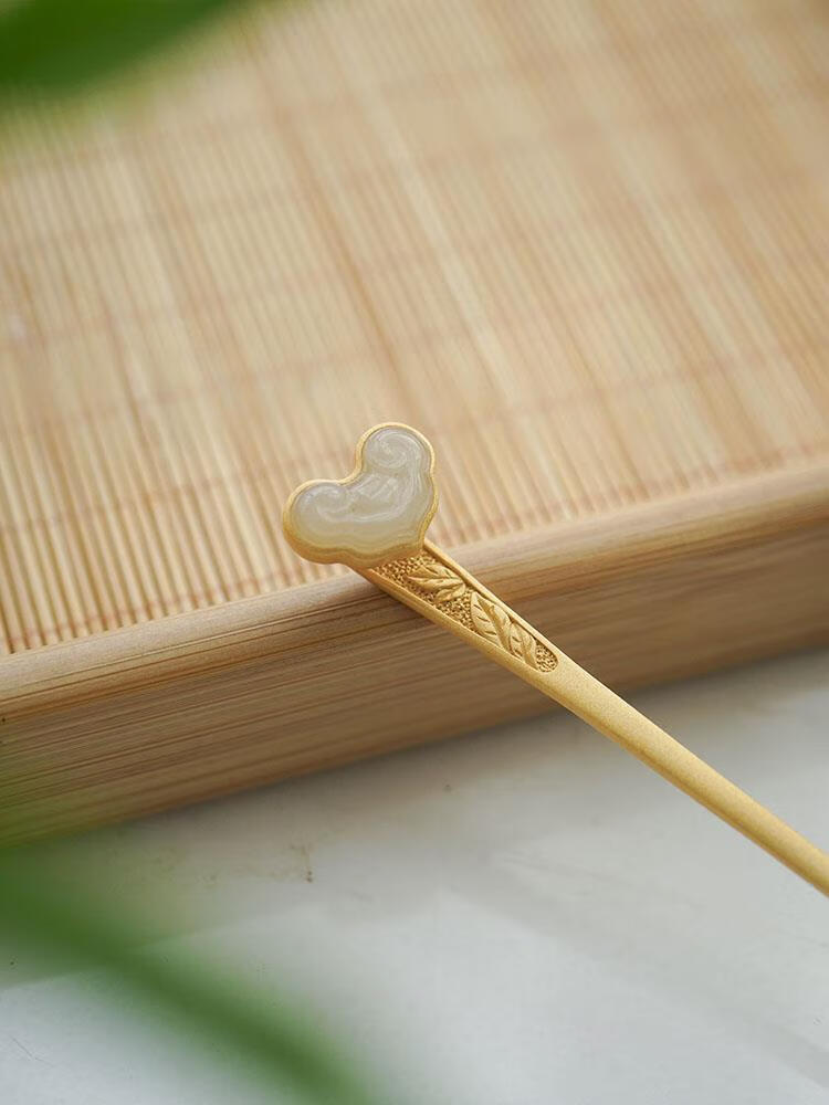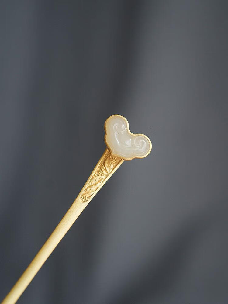 MHFDO Old Phoenix 999 Gold Inlaid Jade Chinese Style Ruyi Hairpin Female Ancient Style One-Word Hairpin Hairpin Full Blonde Gold Ruyi Hairpin