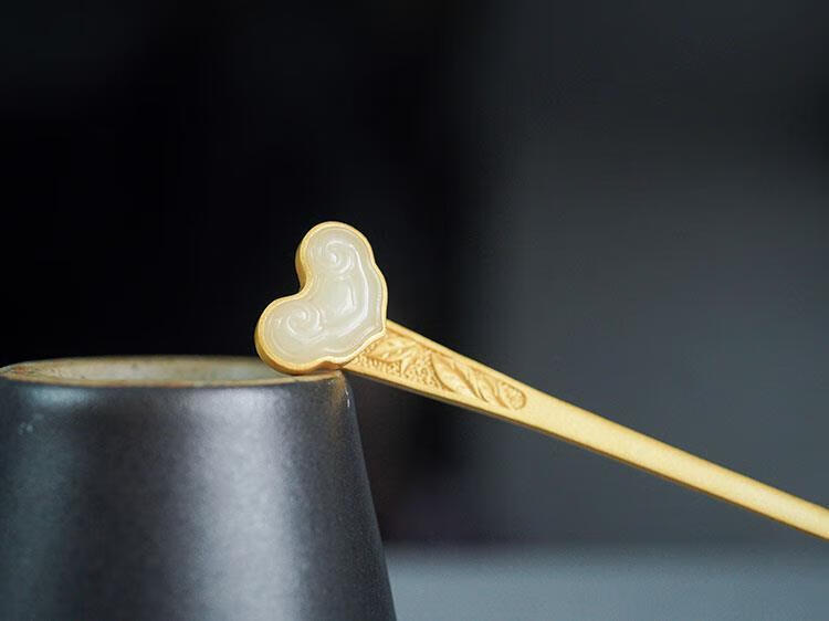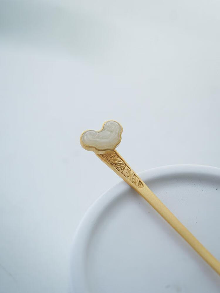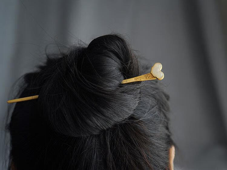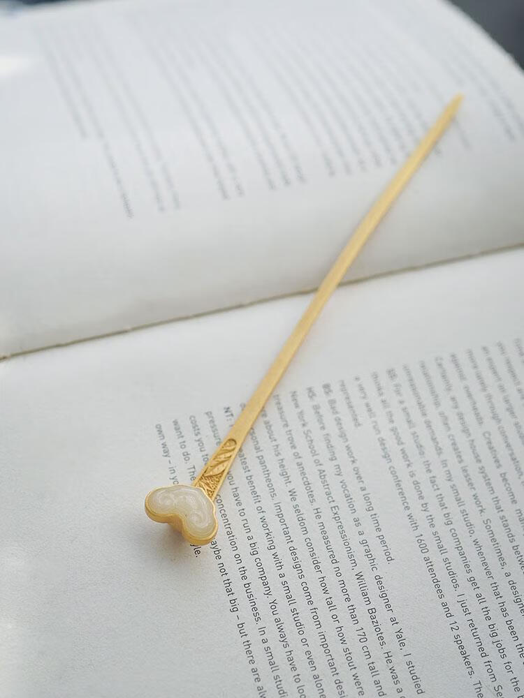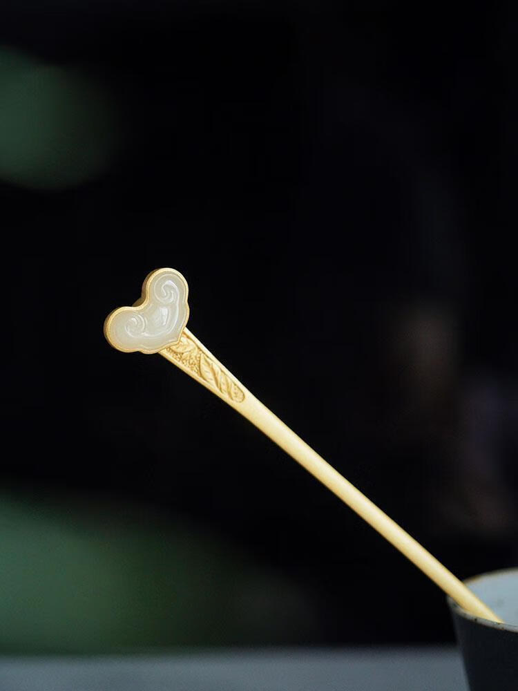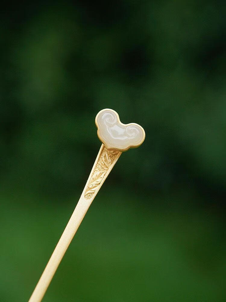 MHFDO Old Phoenix 999 Gold Inlaid Jade Chinese Style Ruyi Hairpin Female Ancient Style One-Word Hairpin Hairpin Full Blonde Gold Ruyi Hairpin