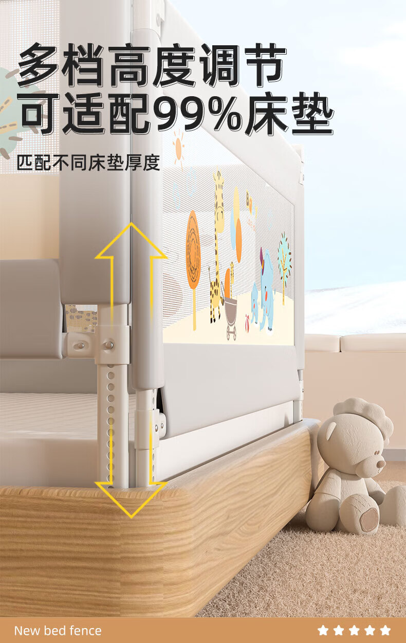 GUANLILANG Bed Fence Baby Anti-Fall Anti-Falling Bed Guardrail Baby Bed Side Safety Unilateral Lift Baffle Heightening Universal Parent-Child Time Sitting on the Bed Without Pressing the Rod + 0 Gap (1.8 Meters/Single Side)