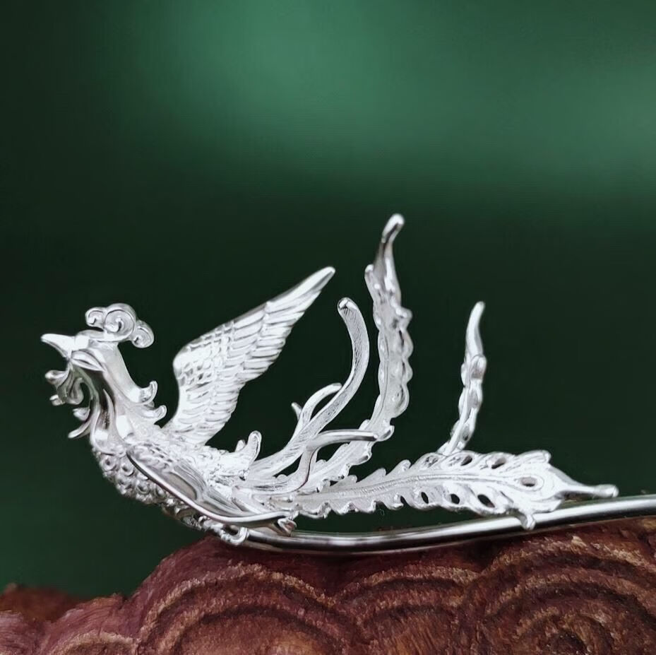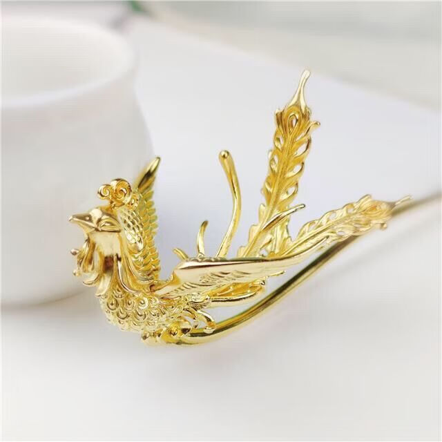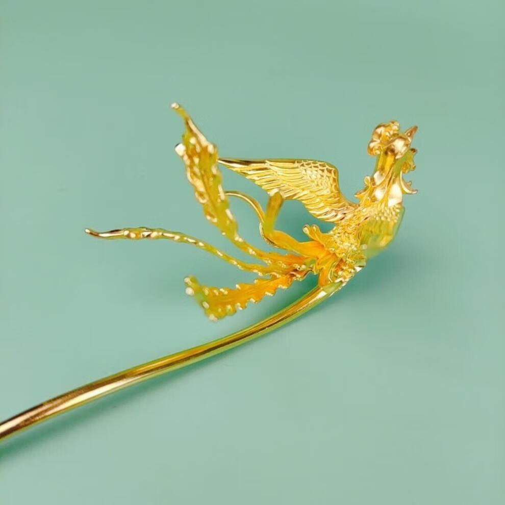 MHFDO old phoenix 999 pure gold phoenix hairpin original personalized design purely handmade phoenix hairpin hairpin plate phoenix hairpin golden style phoenix hairpin