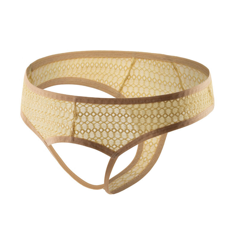 BUFFNY large size open crotch men's underwear no need to take off thong lace breathable temptation sexy hollow T pants white XL 2 feet 6-2 feet 8