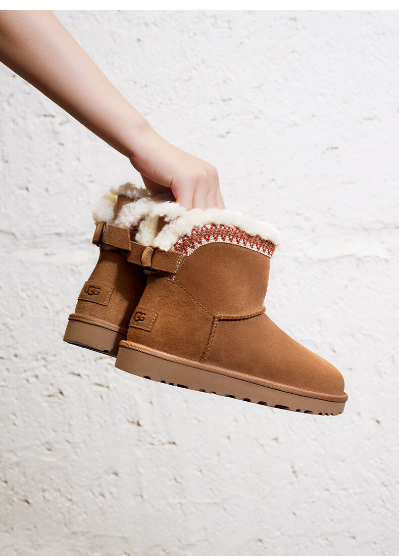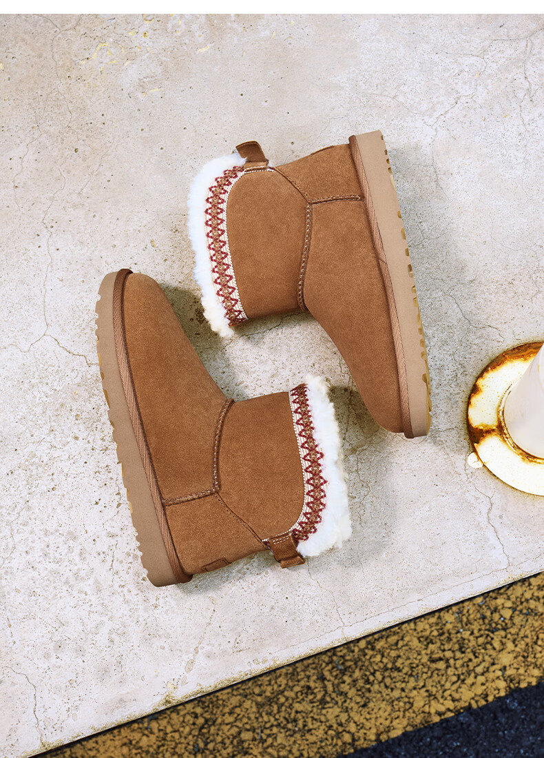 UGG autumn new women's fashionable, comfortable and warm solid color flat-bottomed round-toe short casual snow boots 1174517 CHE | Maroon 37