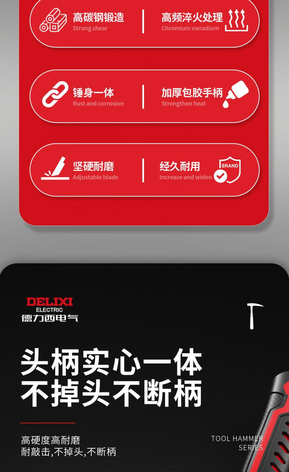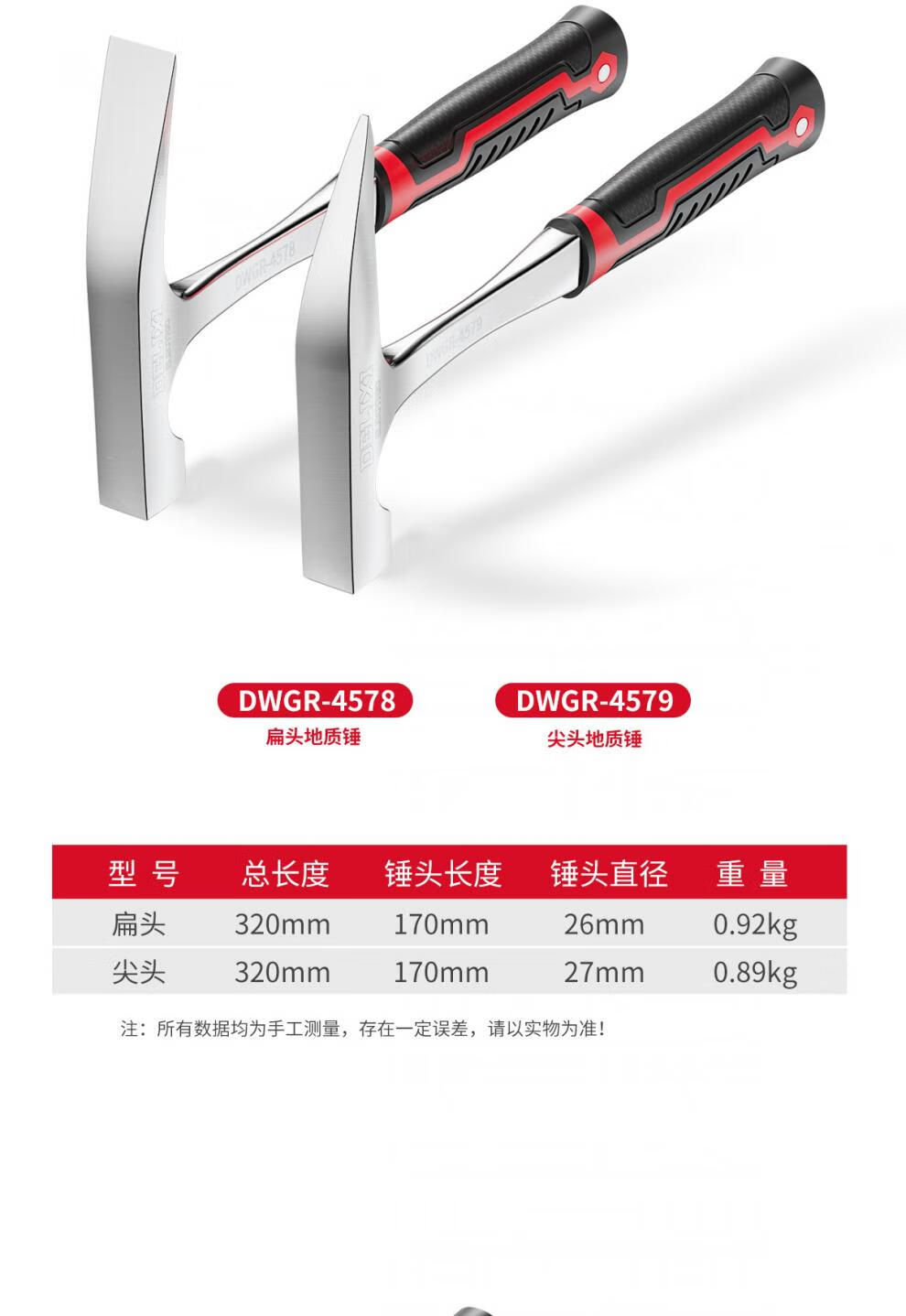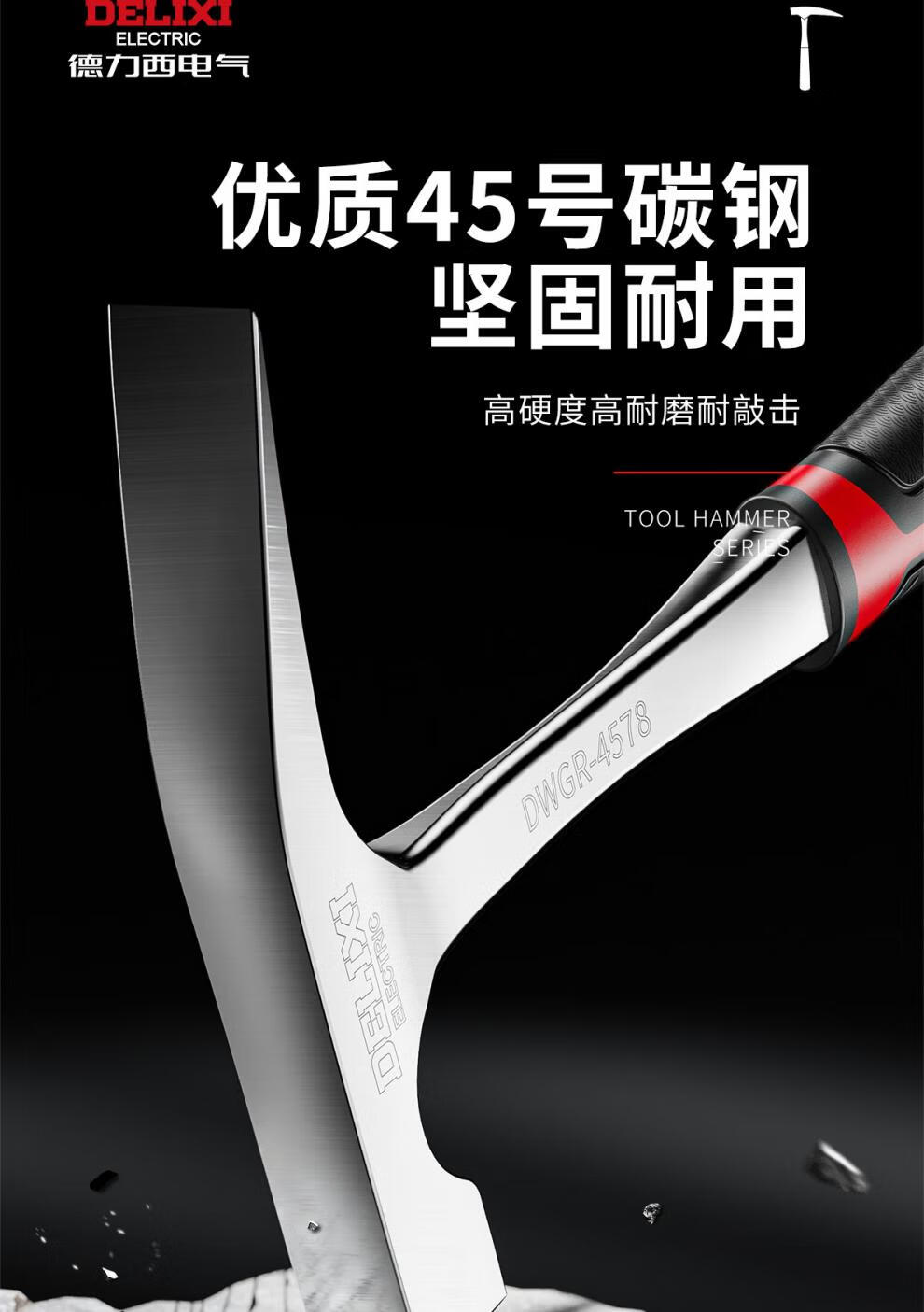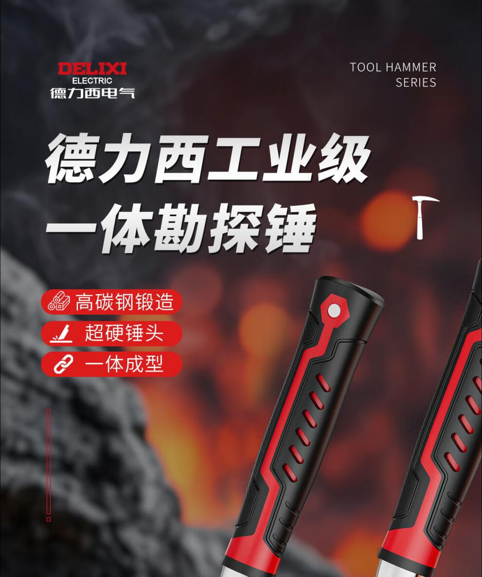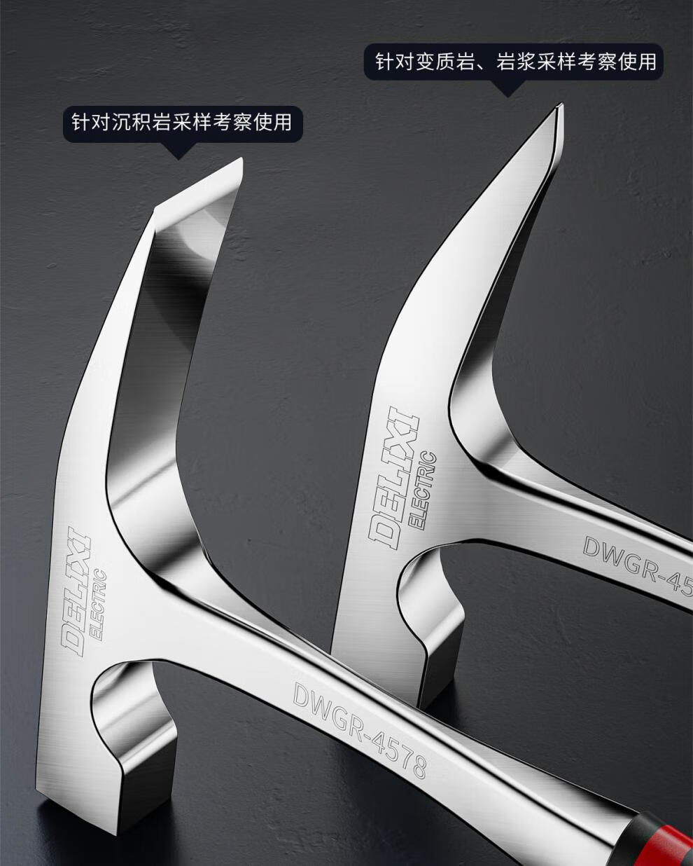 Delixi geological hammer-level exploration hammer, archaeological hammer, special tool for digging jade fossils, piton mining hammer, industrial grade large pointed head + large flat head ground A