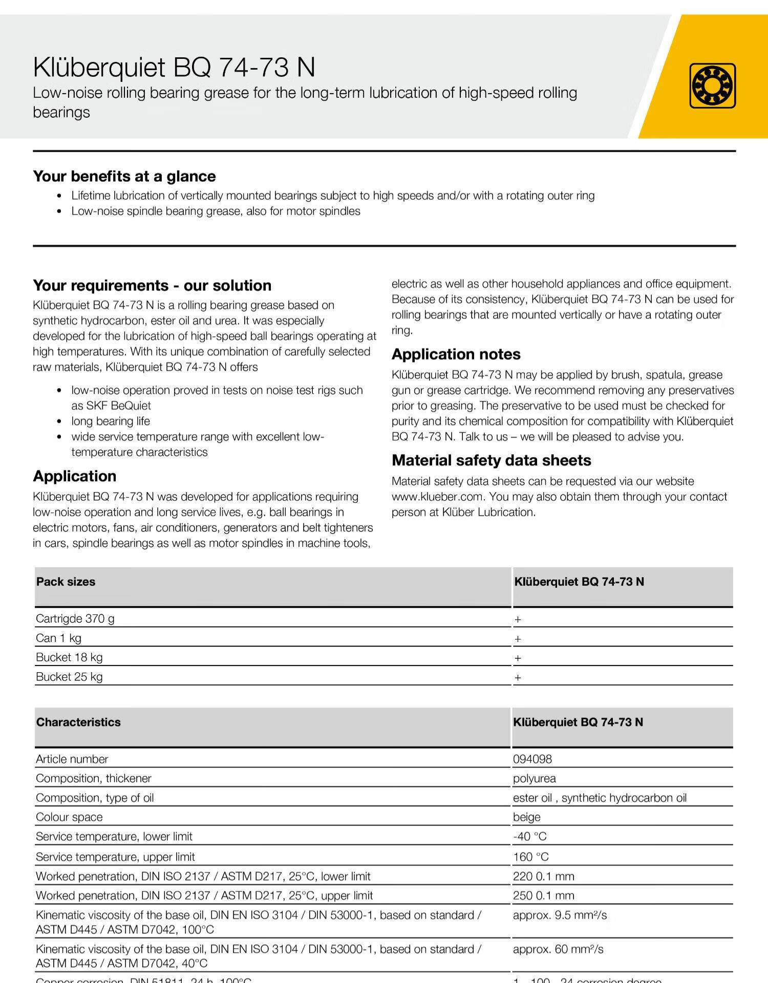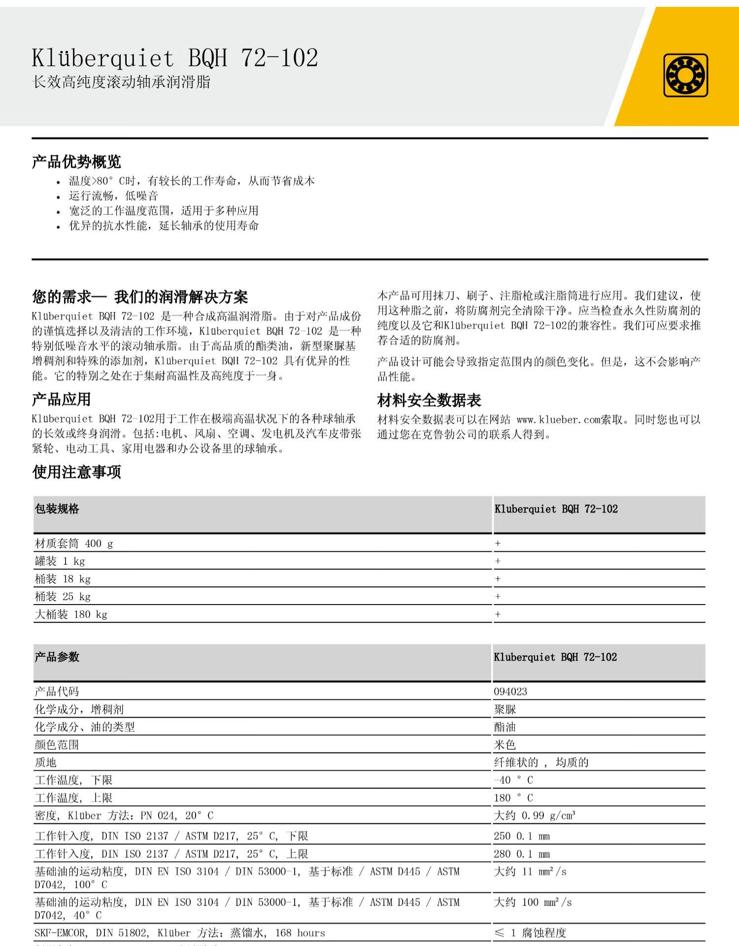 Klüber BQ 72-52/72/73N low noise lubricant BQH72-102 rolling bearing long-lasting grease series 400g Inquiry to place an order