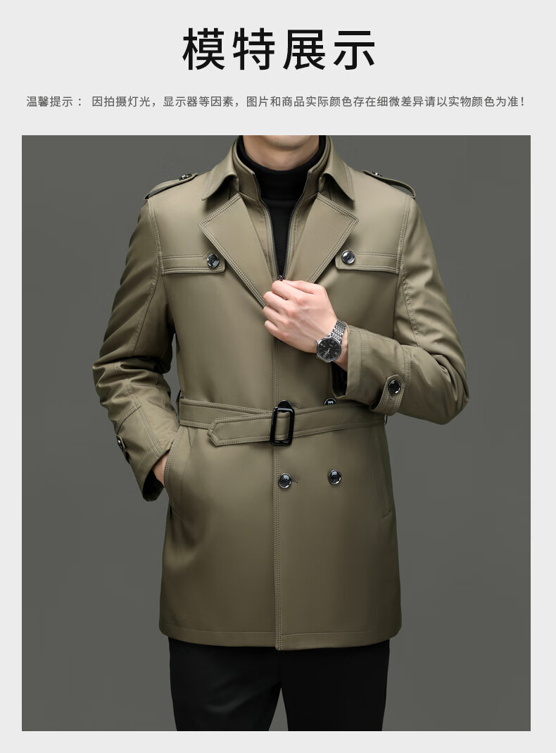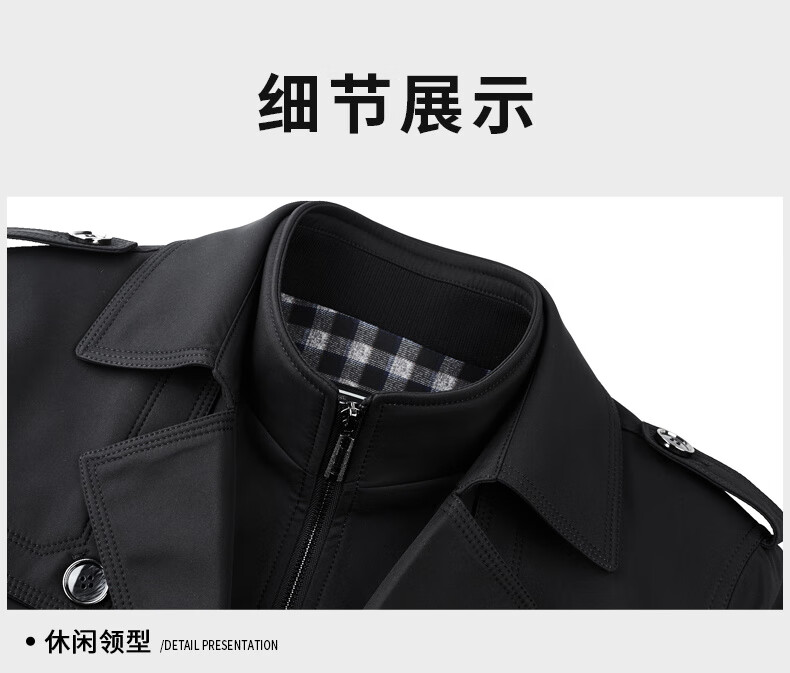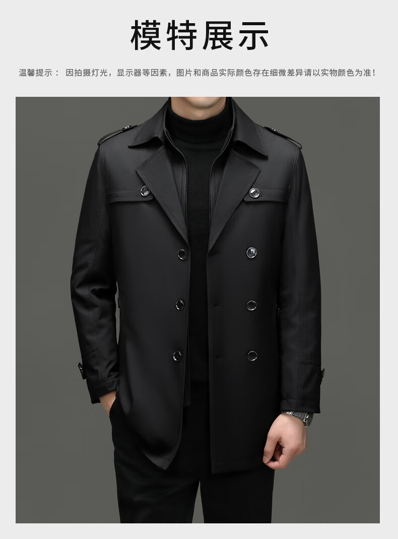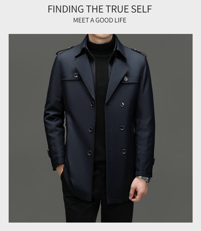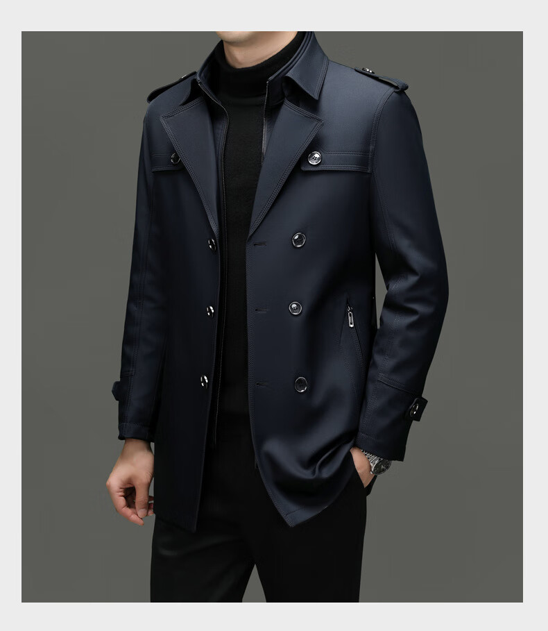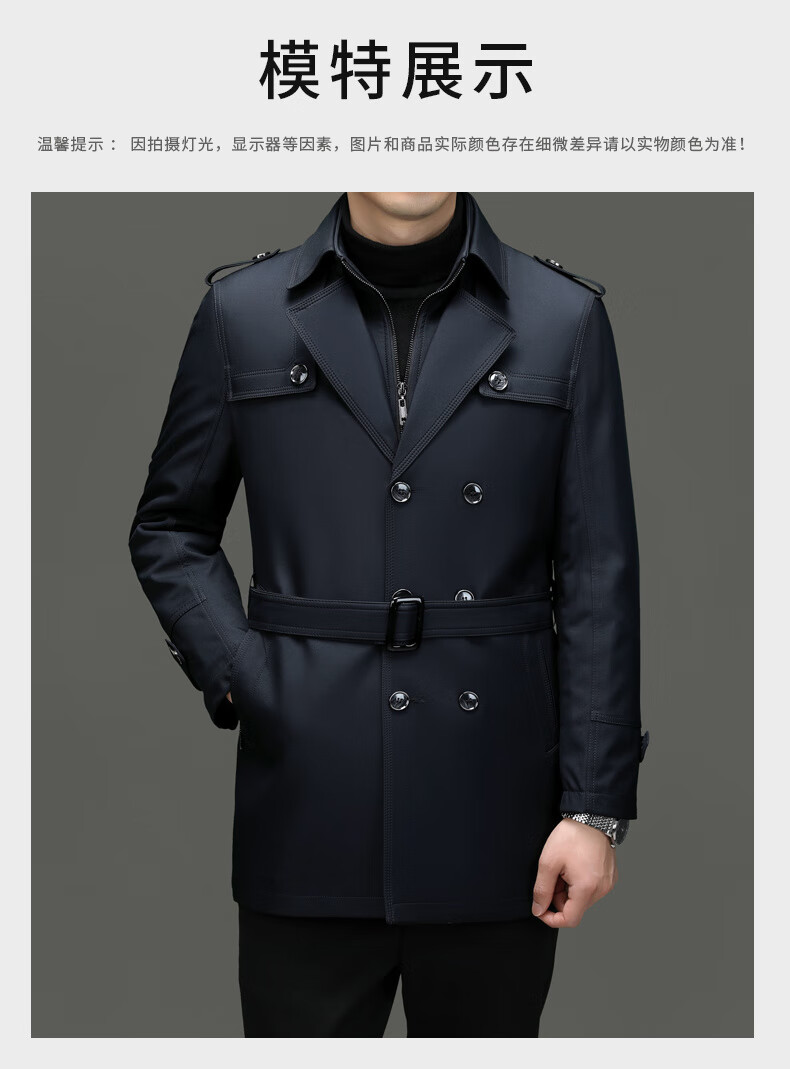 Pierre Cardin high-end wool windbreaker men's autumn and winter 2025 mid-length business casual removable wool lining warm jacket 159 style navy blue mid-length removable wool lining L 175 120-140Jin Jin equals 0.5 kg Weight
