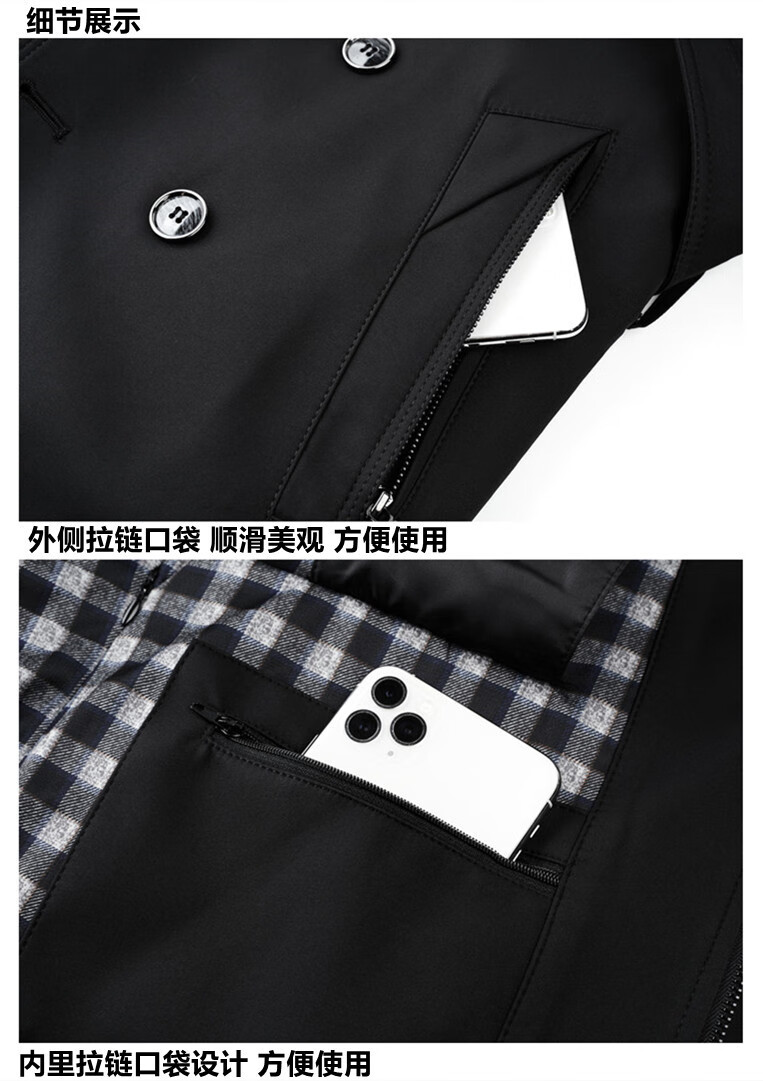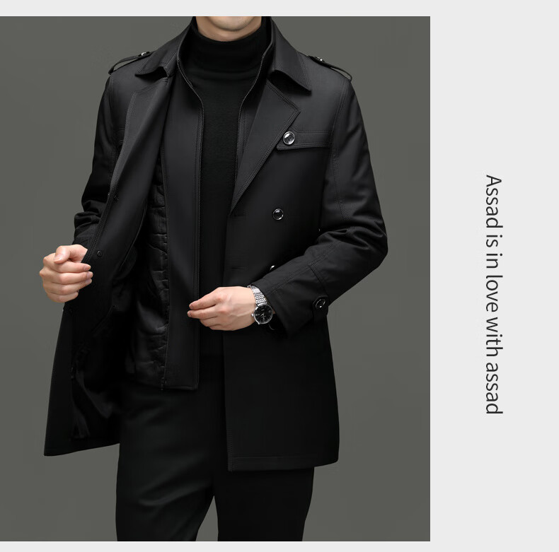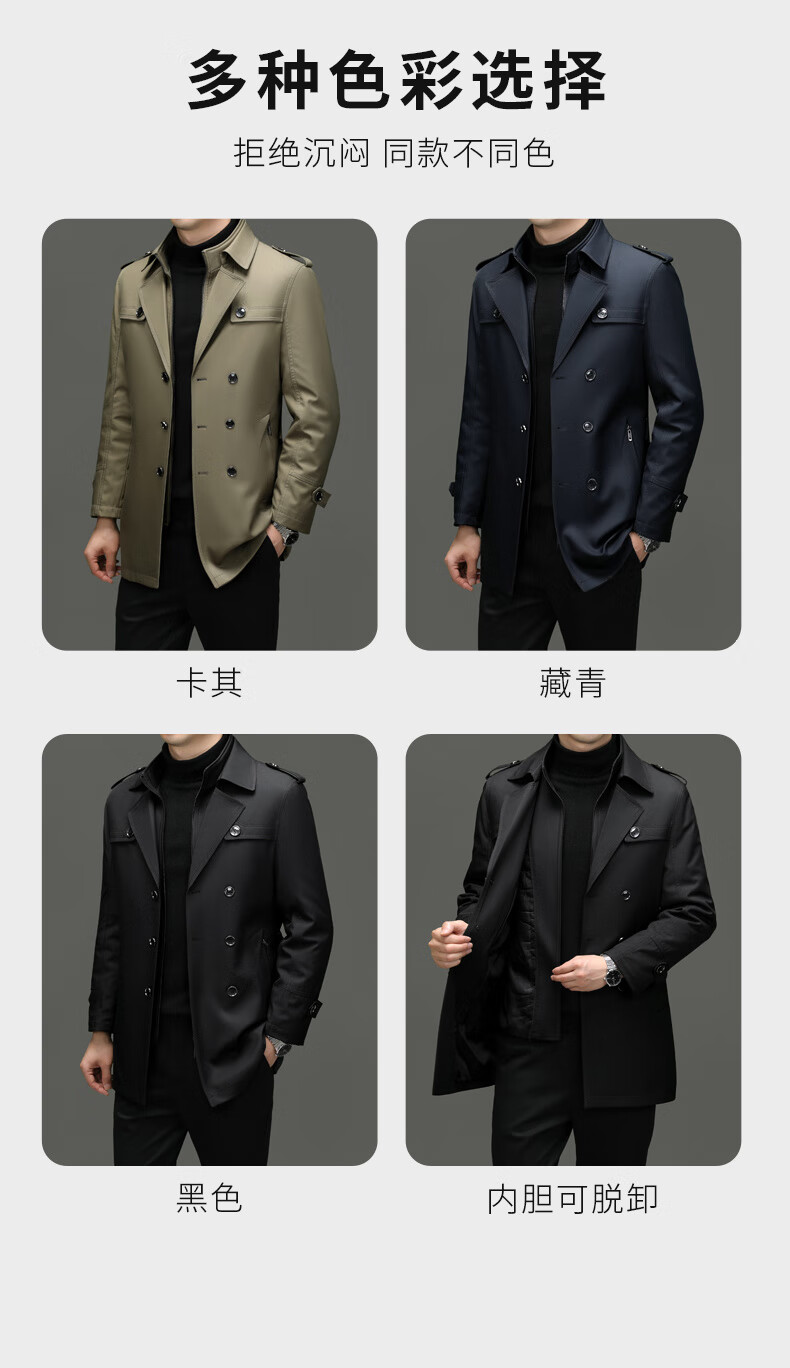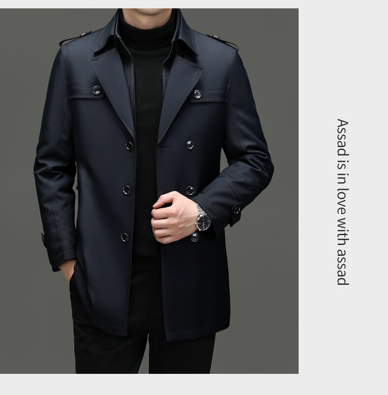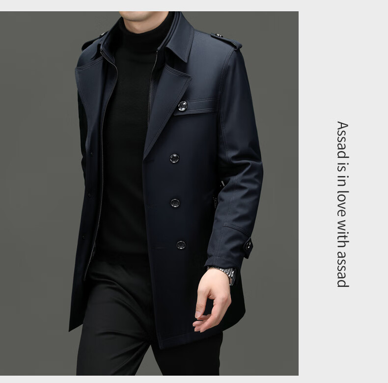 Pierre Cardin high-end wool windbreaker men's autumn and winter 2025 mid-length business casual removable wool lining warm jacket 159 style navy blue mid-length removable wool lining L 175 120-140Jin Jin equals 0.5 kg Weight