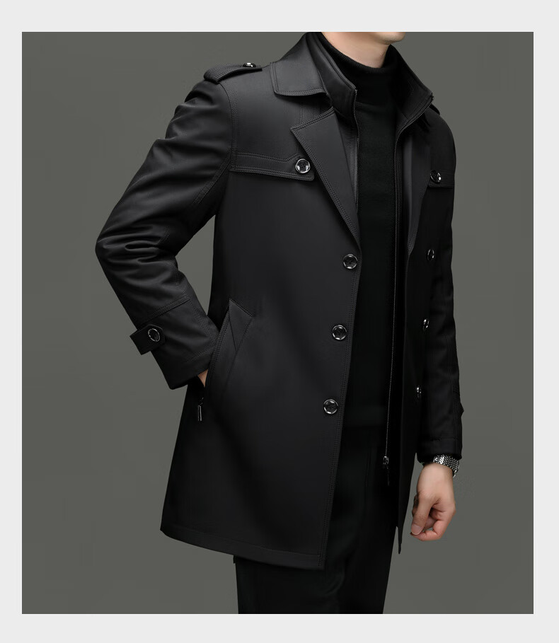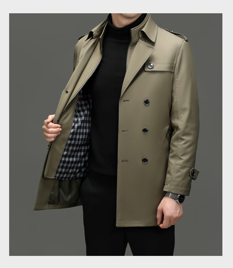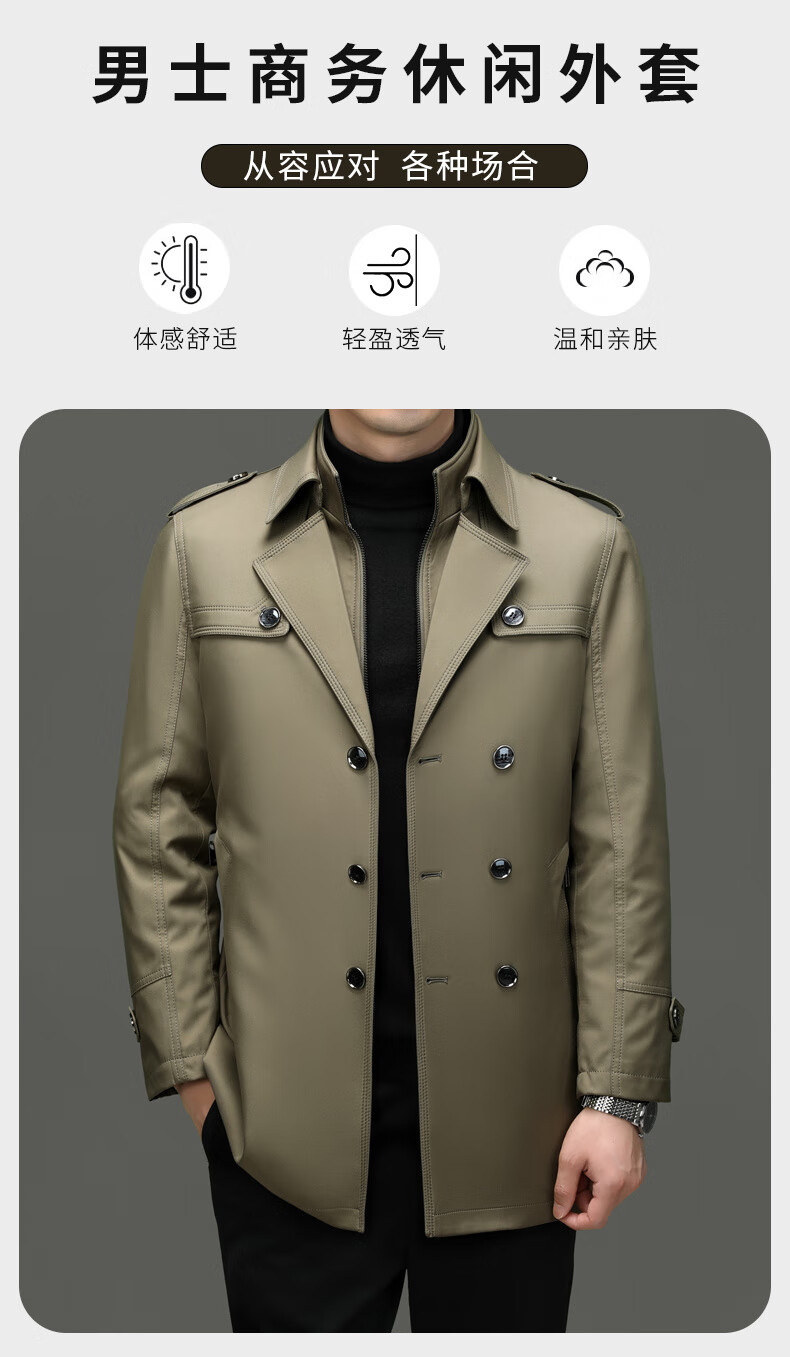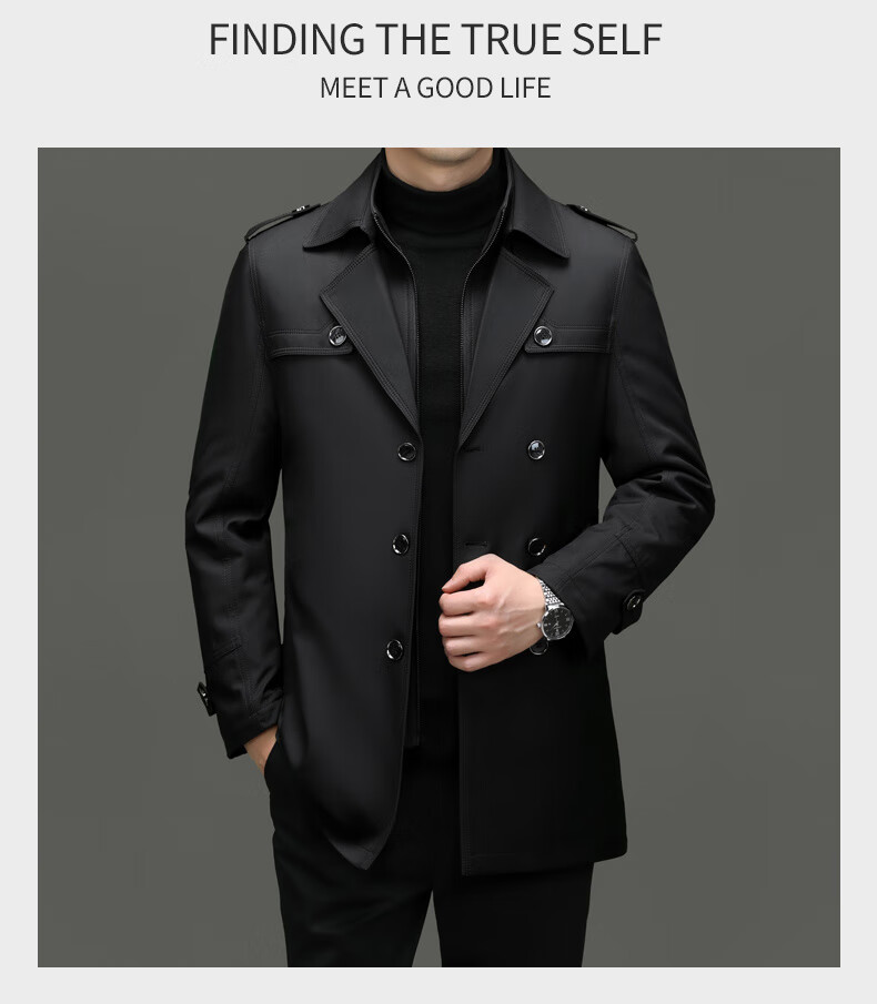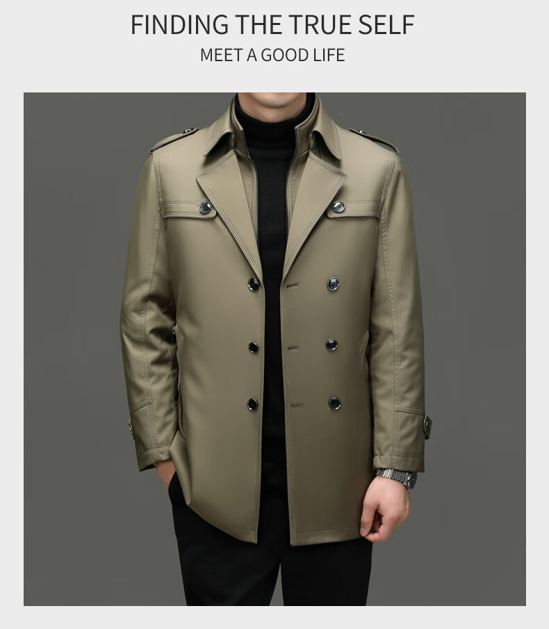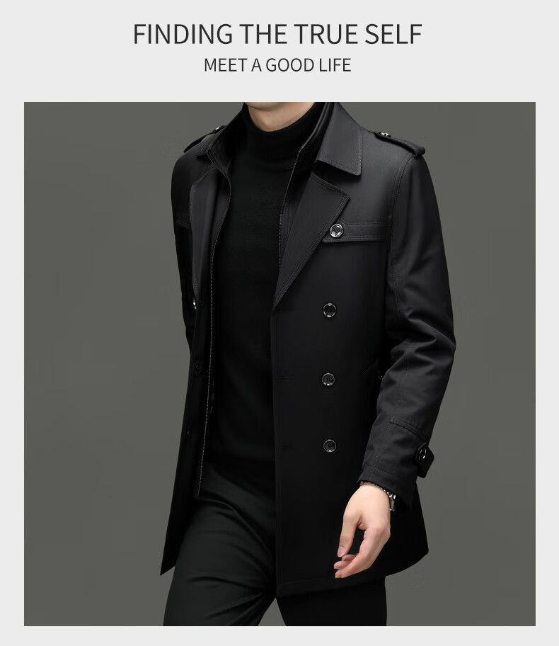 Pierre Cardin high-end wool windbreaker men's autumn and winter 2025 mid-length business casual removable wool lining warm jacket 159 style navy blue mid-length removable wool lining L 175 120-140Jin Jin equals 0.5 kg Weight