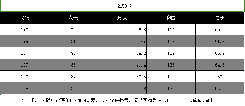 China (cm) 165 / 88-90 170 / 96-98 175 / 108-110 180 / 118-122 185 / 126-130