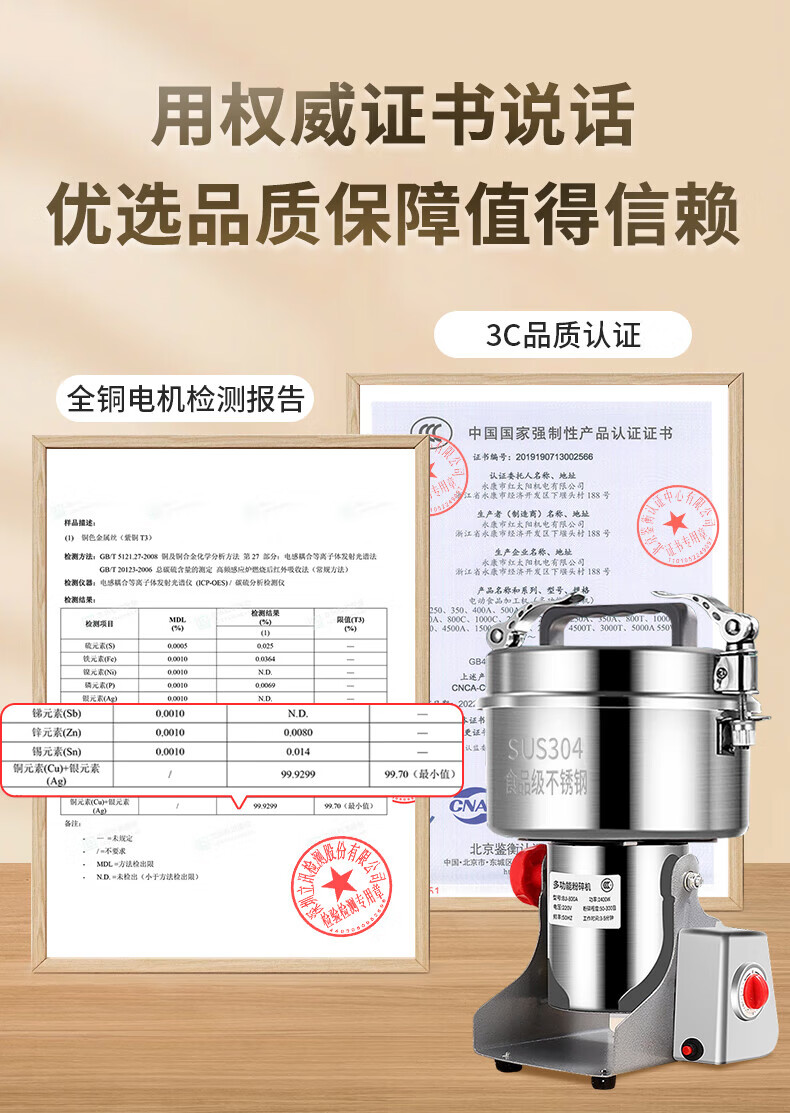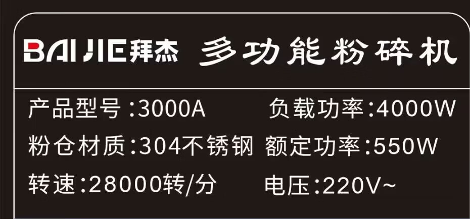 Baichunbao grinder Chinese medicine grinder commercial mill Panax notoginseng ultra-fine grinder 304 stainless steel grinding powder swing 2000A fine grinding powerful motor