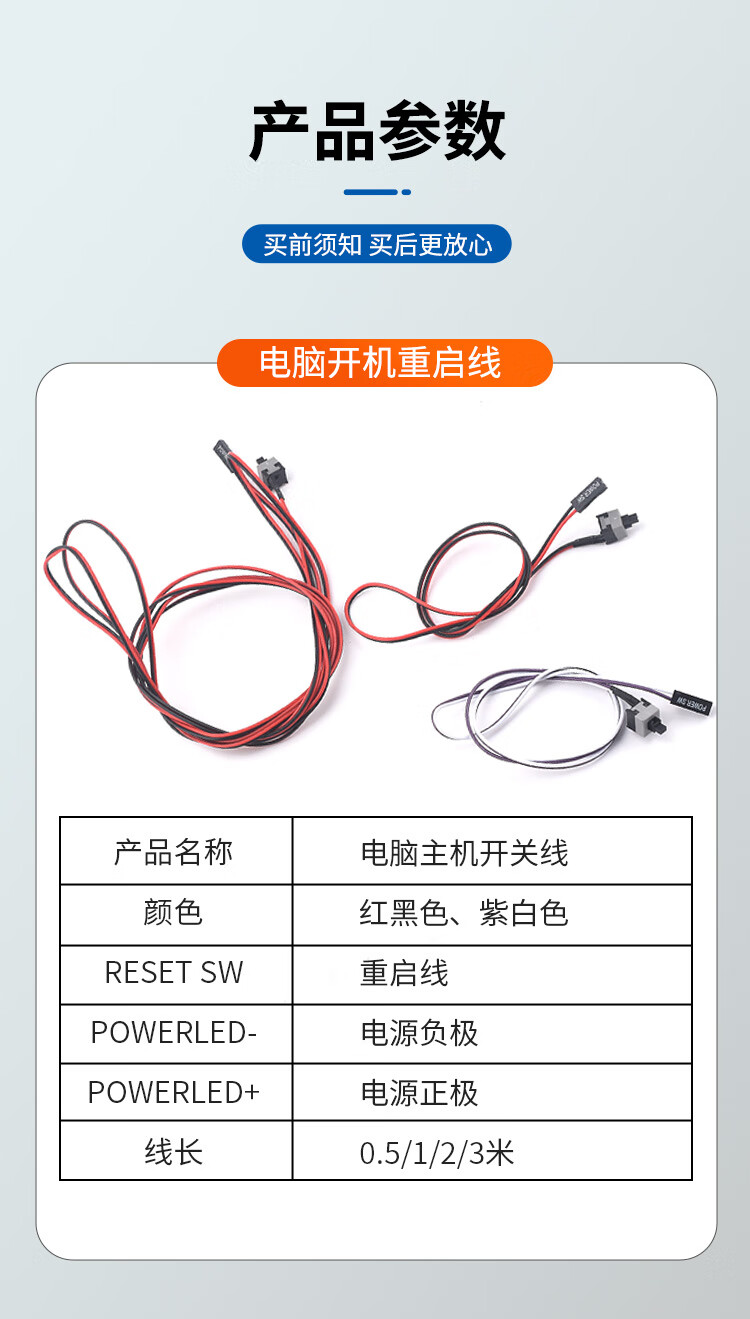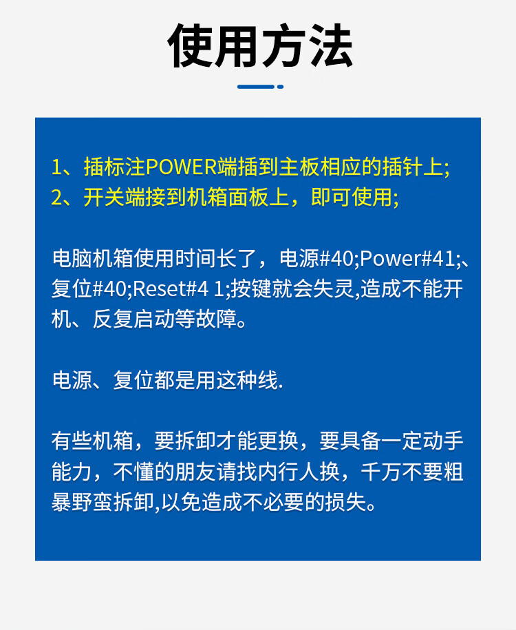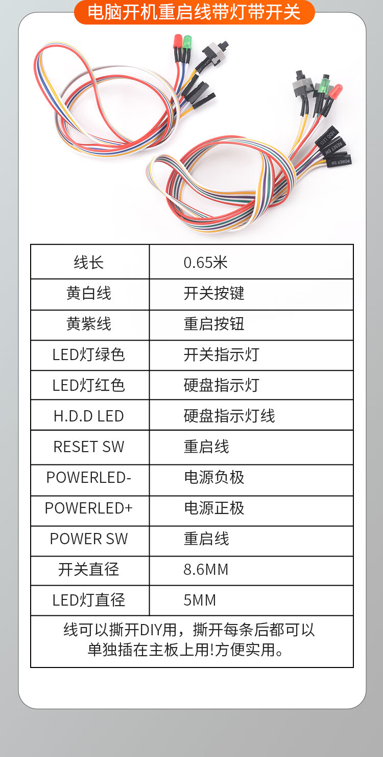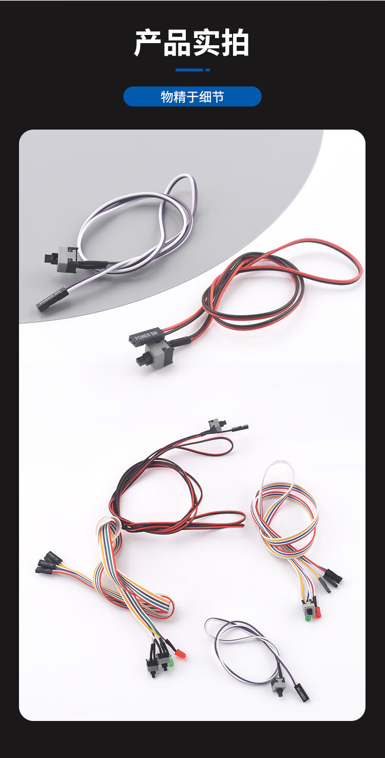 Zejie power on button chassis desktop computer host switch cable restart cable POWER key RESET connection jumper 7.4cm baffle cable 65cm USB2.0+3.5 audio no Specifications