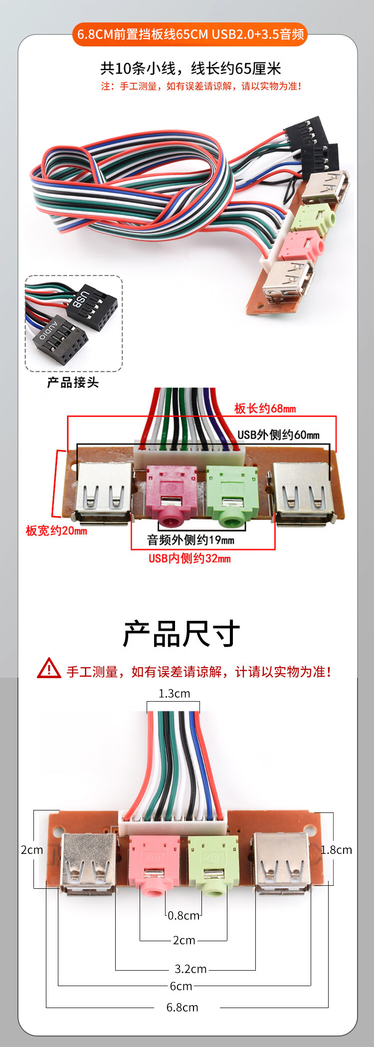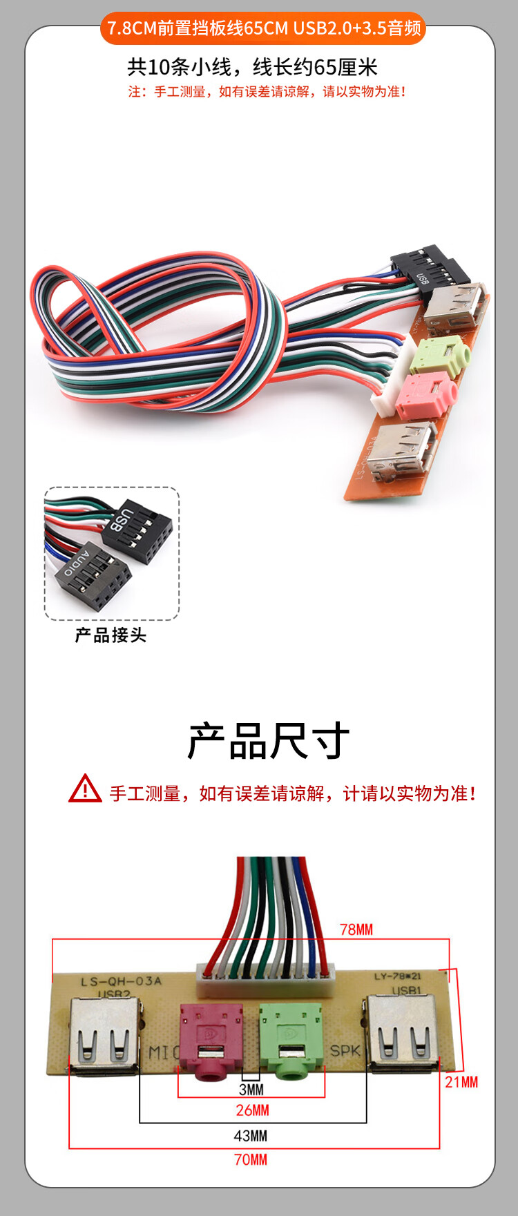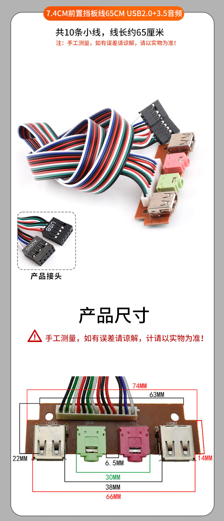 Zejie power on button chassis desktop computer host switch cable restart cable POWER key RESET connection jumper 7.4cm baffle cable 65cm USB2.0+3.5 audio no Specifications