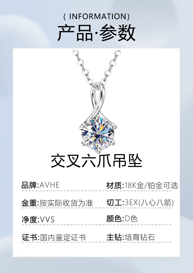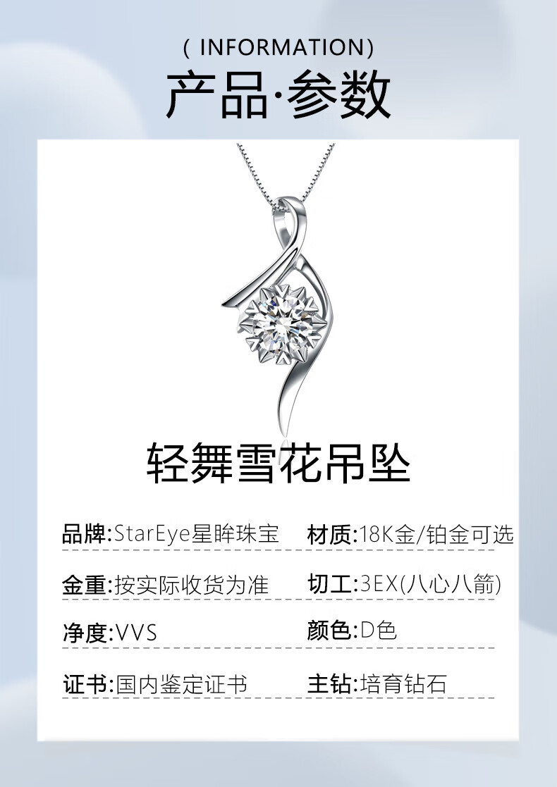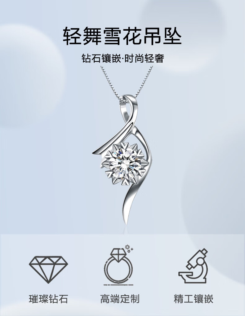AVHEPT950 platinum diamond necklace with diamonds and dancing snowflakes, cultivated diamond pendant, wedding gift for men for Chinese Valentine's Day, platinum dancing snowflakes pendant - 1 carat diamond