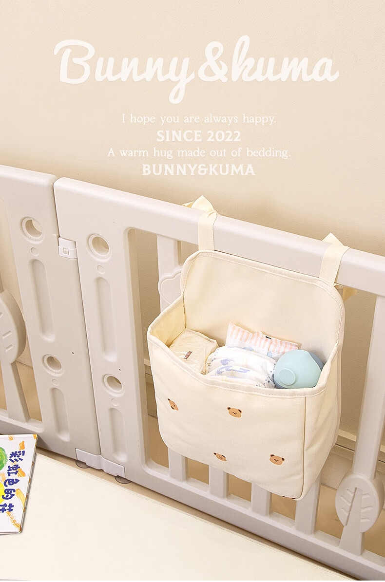 Fantasy crib hanging storage splicing bed diaper storage hanging basket fence storage basket diaper table side storage beige bear storage hanging bag