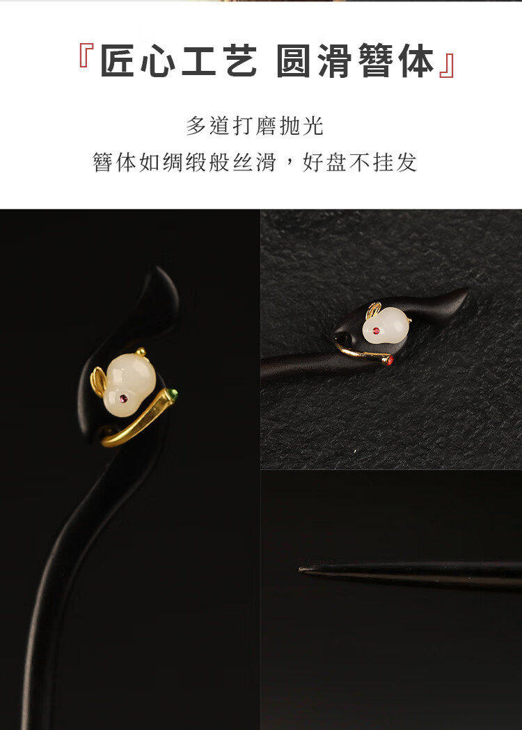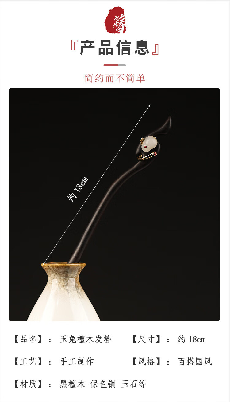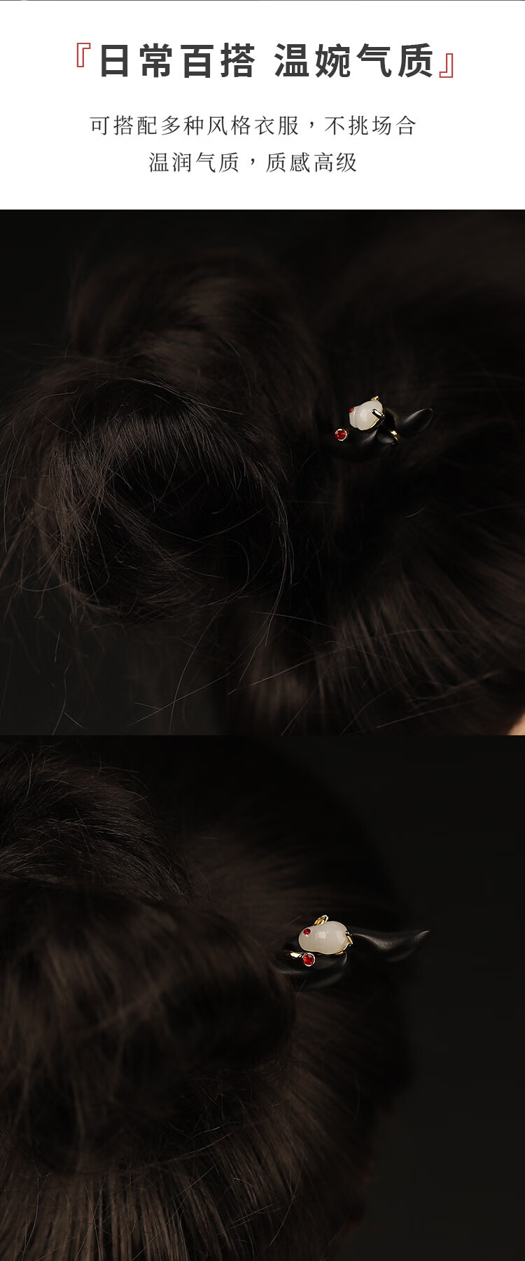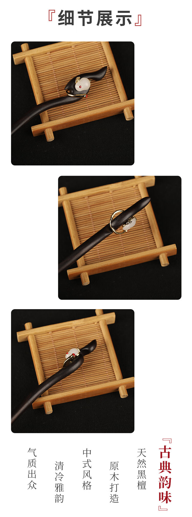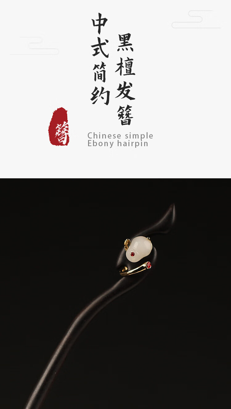 Chinese style ebony hairpin antique style retro style hand-carved elegant temperament daily Hanfu cheongsam hair accessories red tail