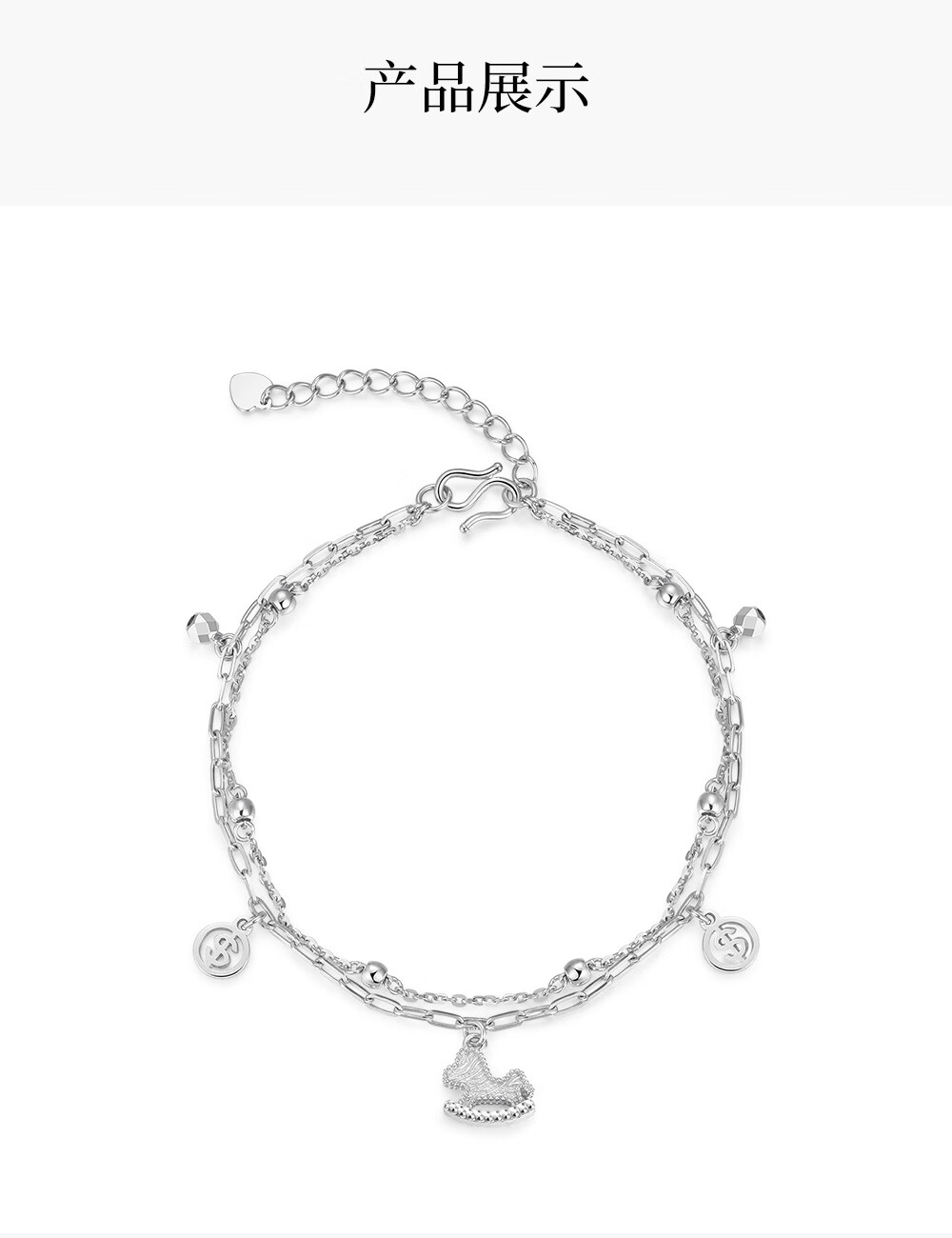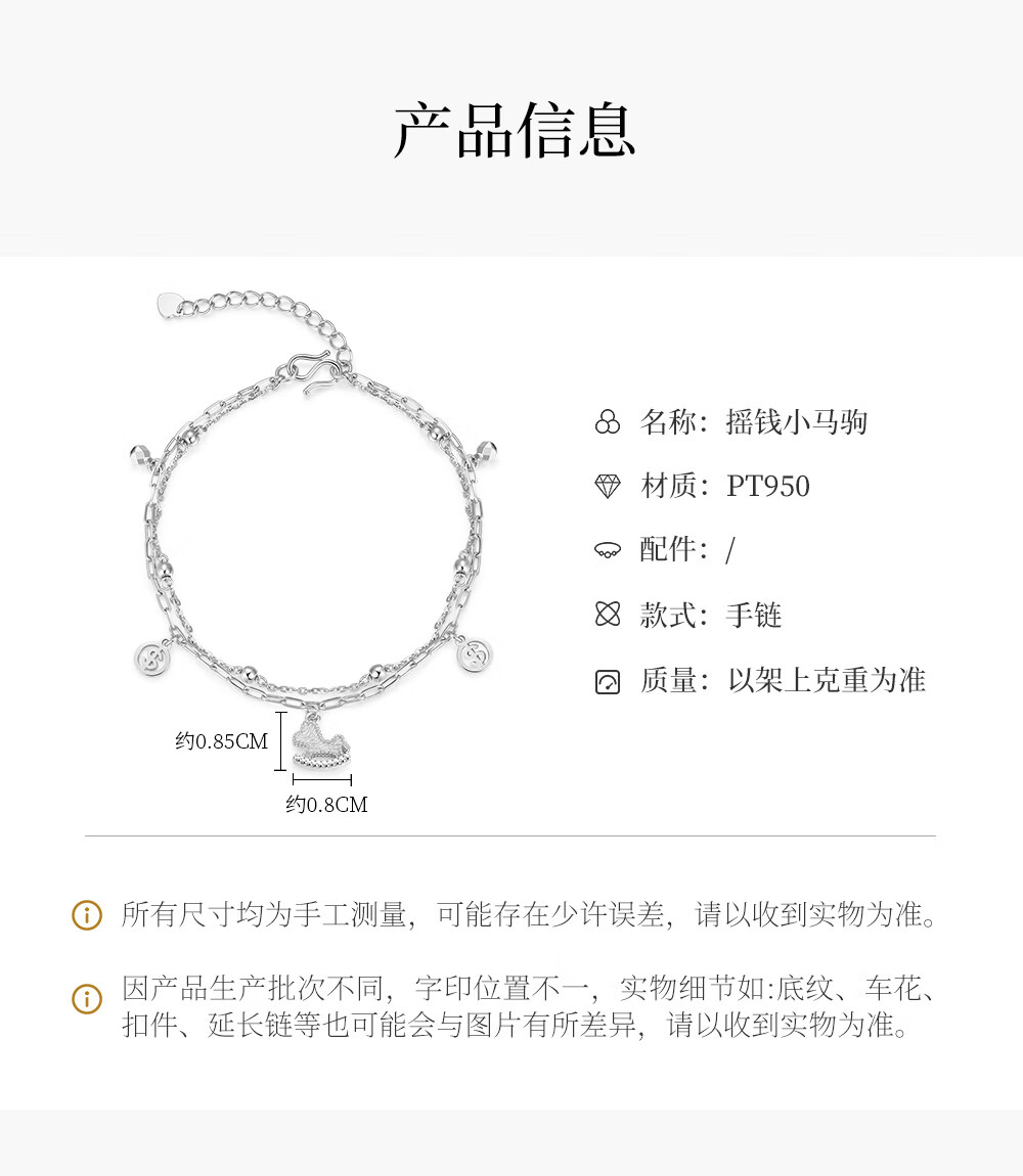 Ming brand jewelry platinum bracelet Pt950 platinum money pony bracelet BFK0067 chain length about 15.5+3.5 cm, about 4.54 grams