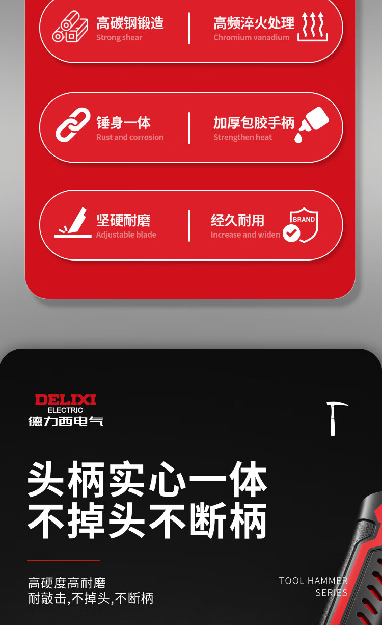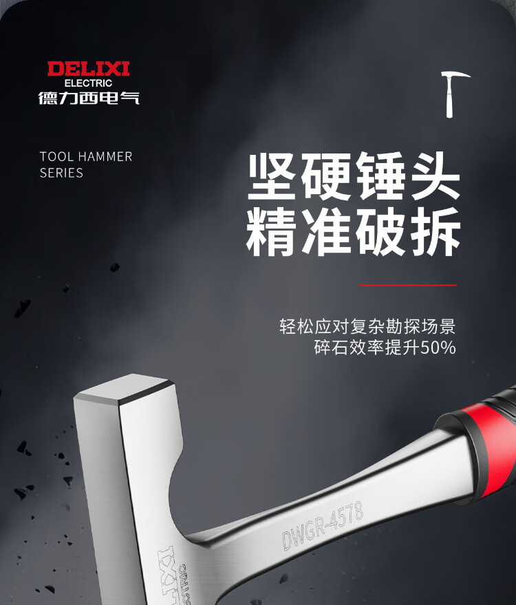 Delixi geological hammer professional exploration hammer excavating jade ore fossils special tool outdoor archaeological ground hammer integrated large flat head super hard integrated geological hammer + stone chisel