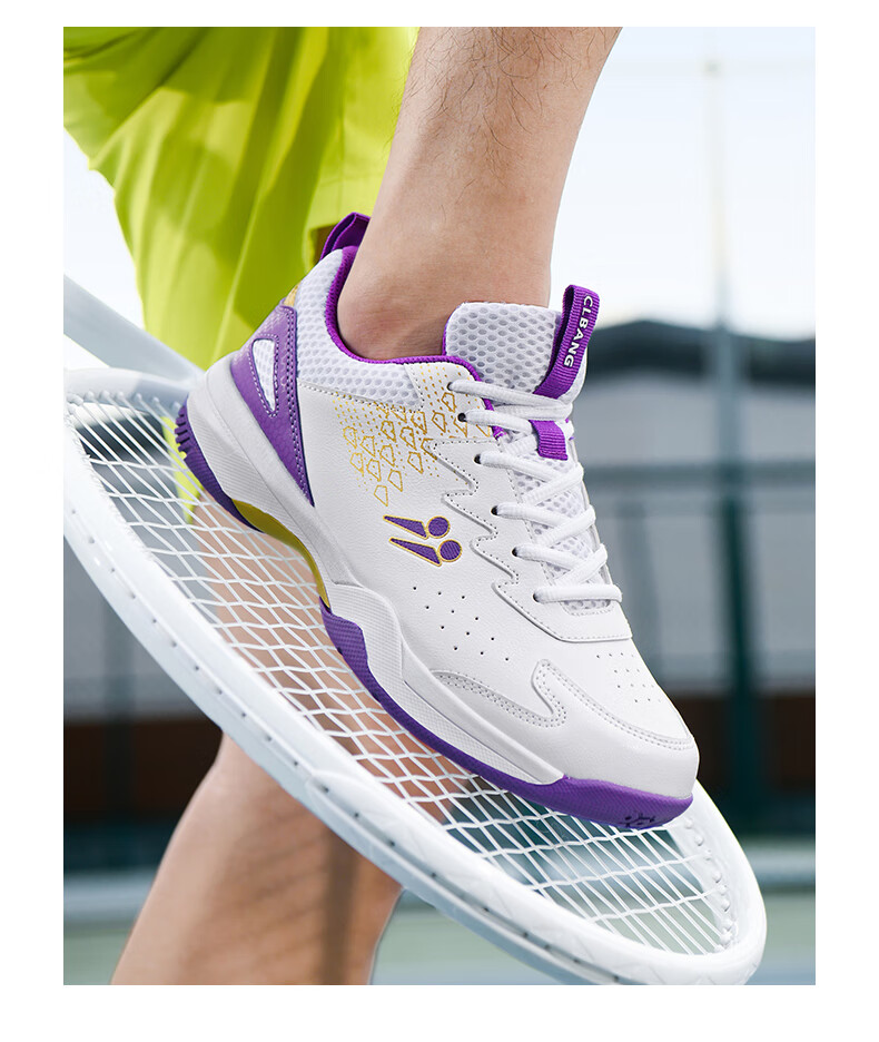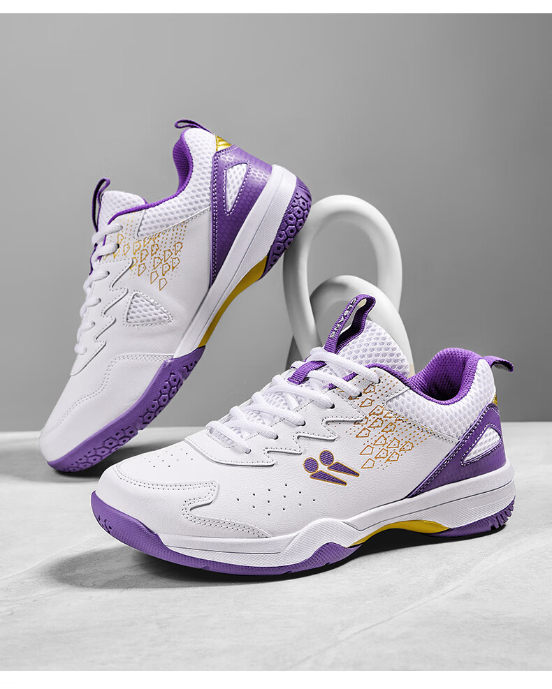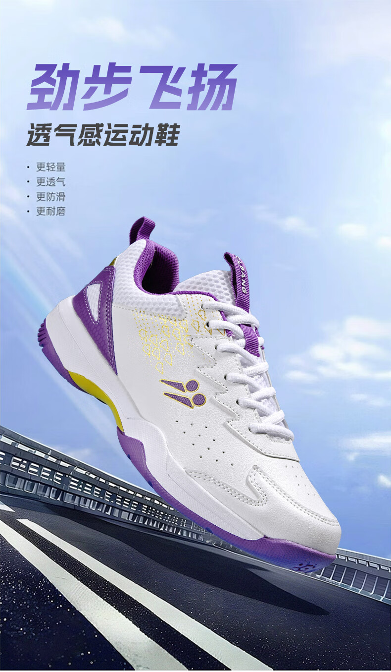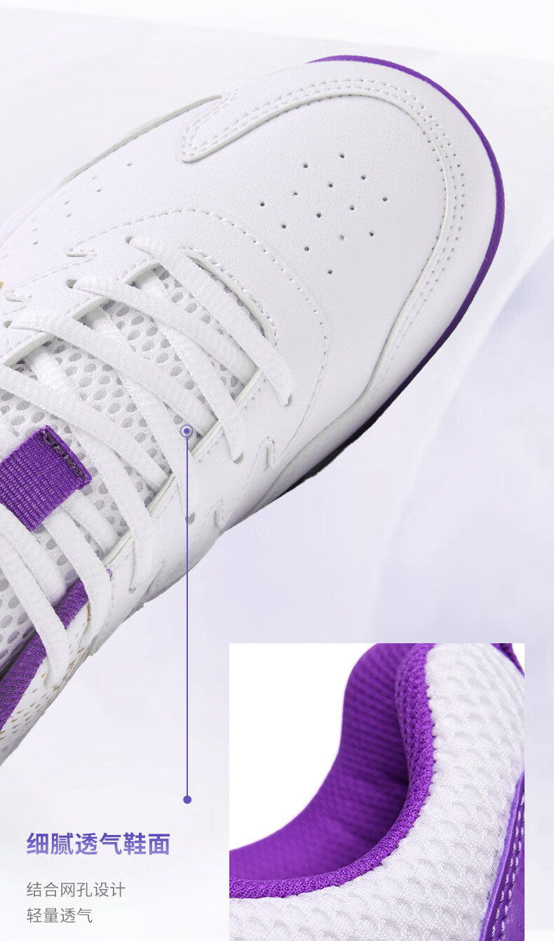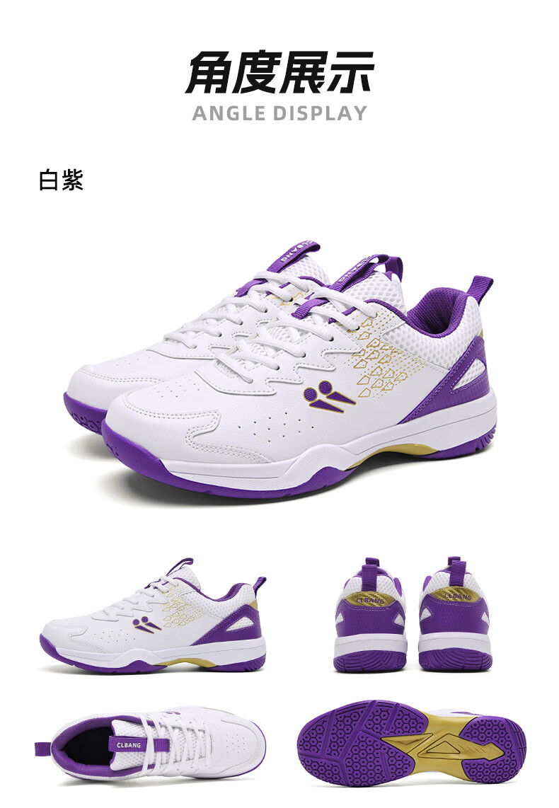 CLBANG new summer badminton shoes for men, non-slip breathable training tennis shoes, cushioning and rebound, women's table tennis shoes, white and purple 39