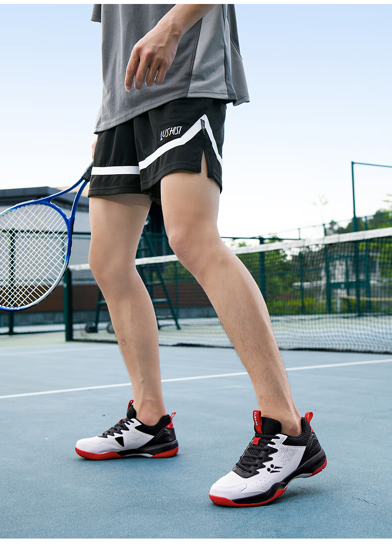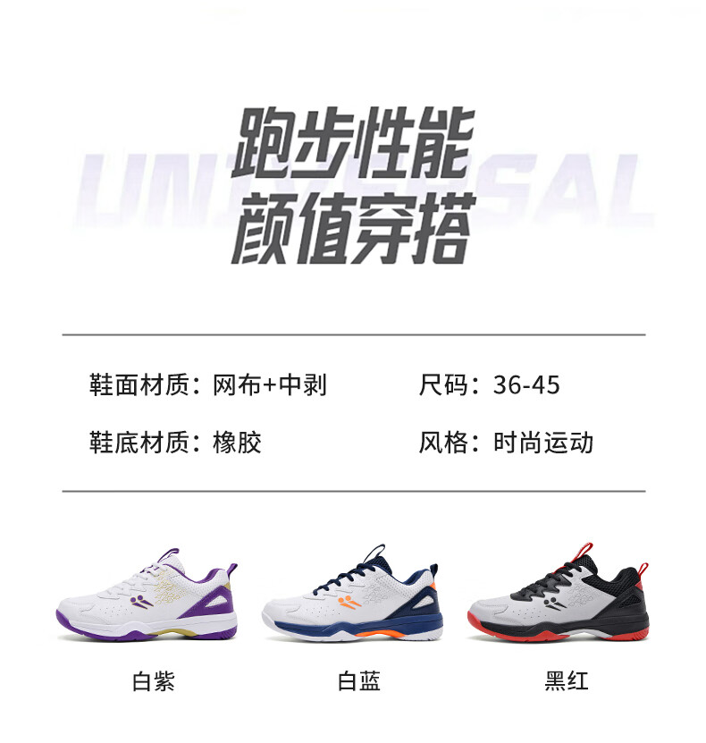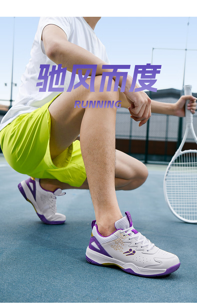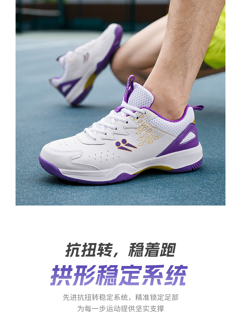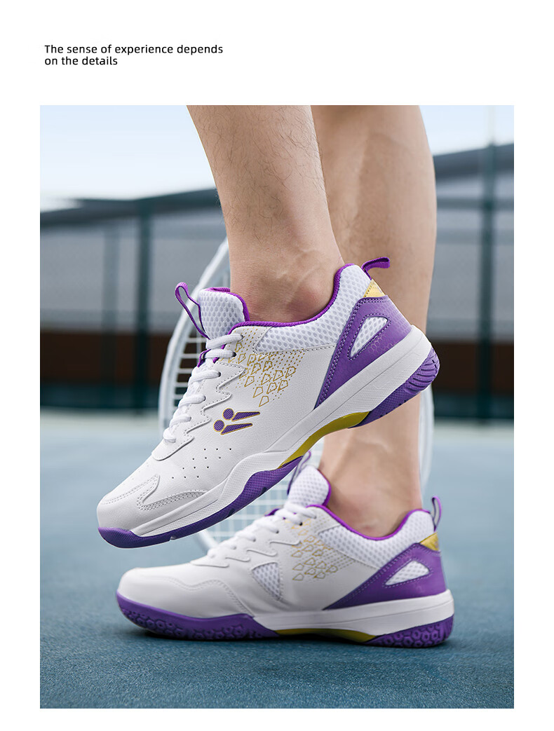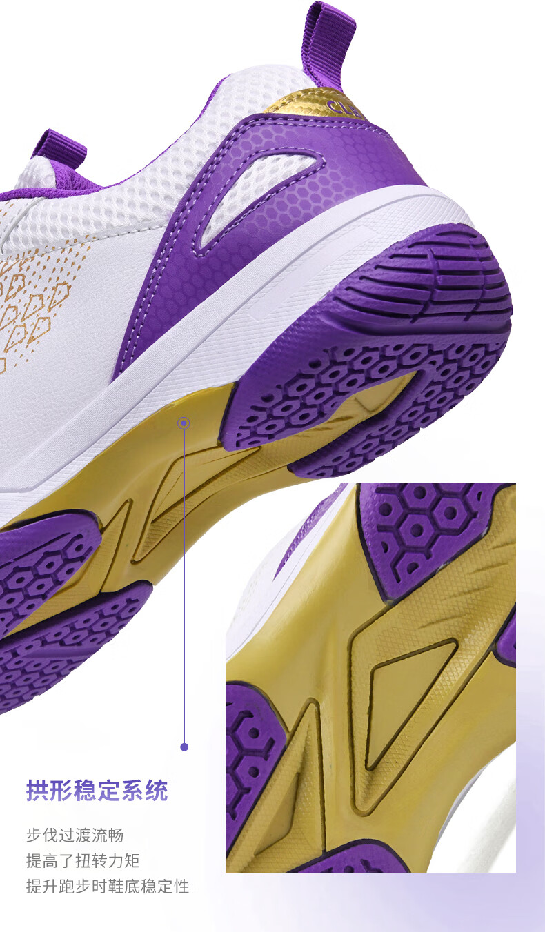 CLBANG new summer badminton shoes for men, non-slip breathable training tennis shoes, cushioning and rebound, women's table tennis shoes, white and purple 39