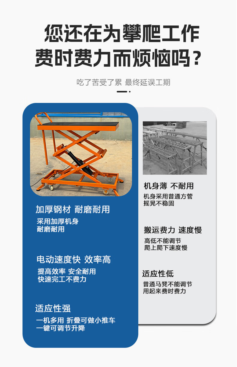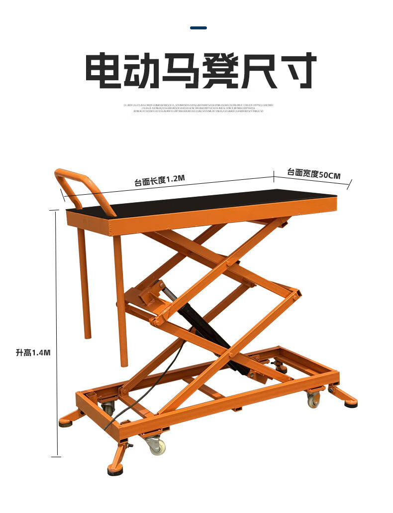 Electric lifting horse stool folding hydraulic new foot-operated movable platform indoor tile decoration trolley load-bearing 800Jin Jin is equal to 0.5kg 1.2*0.5 table top Liter 1.4 meters