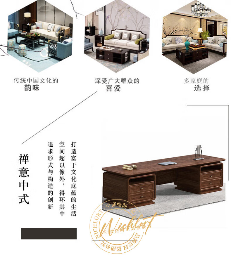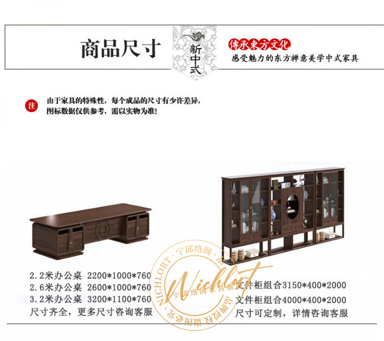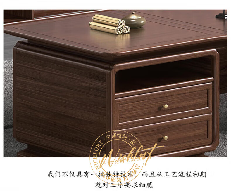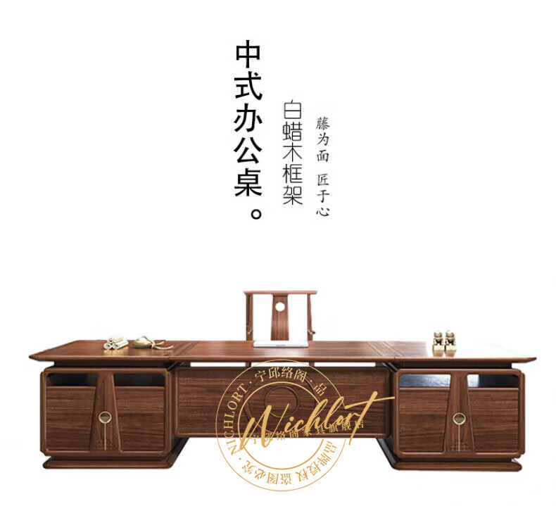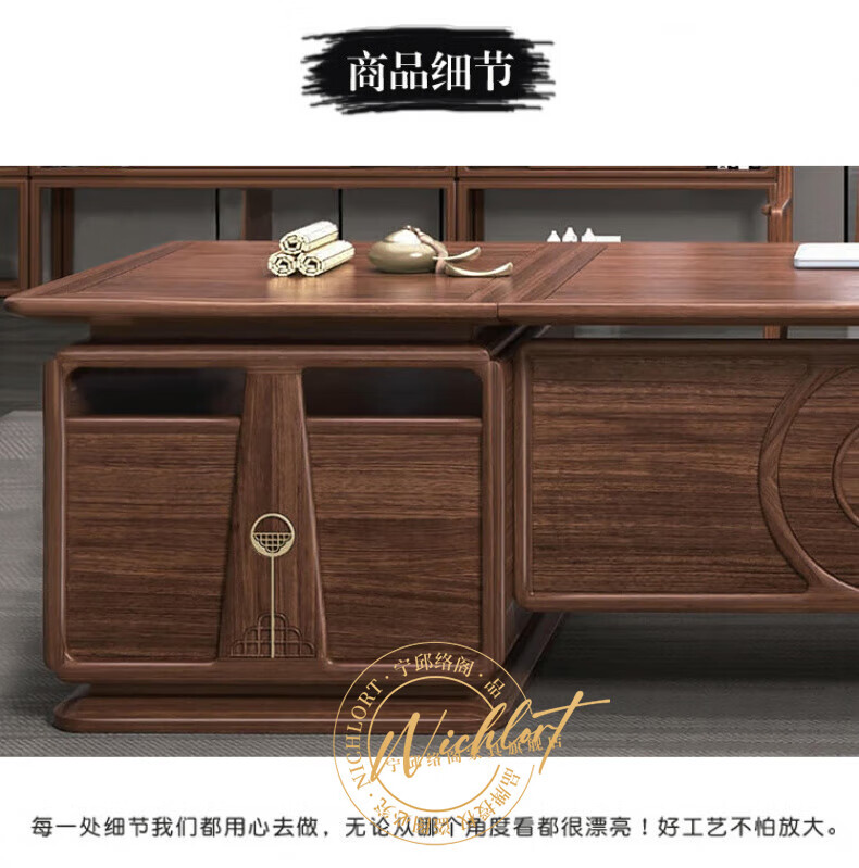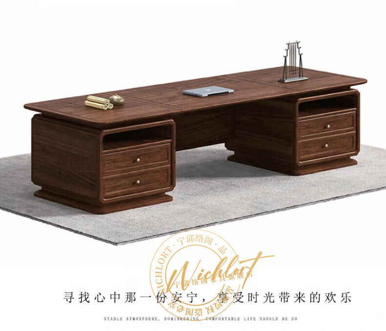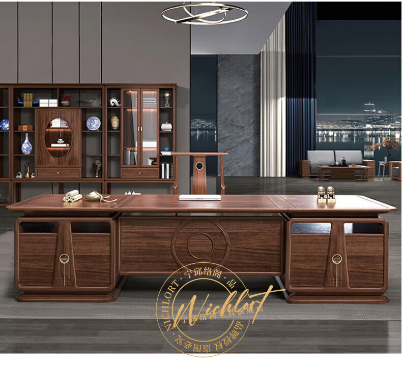 Ningqiu Luoge (NICHLORT) boss desk new Chinese style Zen atmosphere desk high-end president desk chairman's room furniture ebony wood customized 3.2 meter desk