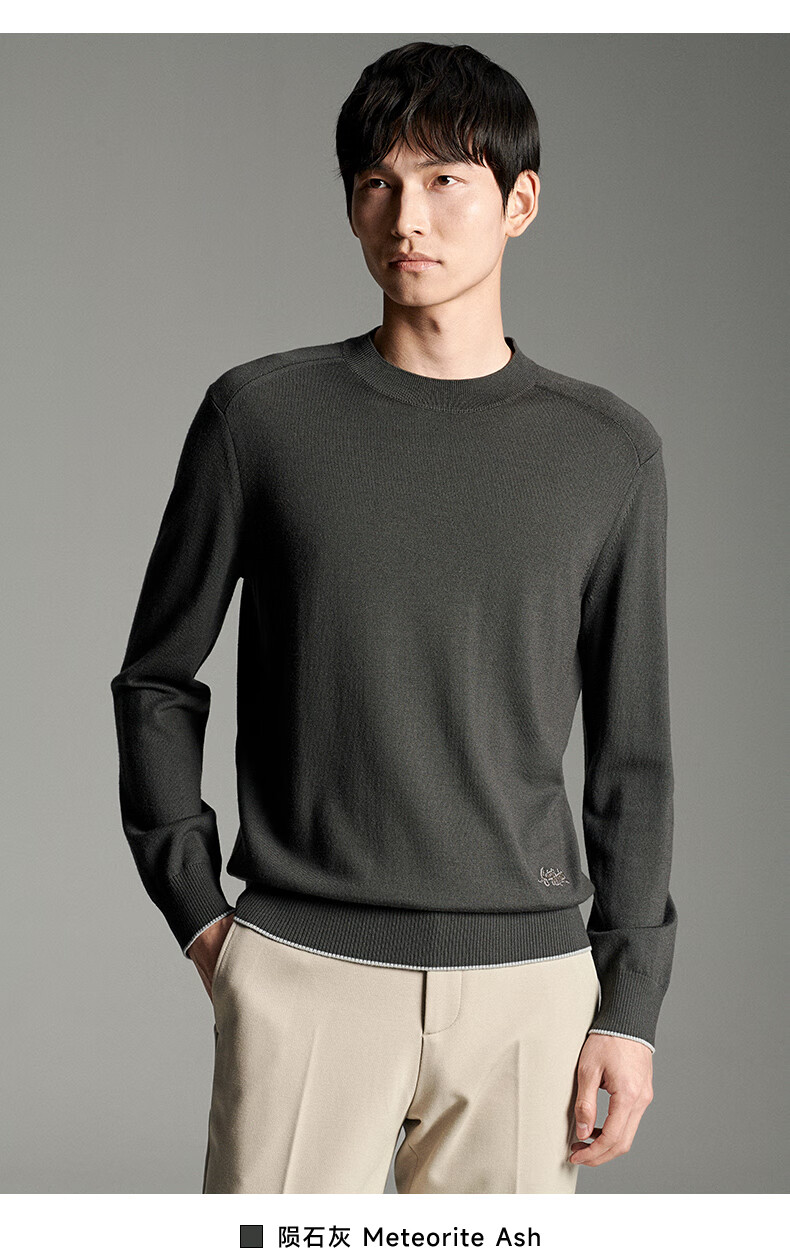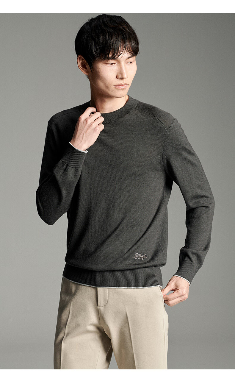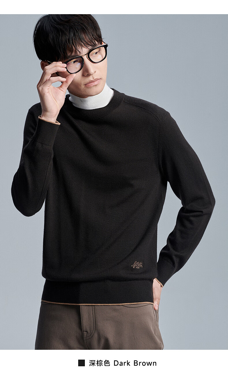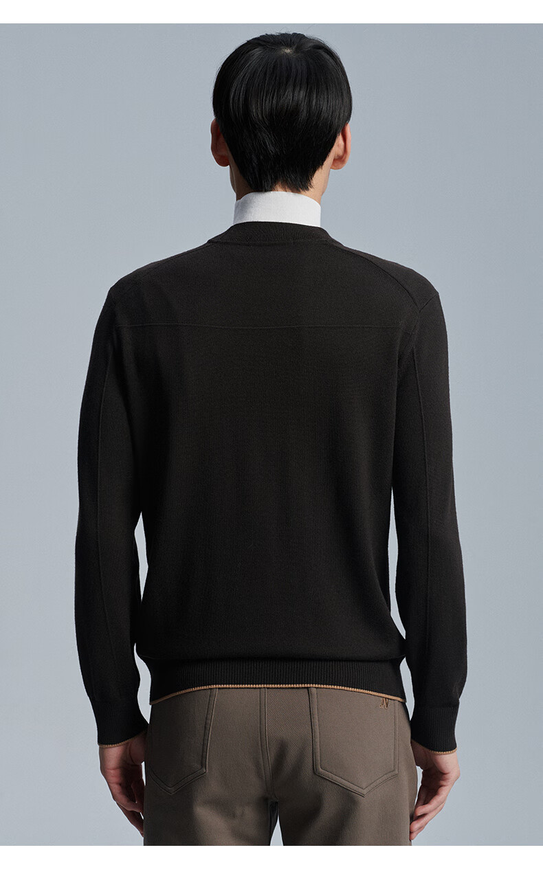 Anniversary Bird Cardigan Men's Wear Same Style in Shopping Malls Autumn Men's Business Casual Round Neck Pure Wool Inner Sweater Men Dark Brown M -46(170/92)