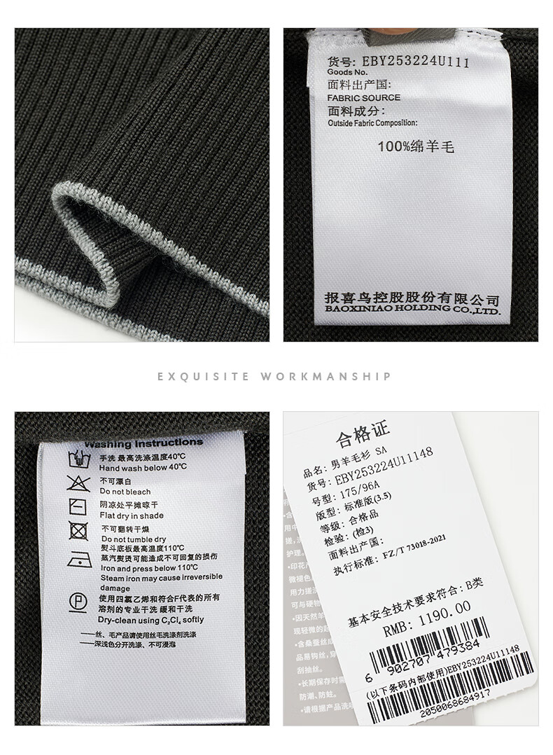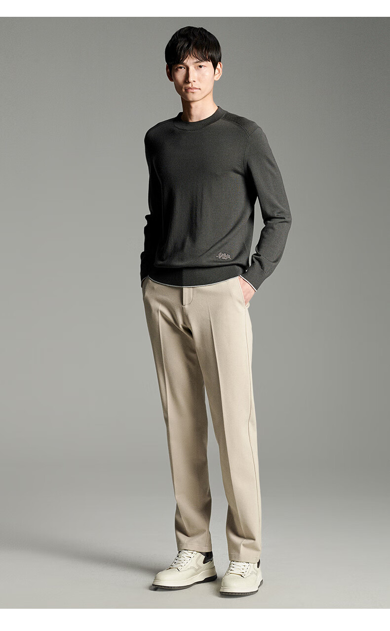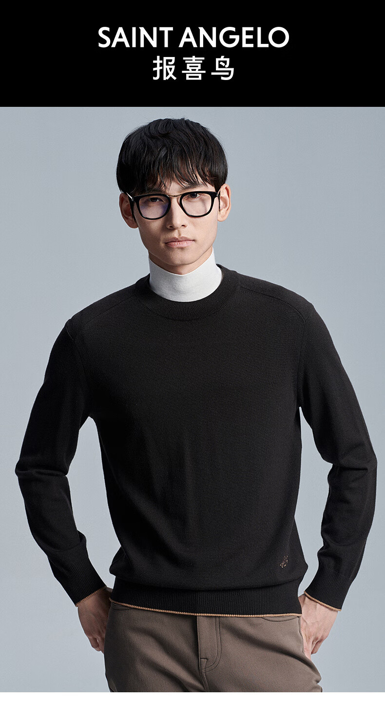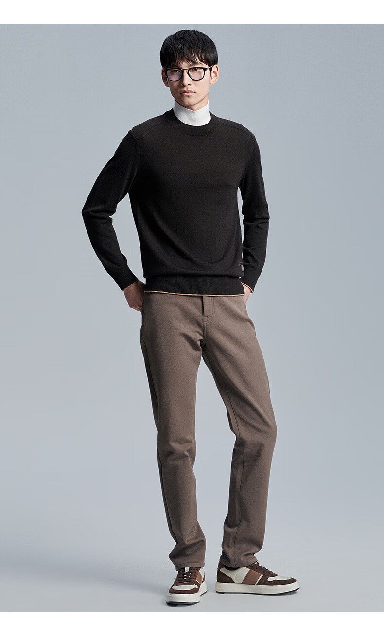 Anniversary Bird Cardigan Men's Wear Same Style in Shopping Malls Autumn Men's Business Casual Round Neck Pure Wool Inner Sweater Men Dark Brown M -46(170/92)