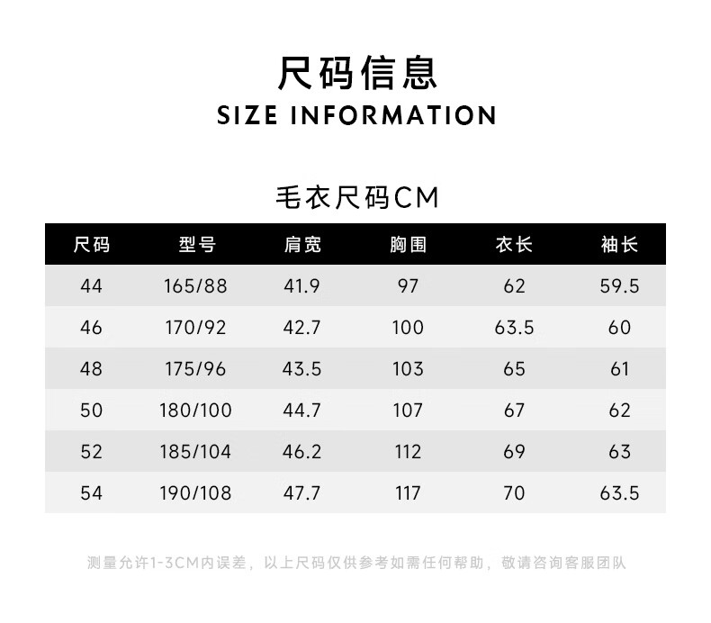 Size (cm) 42 44 46 48 50