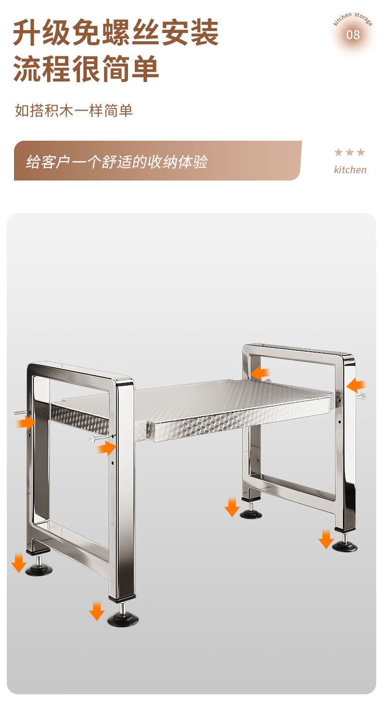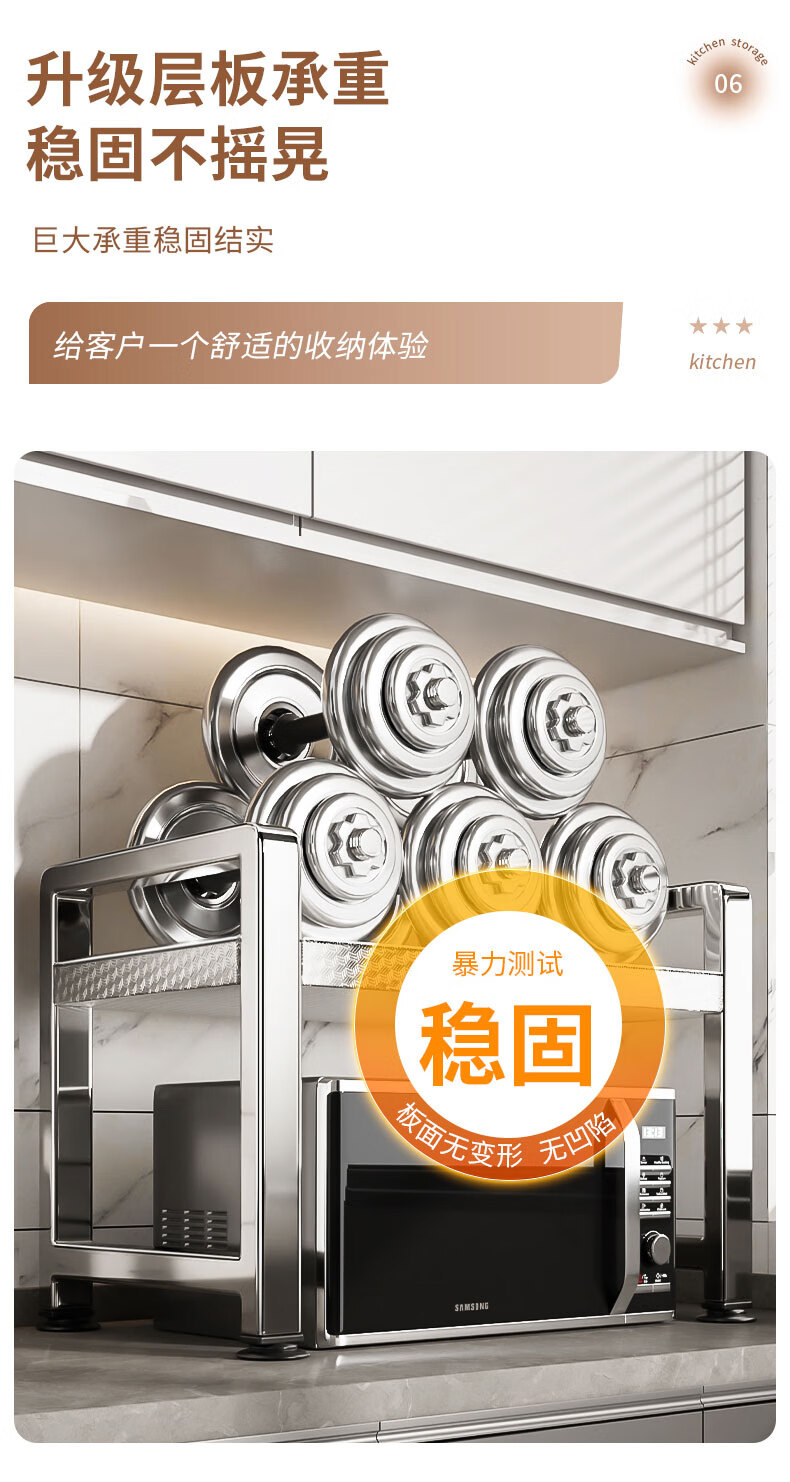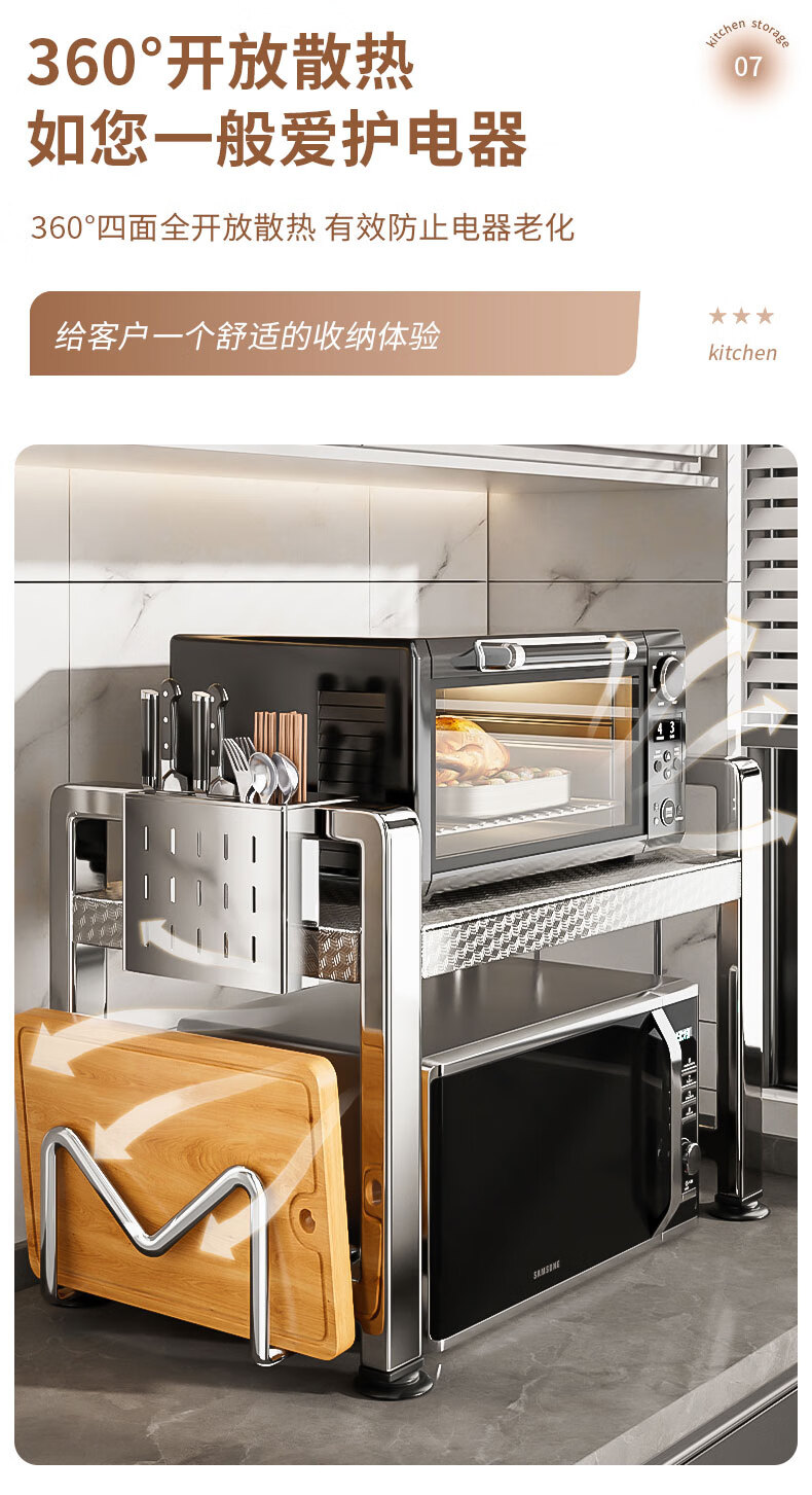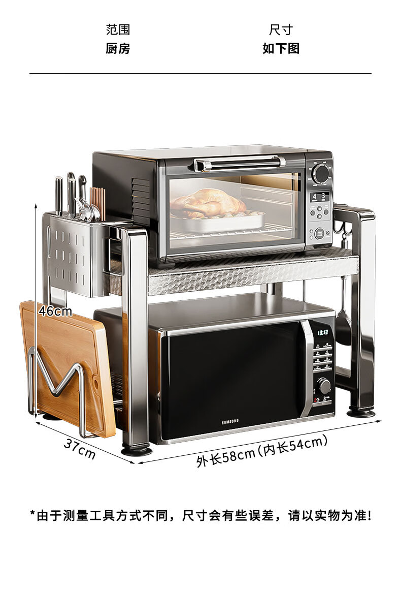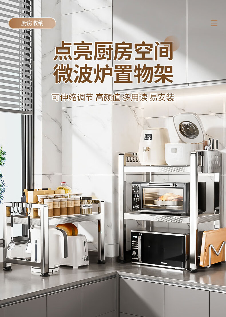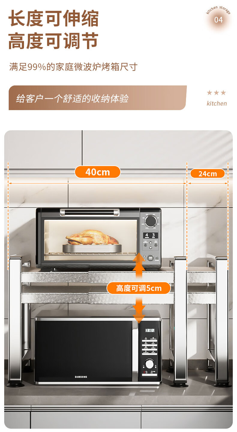 Benwang (BW) 304 stainless steel kitchen microwave storage rack countertop multi-function oven rack household rice cooker storage rack dragon scale laminate 304 steel double layer telescopic + fully equipped