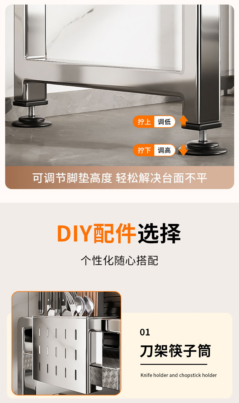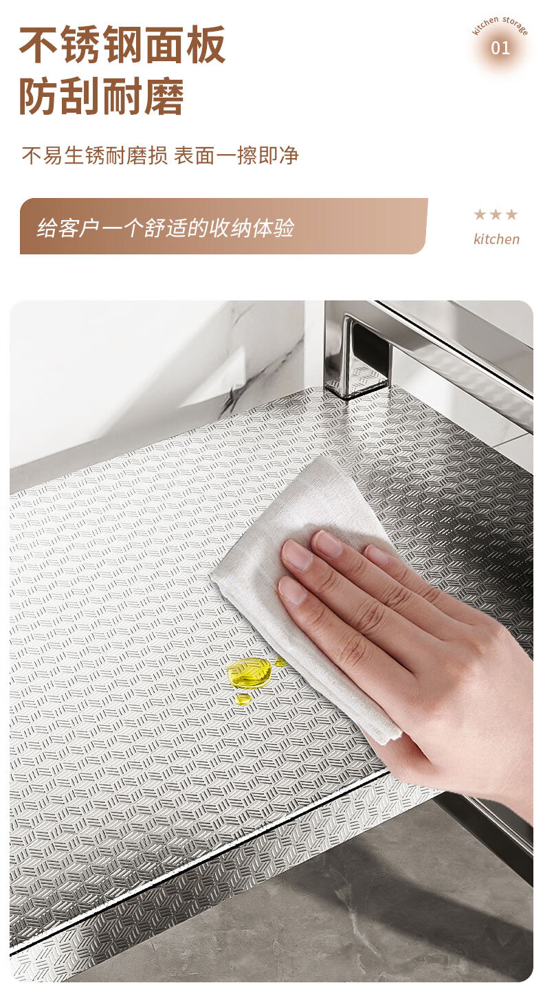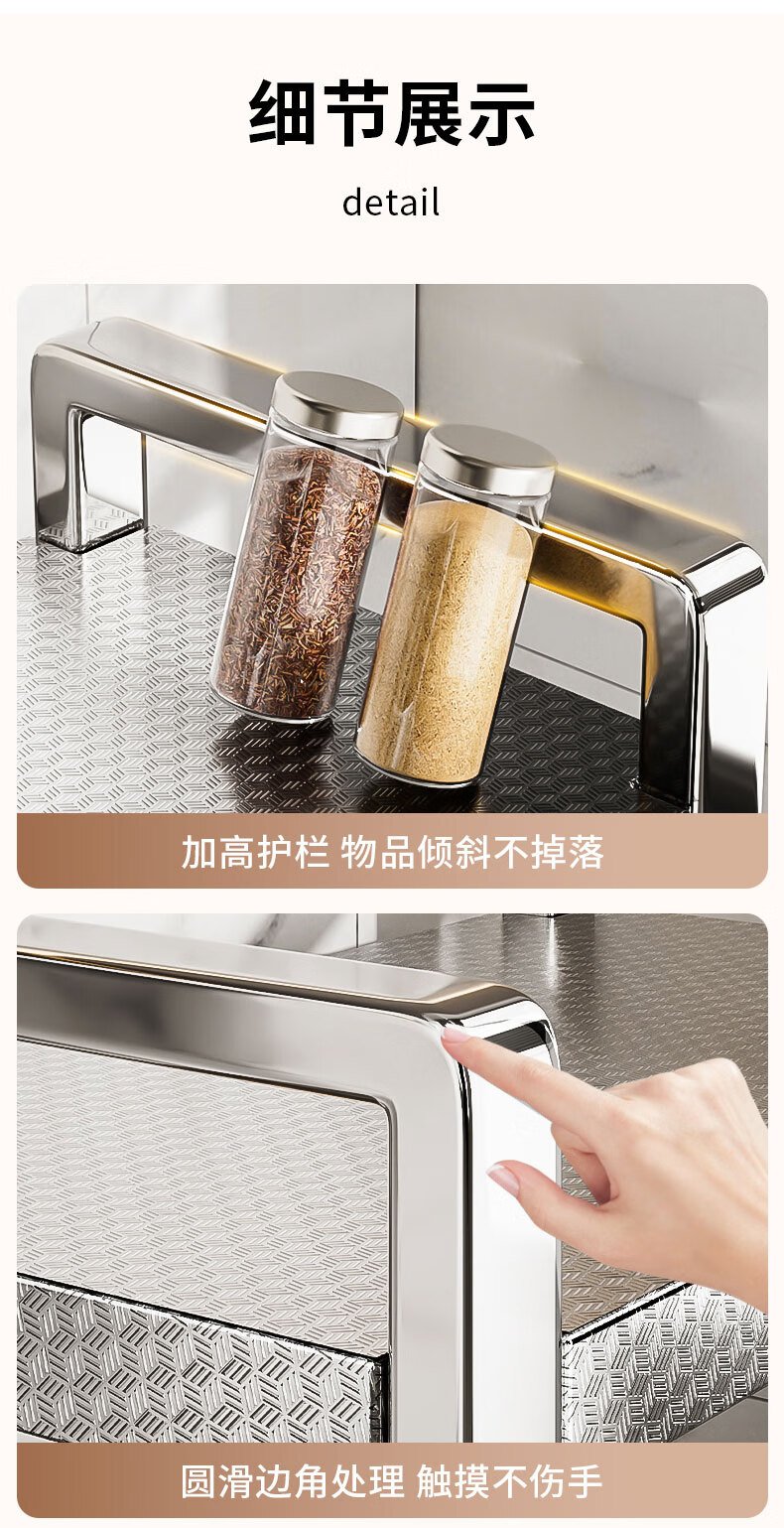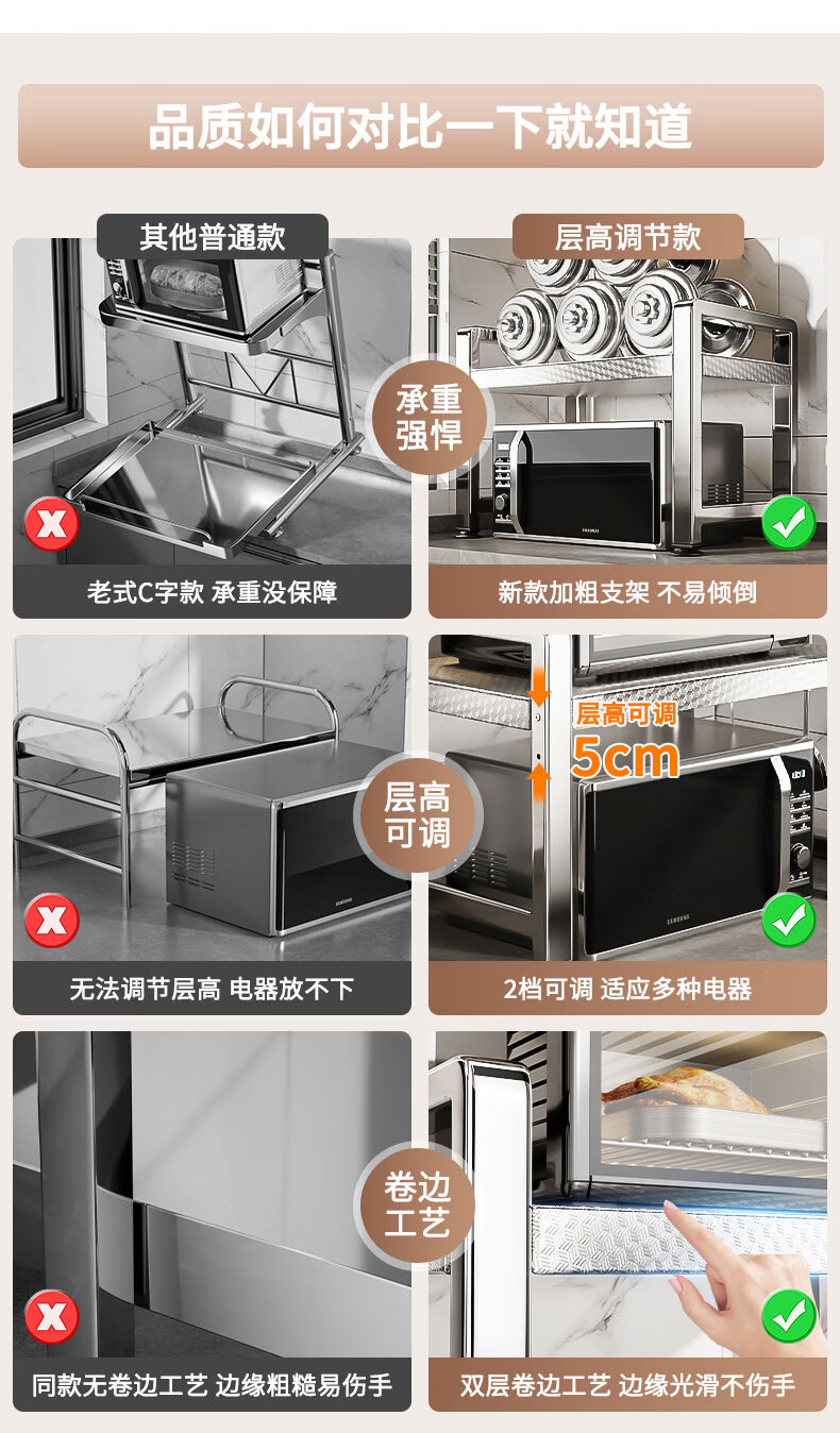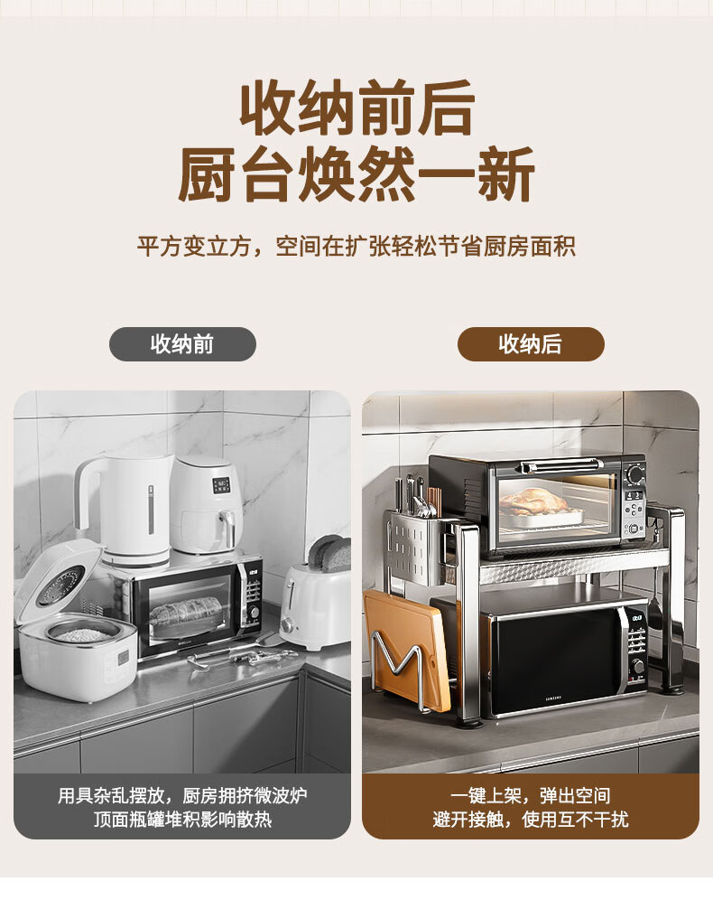 Benwang (BW) 304 stainless steel kitchen microwave storage rack countertop multi-function oven rack household rice cooker storage rack dragon scale laminate 304 steel double layer telescopic + fully equipped