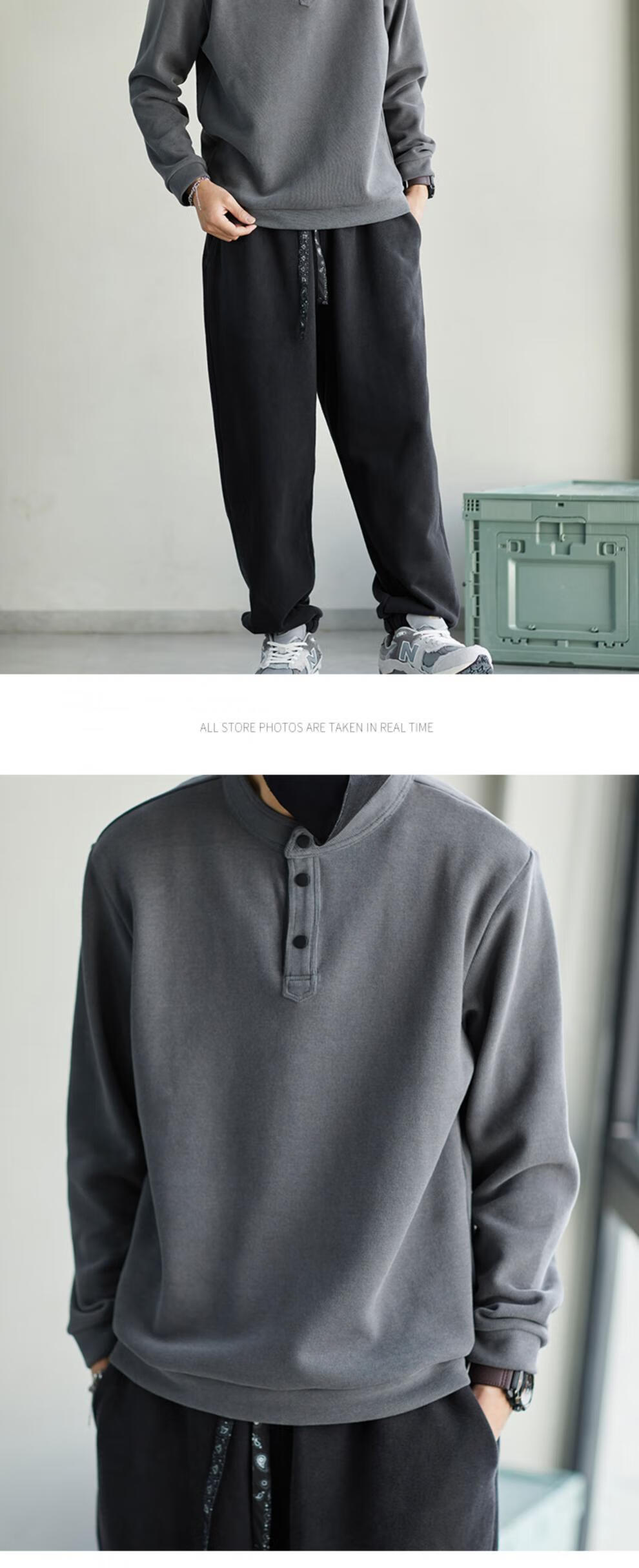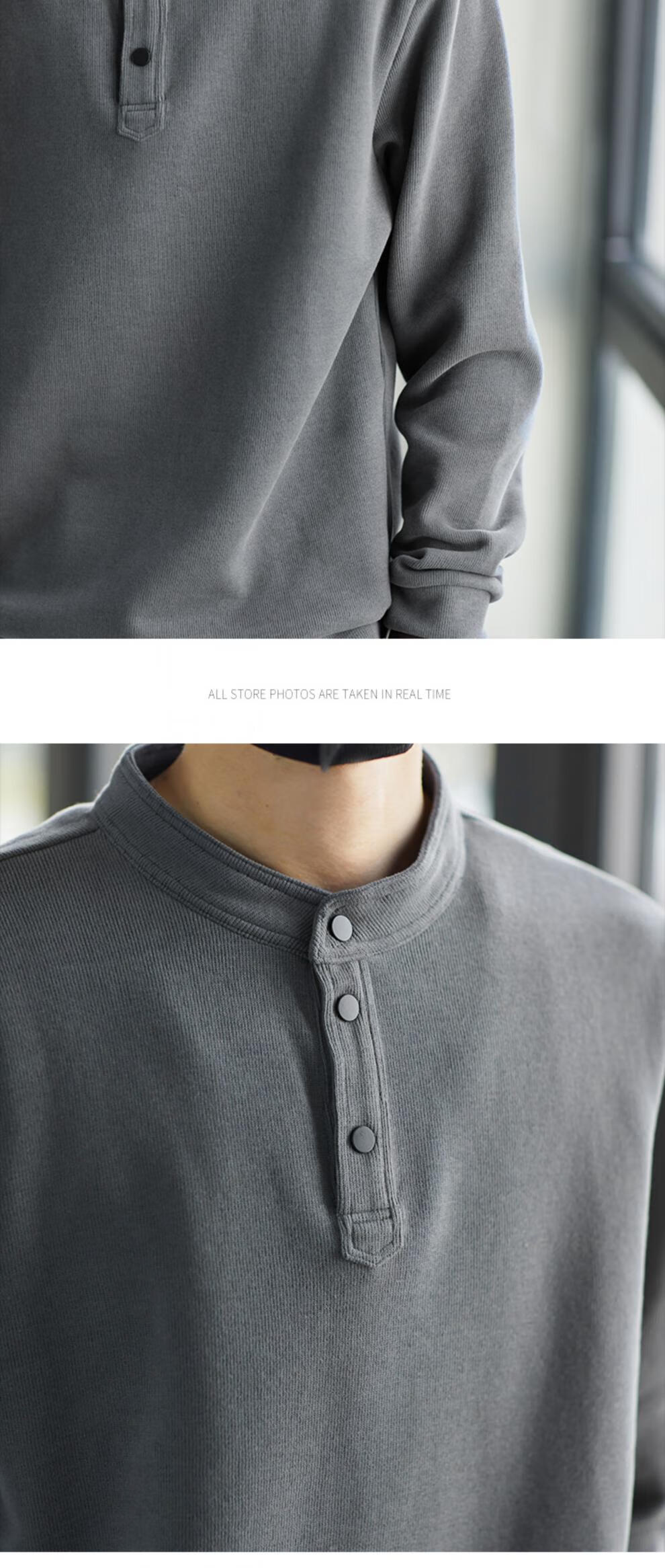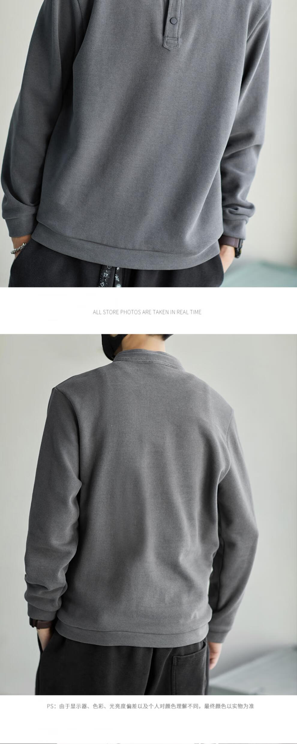 Playboy Stand Collar Sweatshirt Men's Spring and Autumn 2025 New Loose Henley Collar Heavy Long Sleeve Bottoming Shirt Pullover Jacket Cement Gray M