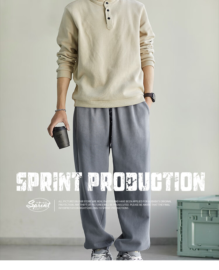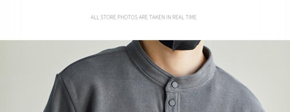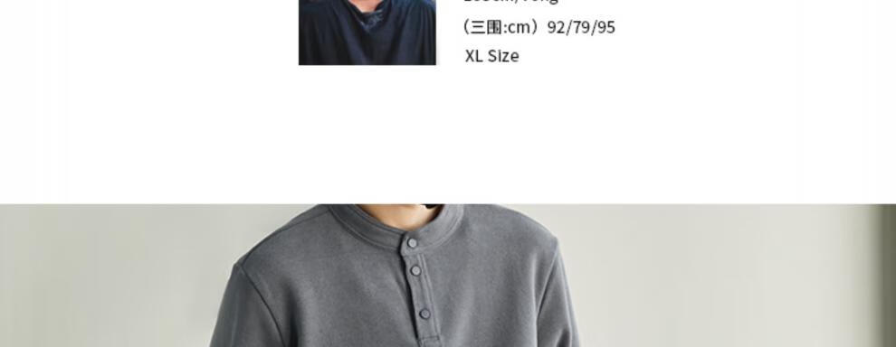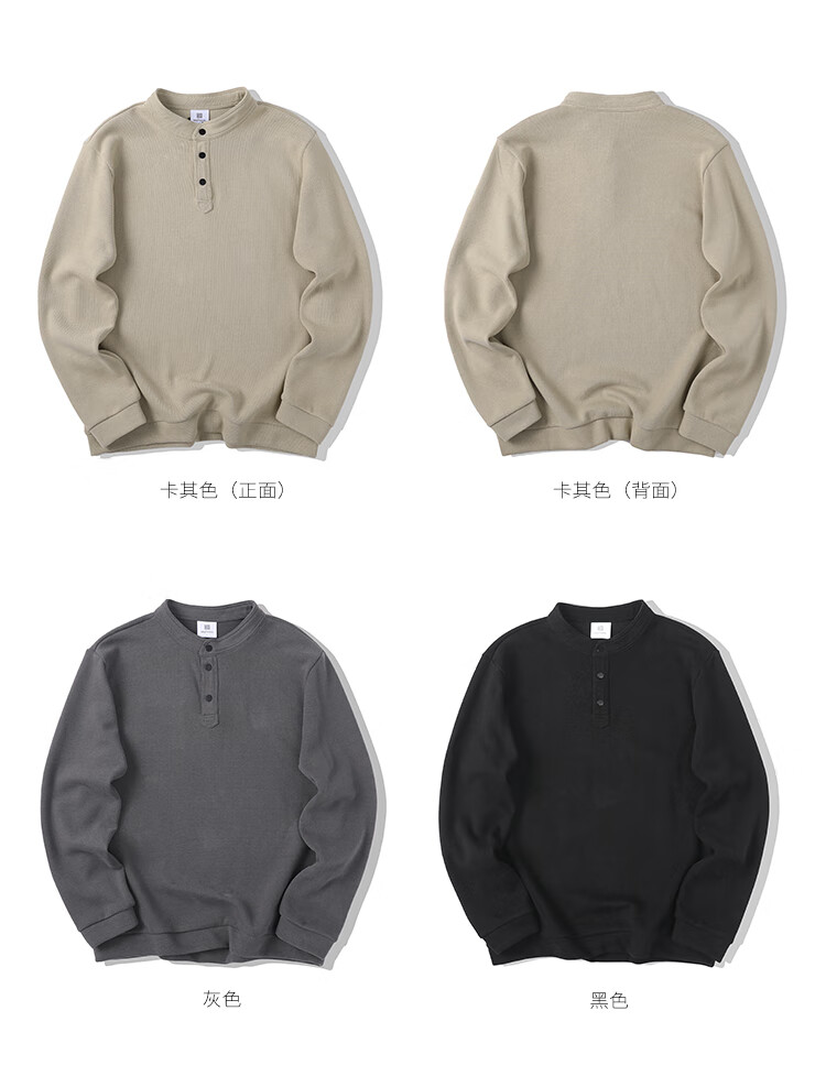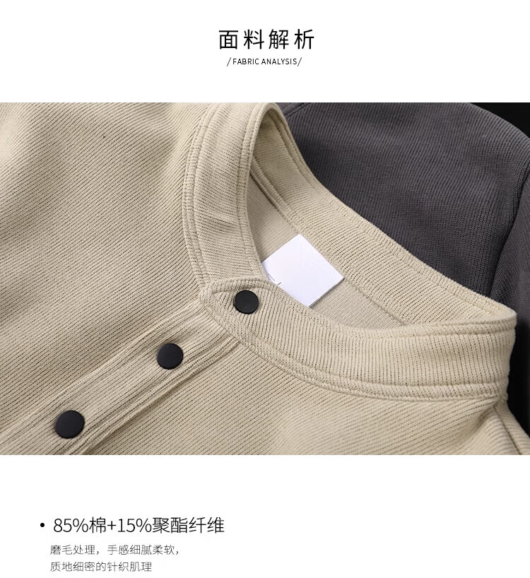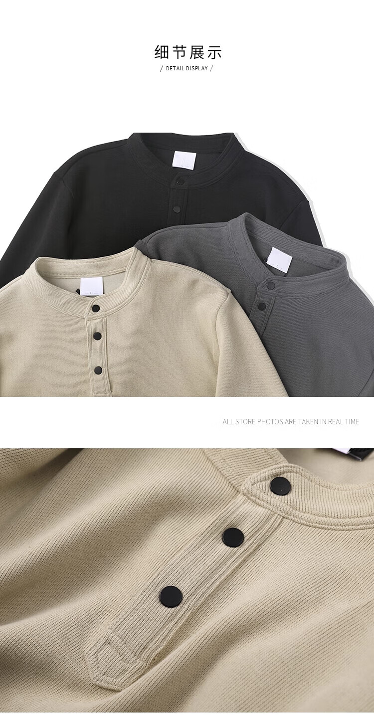 Playboy Stand Collar Sweatshirt Men's Spring and Autumn 2025 New Loose Henley Collar Heavy Long Sleeve Bottoming Shirt Pullover Jacket Cement Gray M