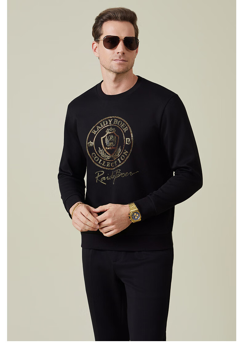 Бархатная толстовка Raidy Boer/Raidy Boer 2025, осень 2025, специальная мужская толстовка с бриллиантами и лазерными пайетками 6006, черный S/165/46