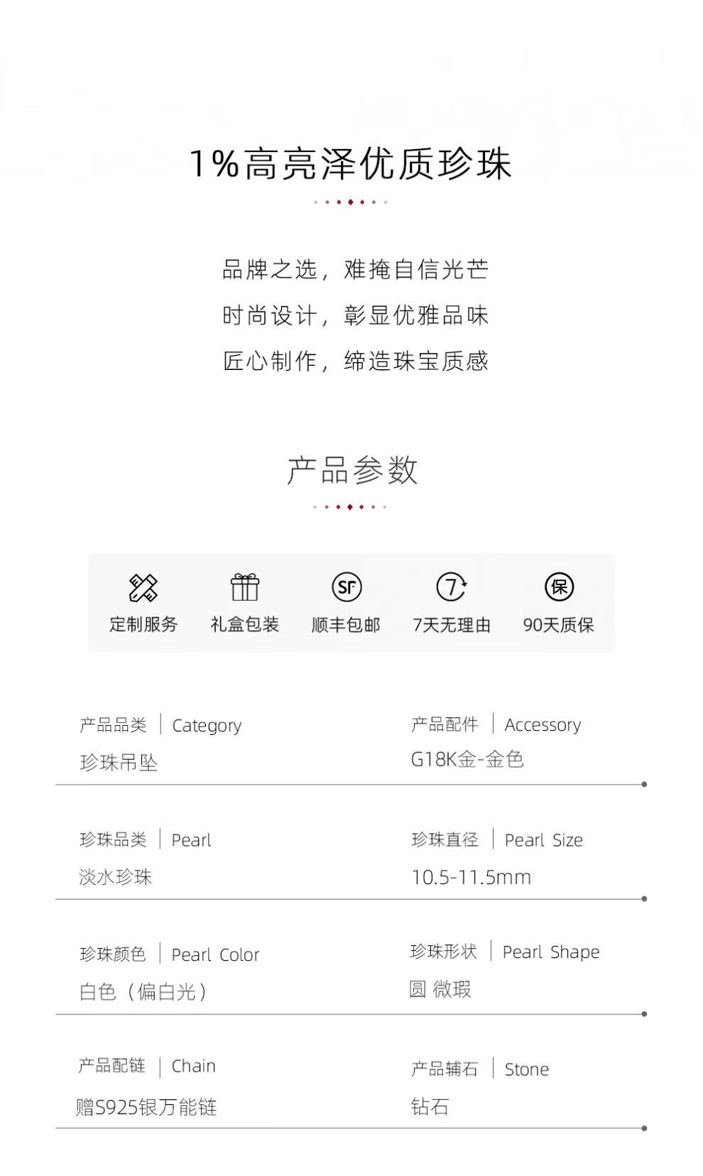 Ruan Shi RUANS/Ruan Shi Specially Selected 18K Gold 10.5-11.5mm Freshwater Pearl Princess Pendant Freshwater Princess Pendant