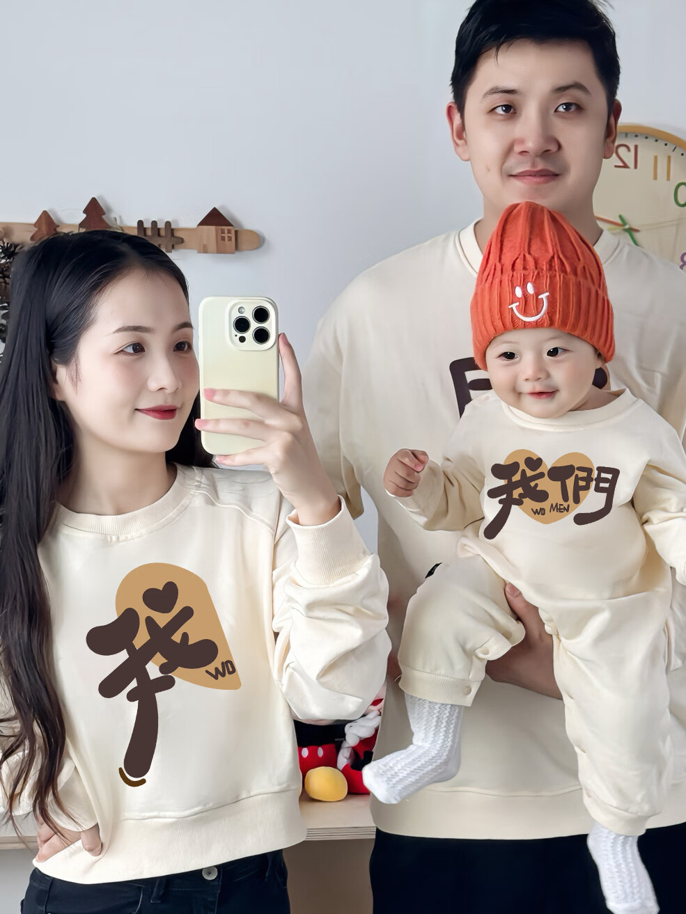 G.duck Baitianzhao parent-child clothing new high-end sweatshirt parent-child clothing family of three baby crawling clothes for young children family portrait apricot terry sweatshirt (7004) 66 upgraded boneless type A cotton crawling clothes