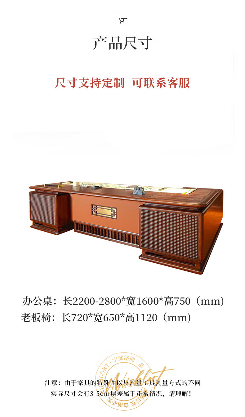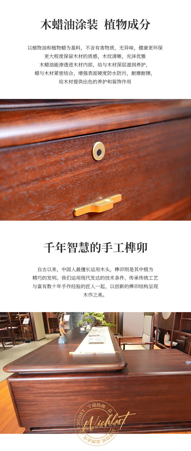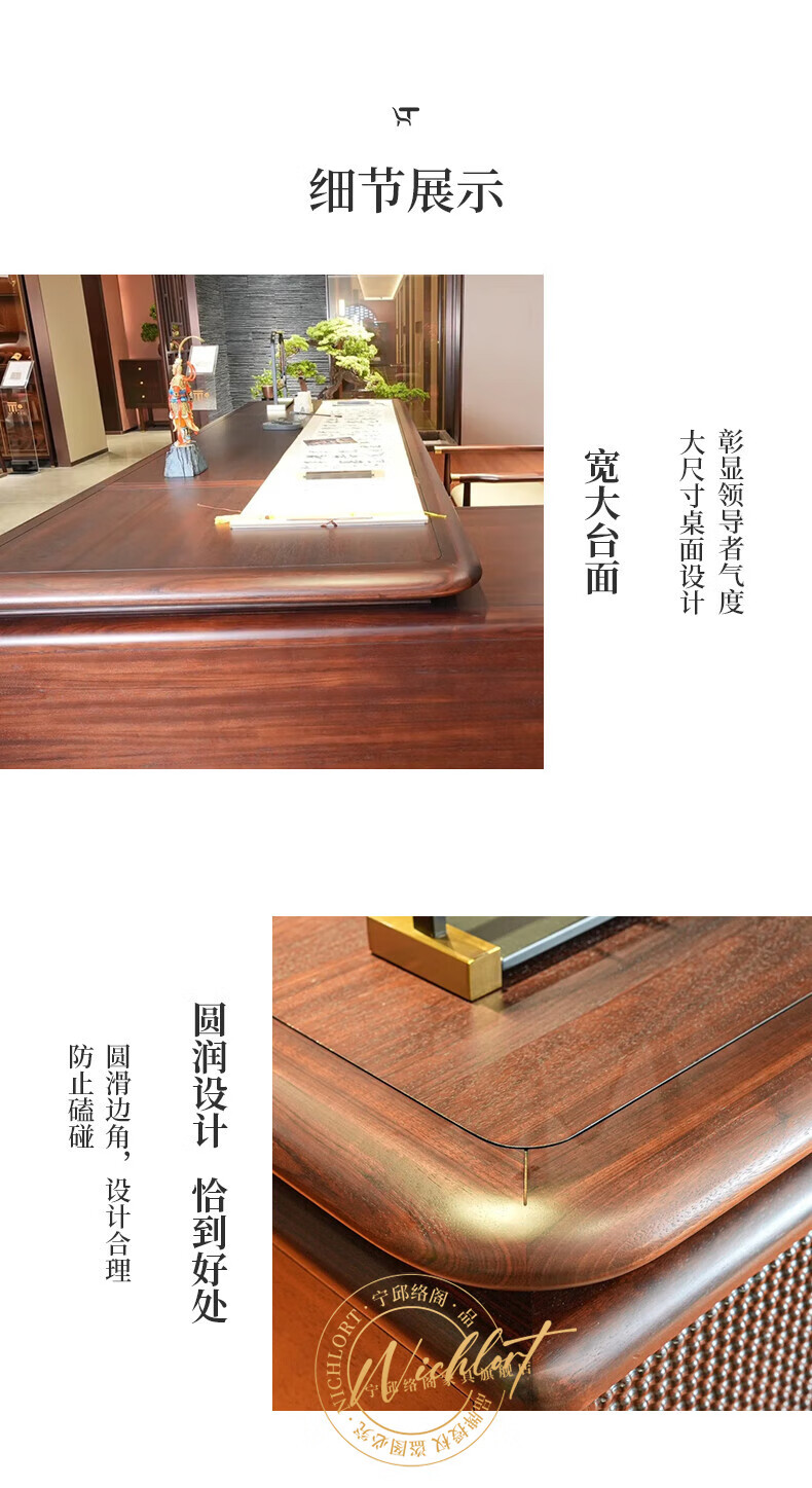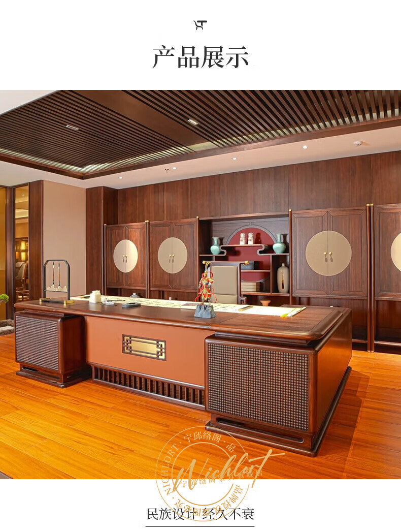 Ningqiu Luoge (NICHLORT) boss desk solid wood desk new Chinese style North American black walnut high-end chairman's office executive desk custom file cabinet