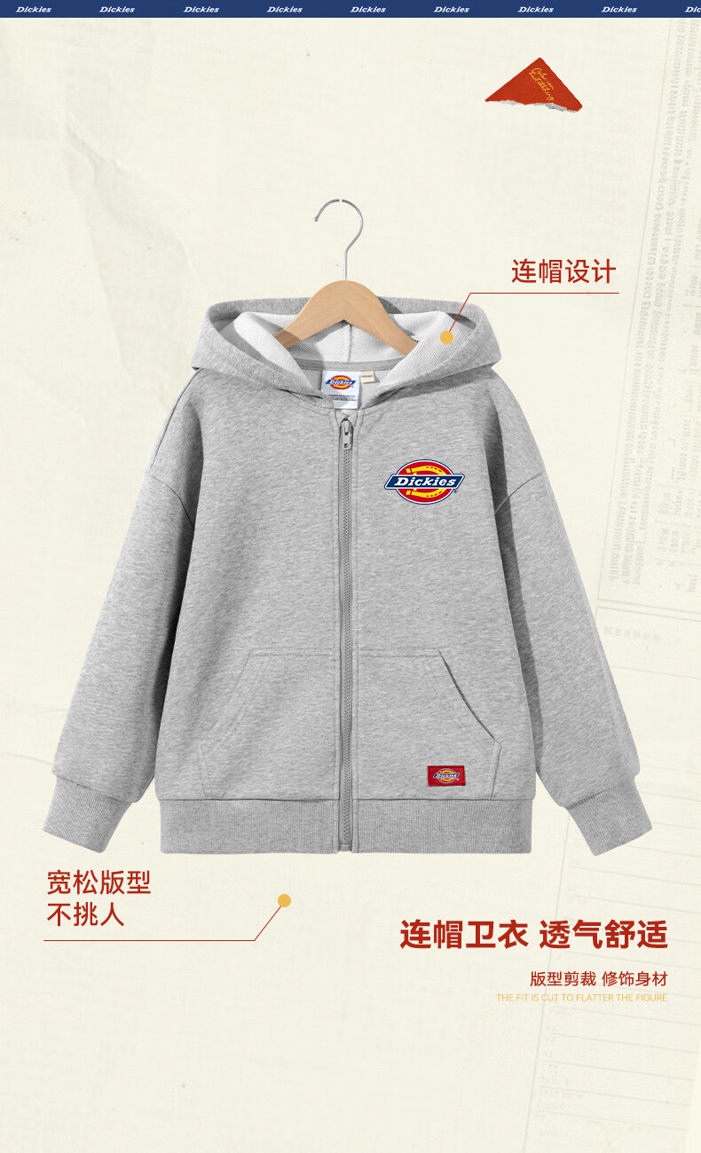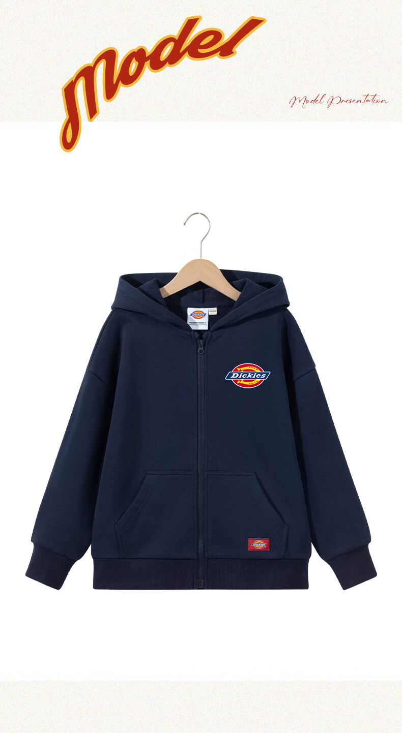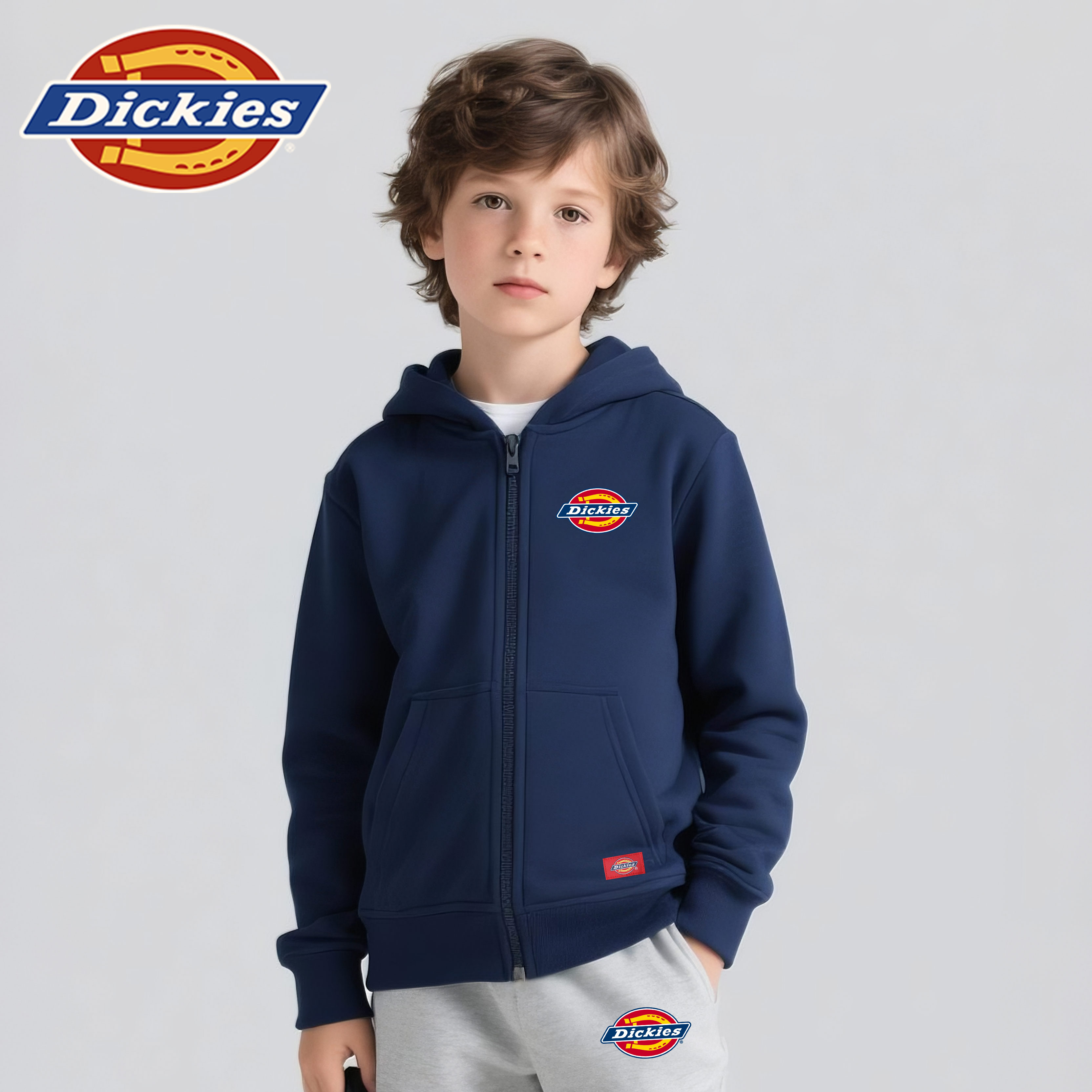 DickiesDickies children's clothing boys' jacket 2025 new children's trendy brand jacket little boy spring and autumn hooded cardigan navy blue/DK red label k 140 140cm