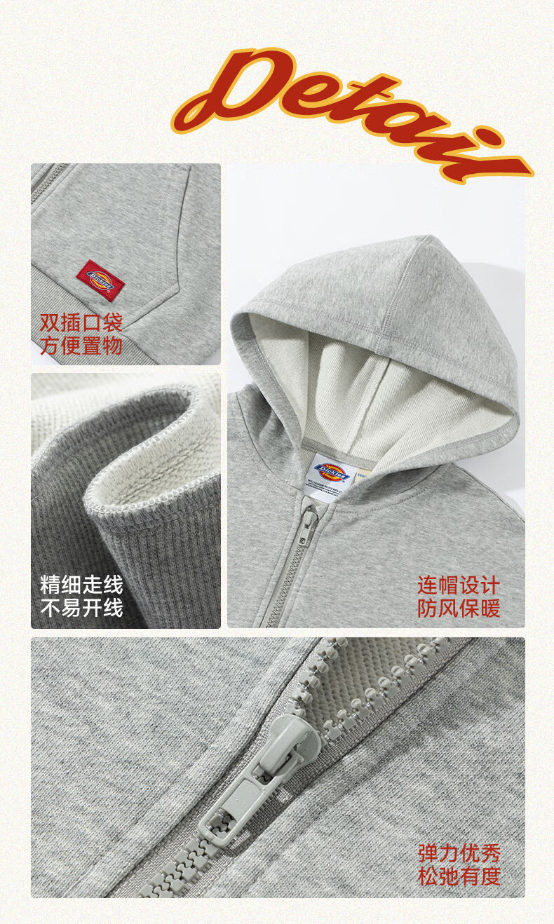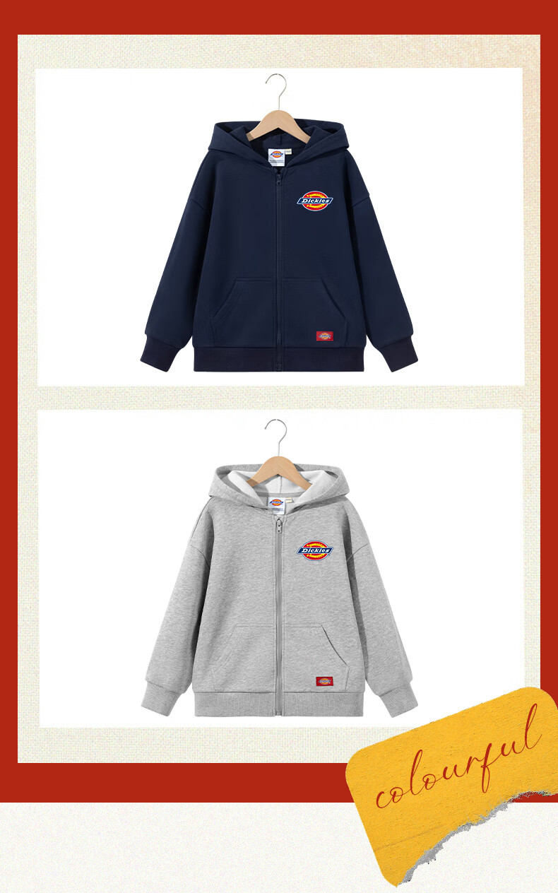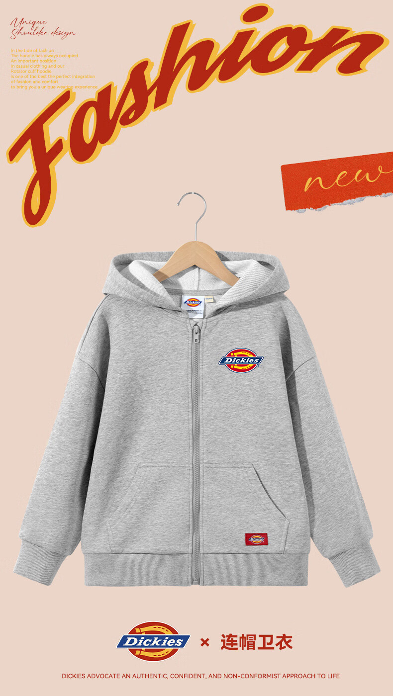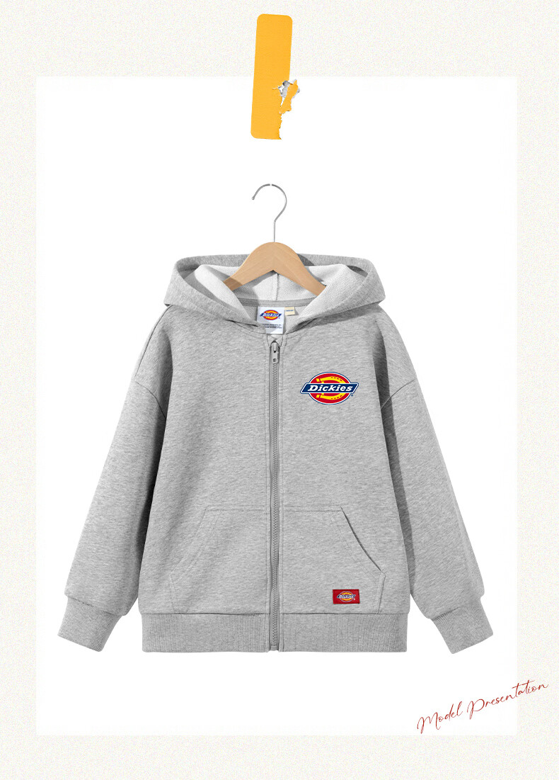 DickiesDickies children's clothing boys' jacket 2025 new children's trendy brand jacket little boy spring and autumn hooded cardigan navy blue/DK red label k 140 140cm