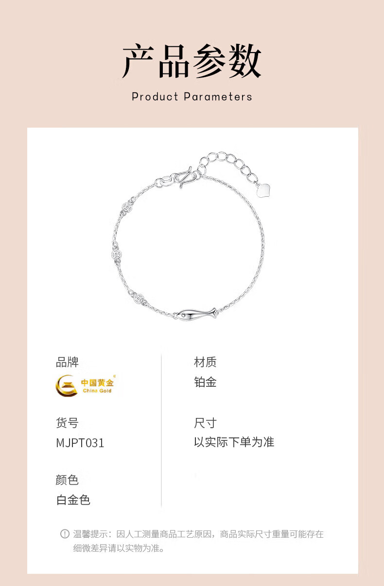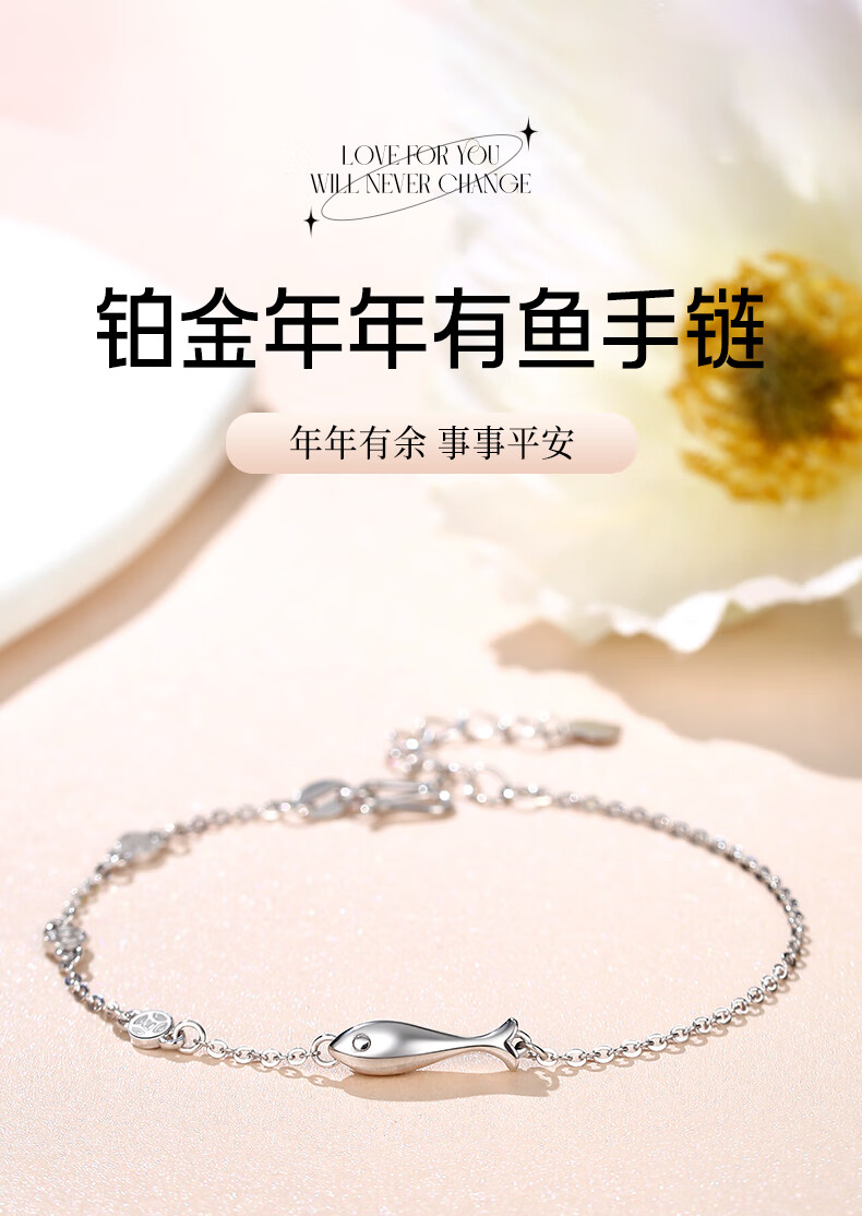 China Gold (CHINA GOLD) Fish and Koi Platinum PT950 Platinum Bracelet Female Birthday Gift for Girlfriend and Wife Platinum weighs about 3.8g SF Express/Branded Gift Box